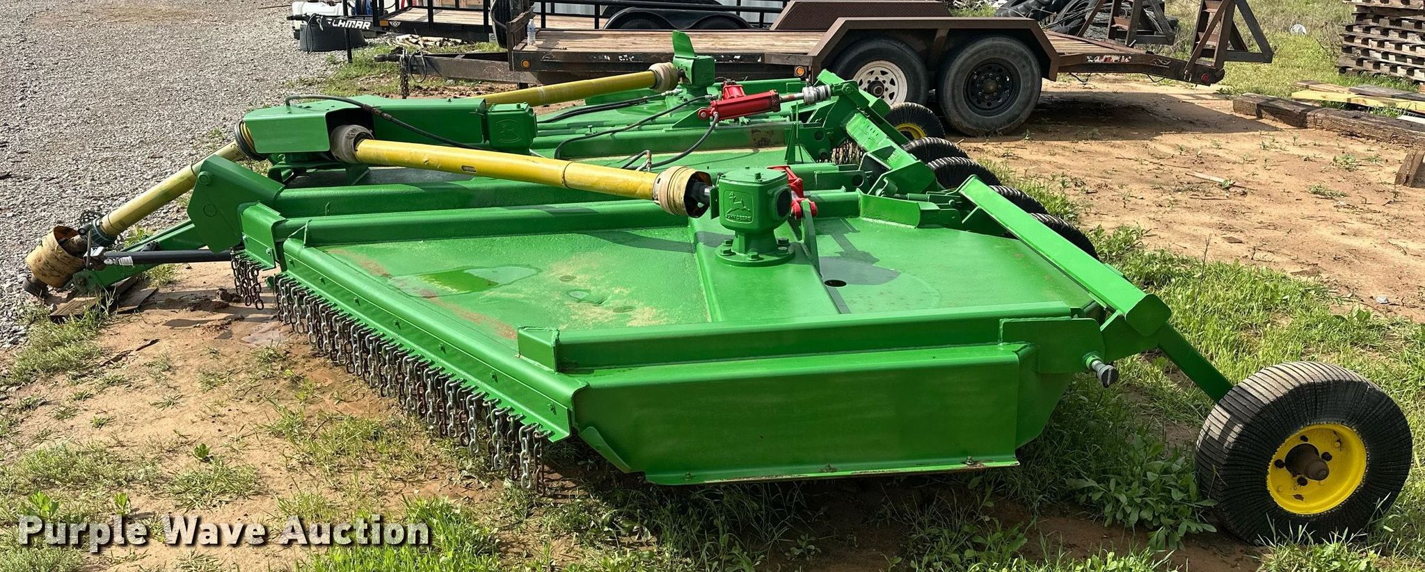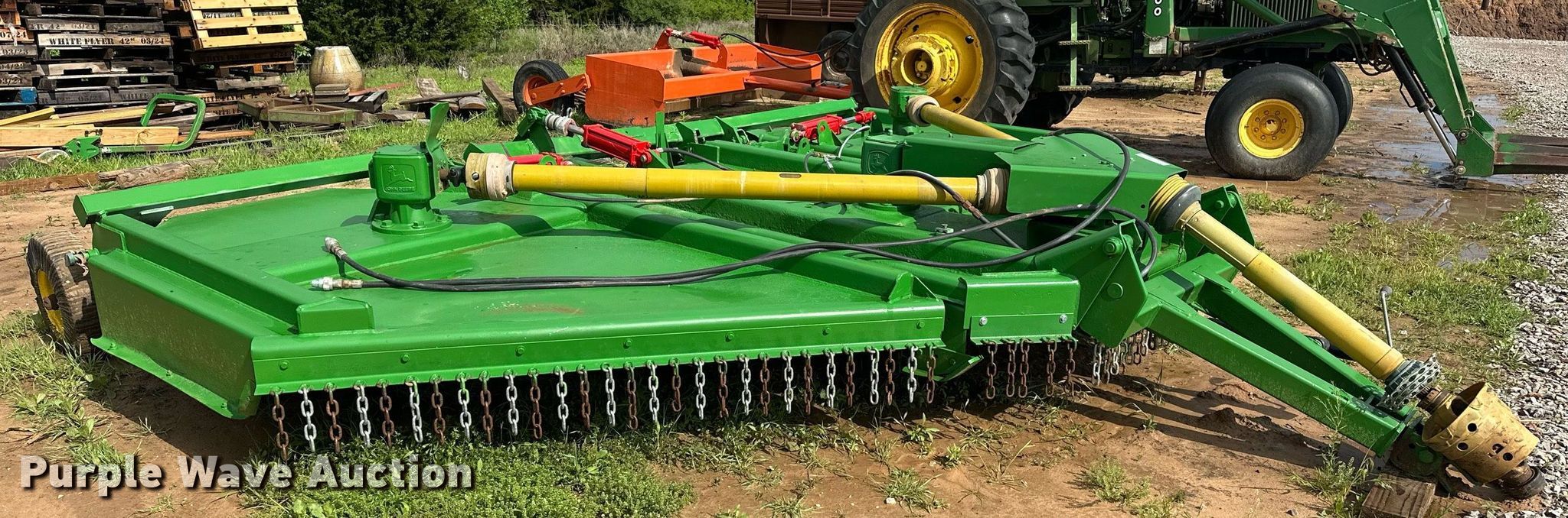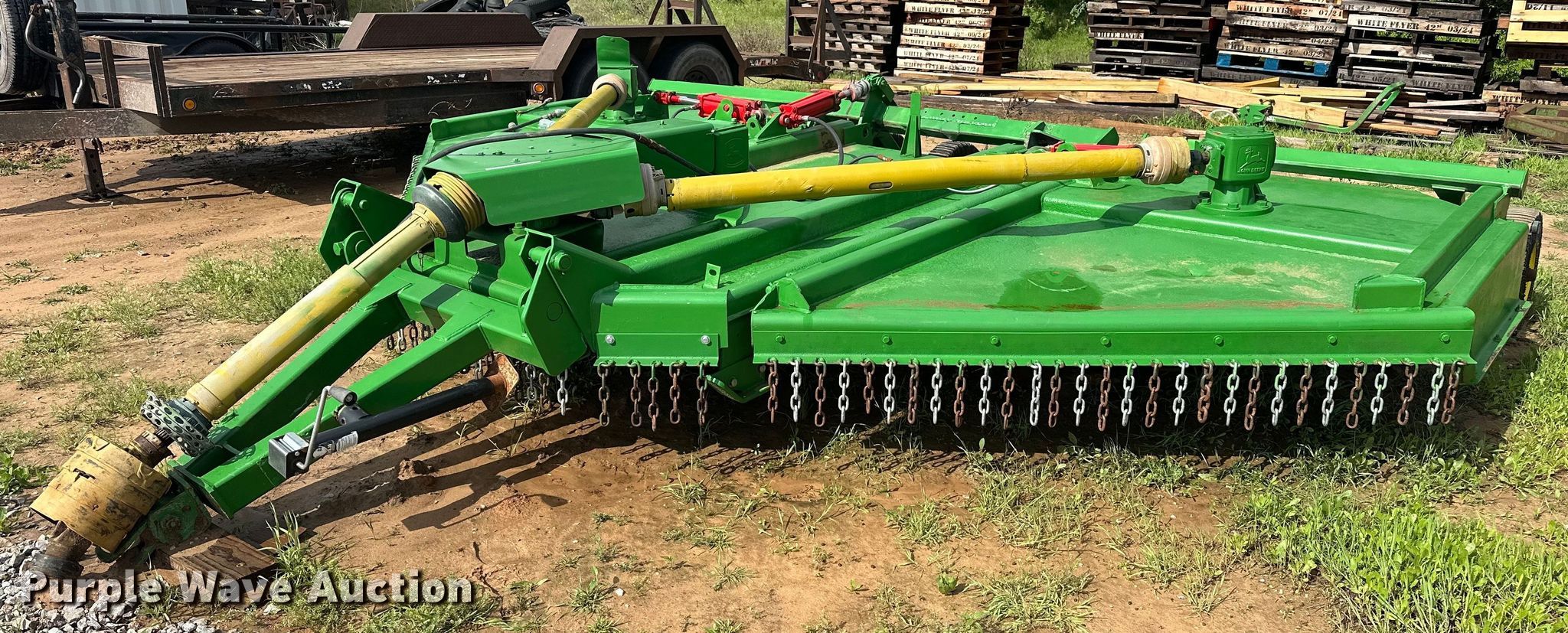 Purple Wave is selling a used Mower, Cutter, Shredder in Oklahoma. This item is a John Deere batwing rotary mower with the following: Width: 15', Hydraulic lift, Hydraulic fold, PTO: 540