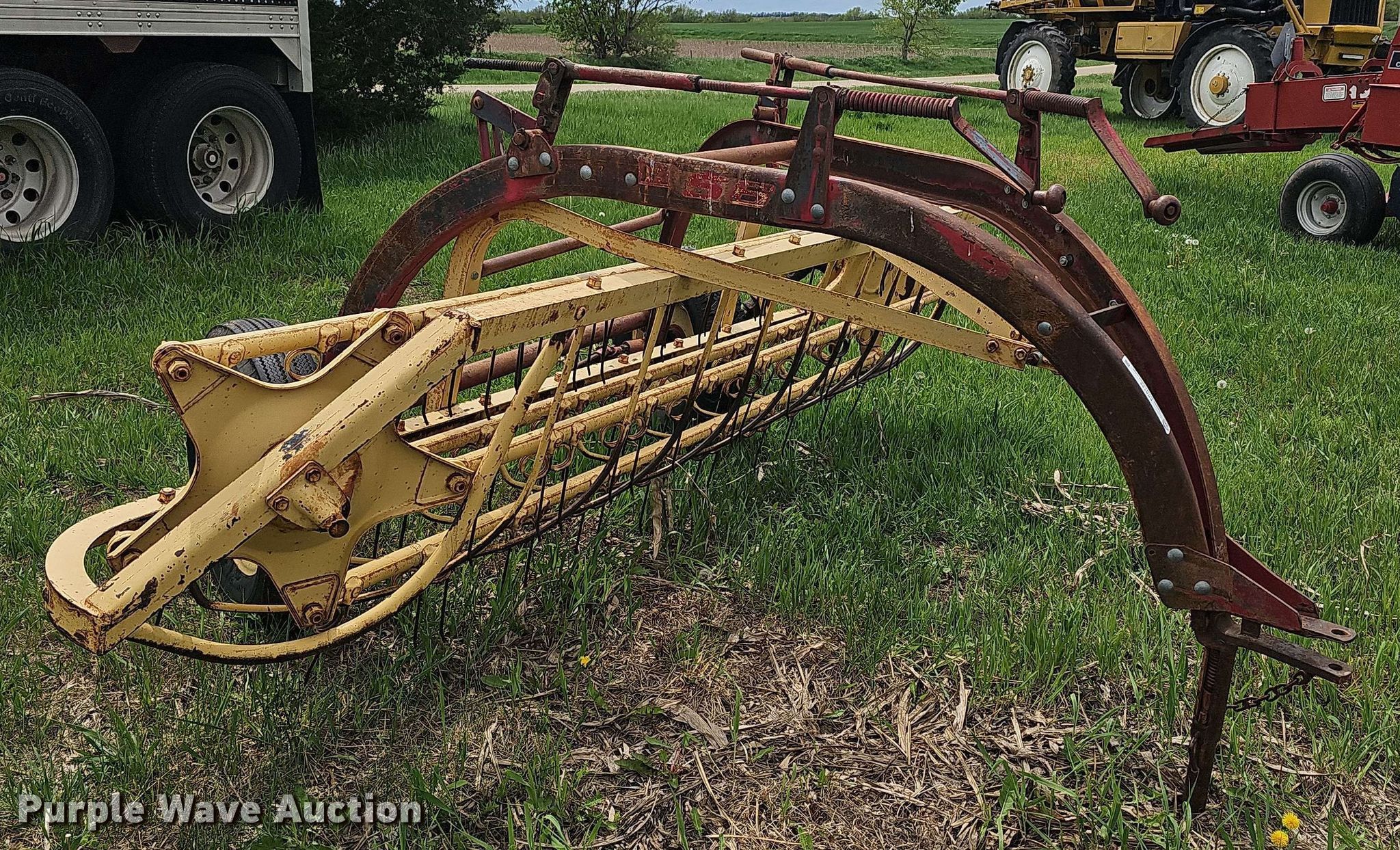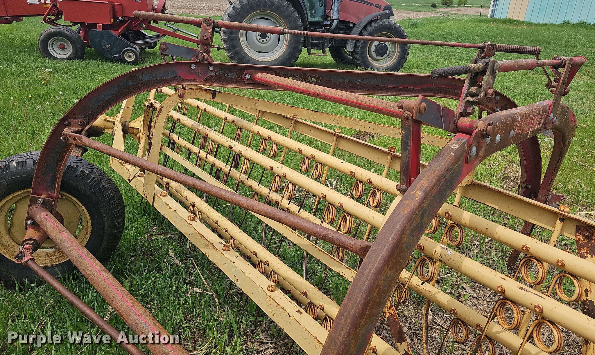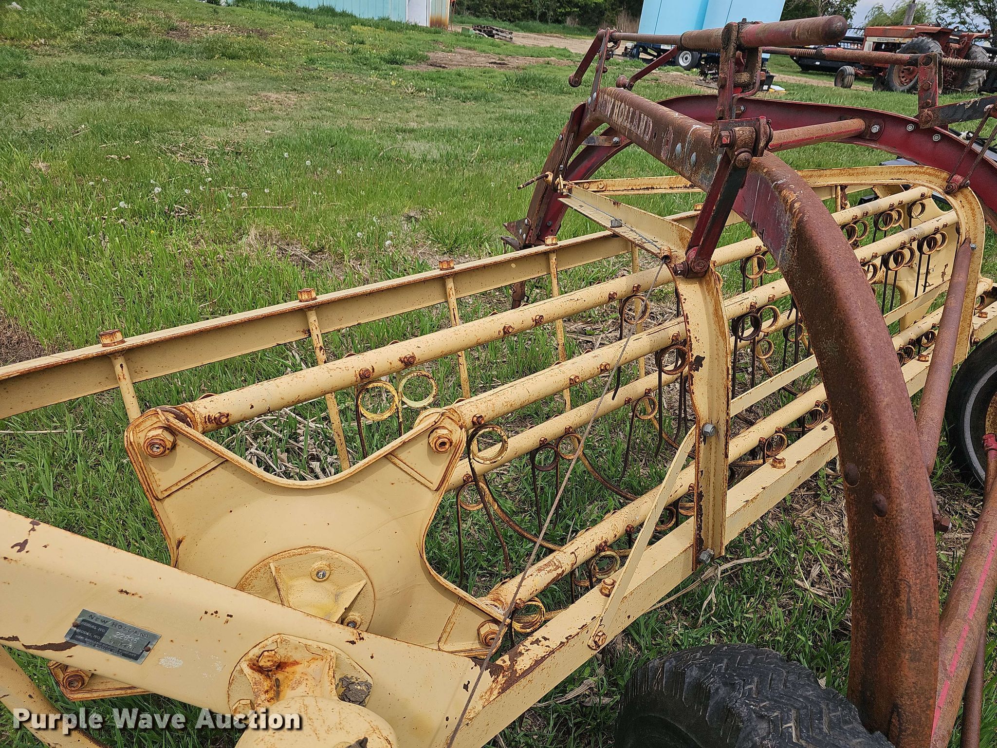 New Holland 56 hay rake. Serial: 22835. Features Width: 9', Ground driven, Hitch: Pin. Tires Size: 7.10-15. Abilene, KS 67410
