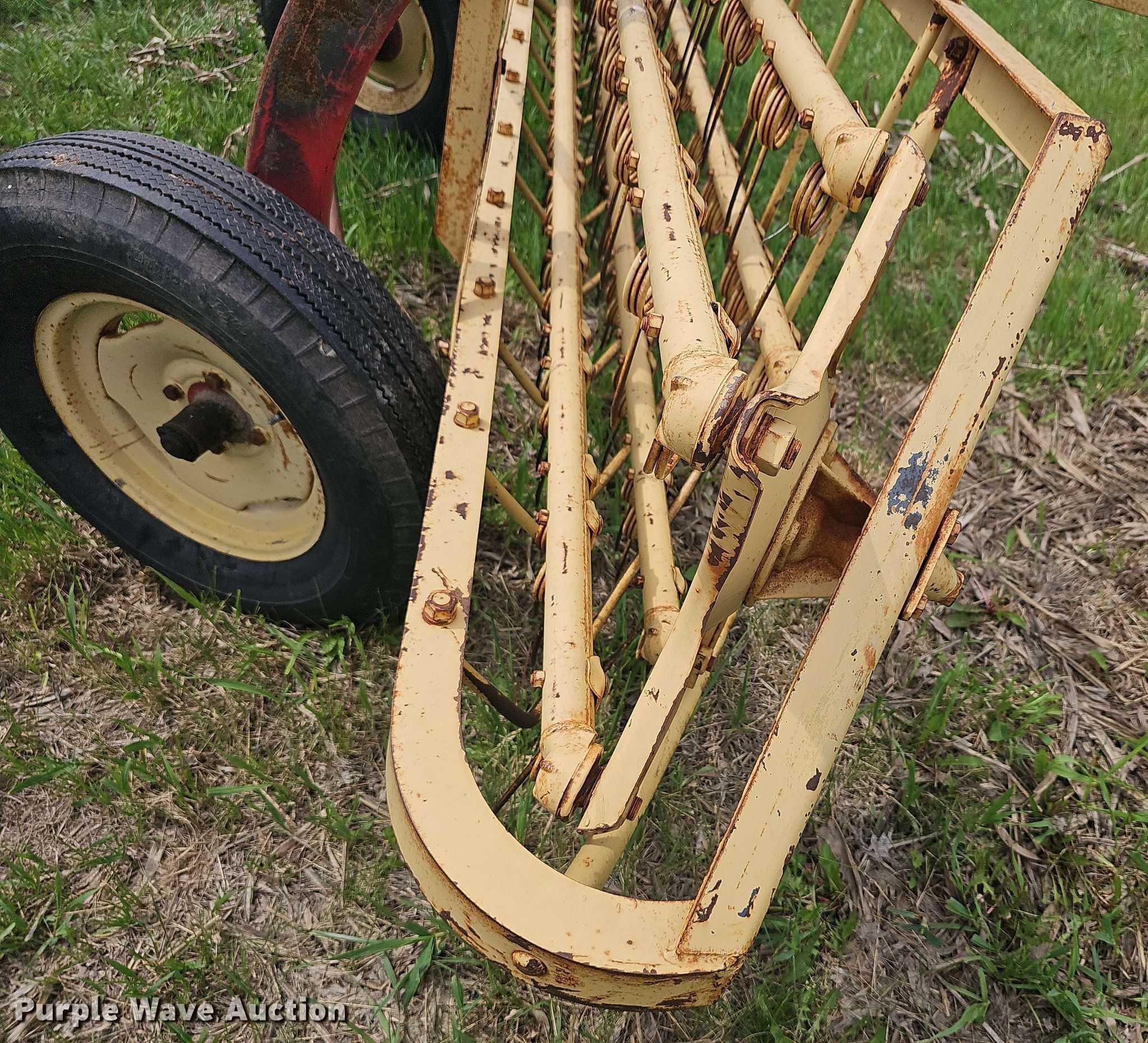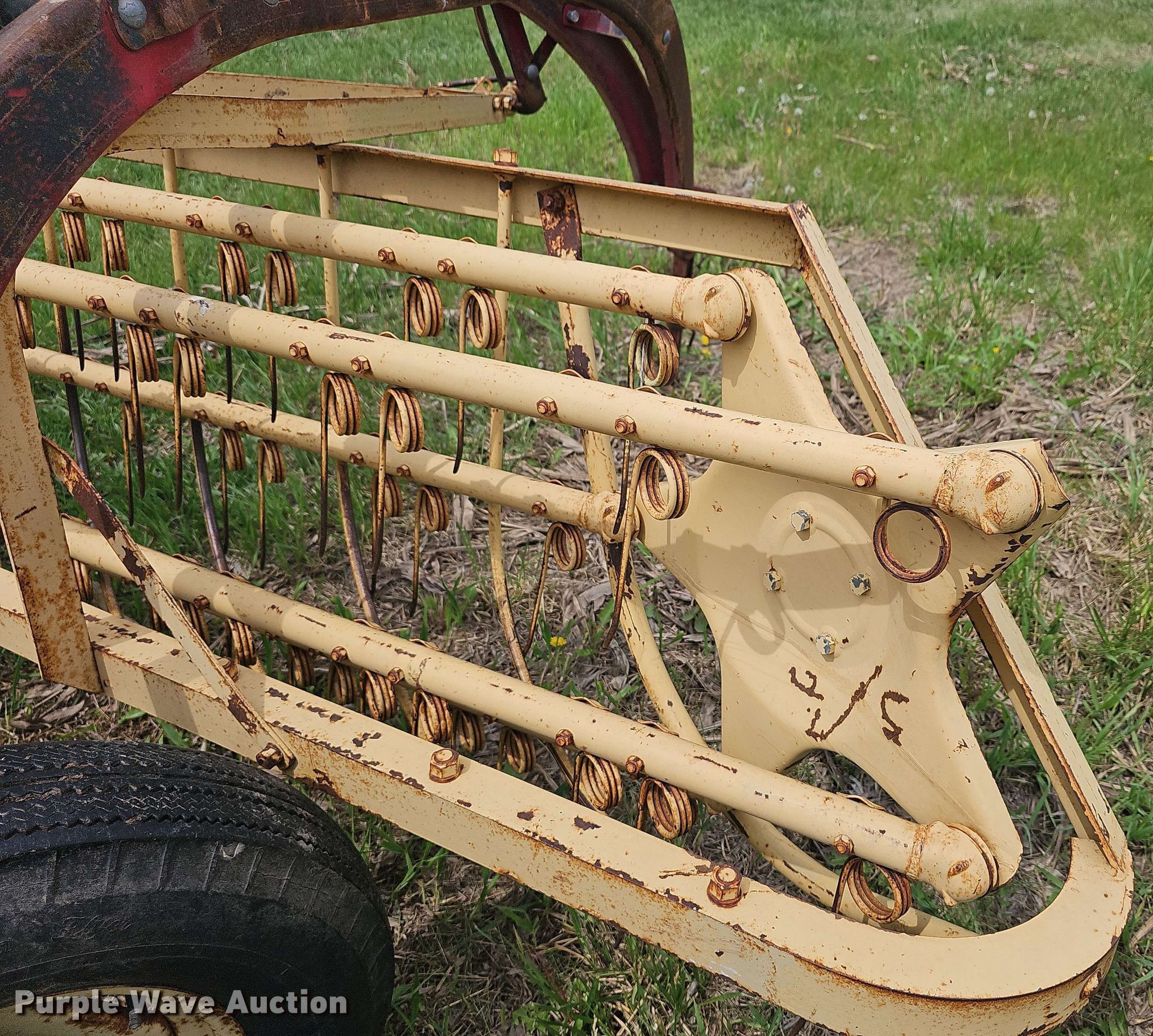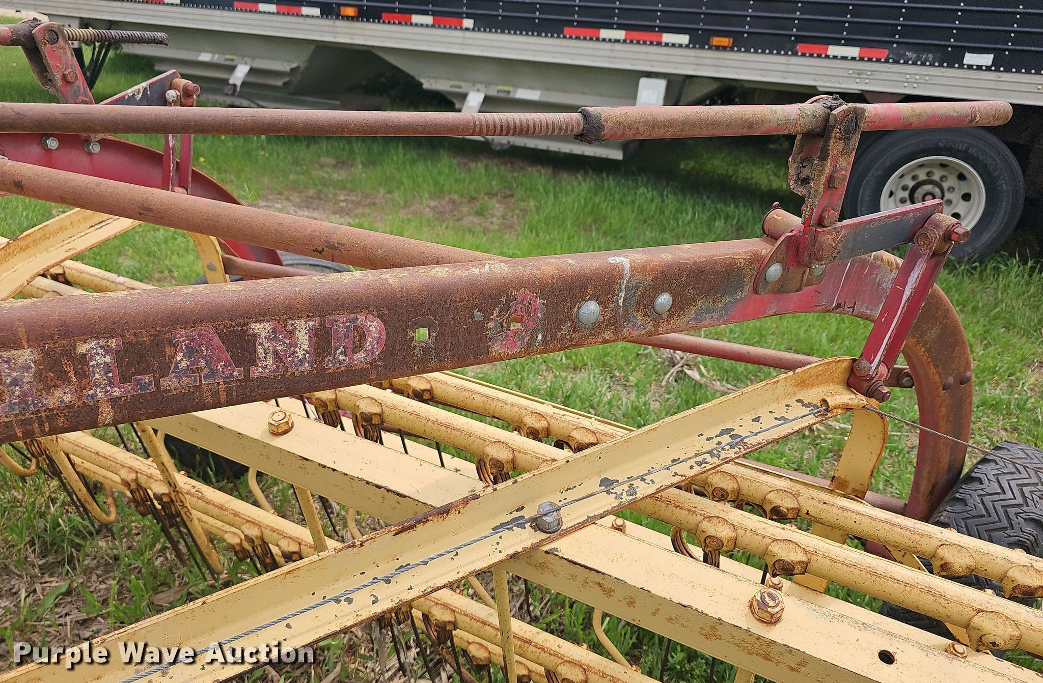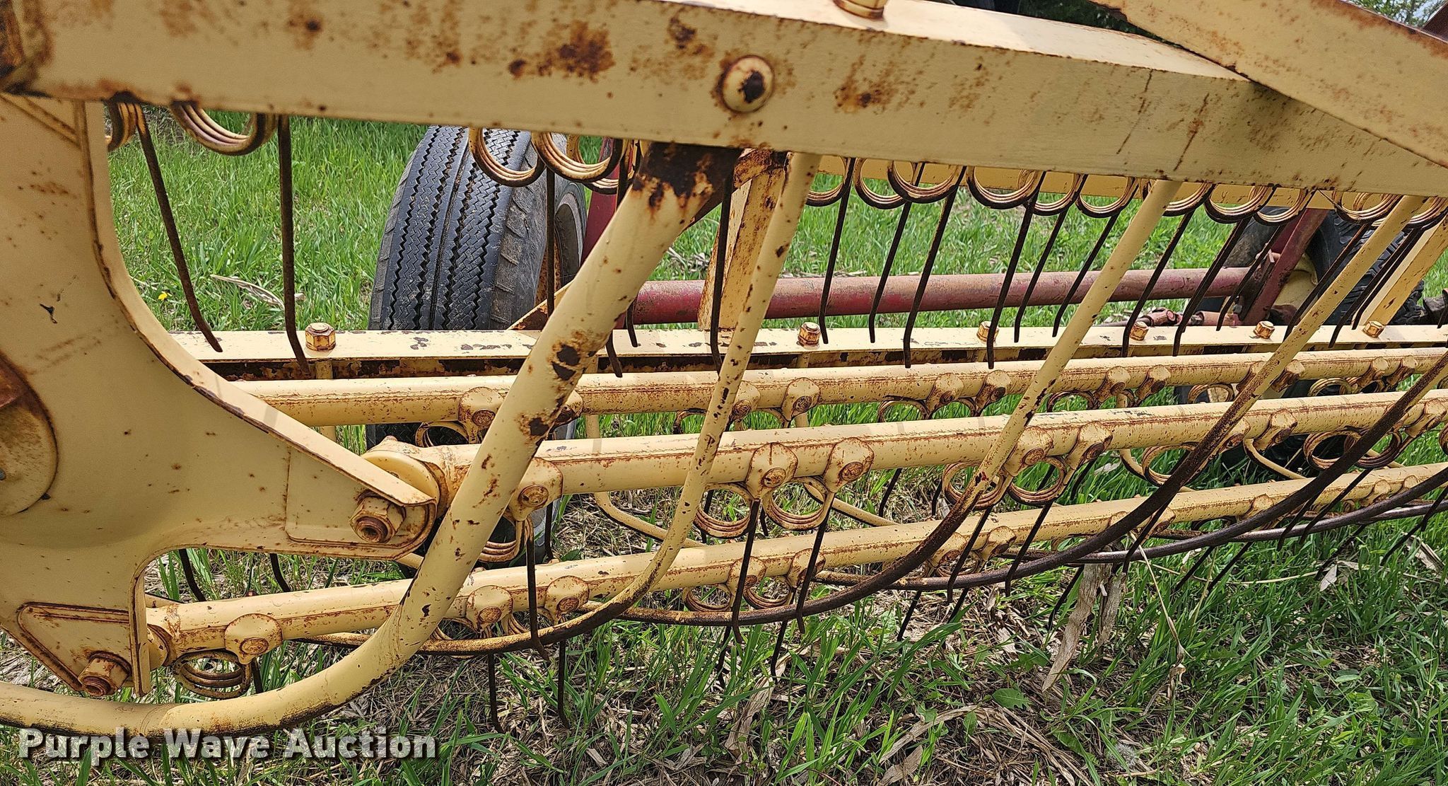 New Holland 56 hay rake. Serial: 22835. Features Width: 9', Ground driven, Hitch: Pin. Tires Size: 7.10-15. Abilene, KS 67410