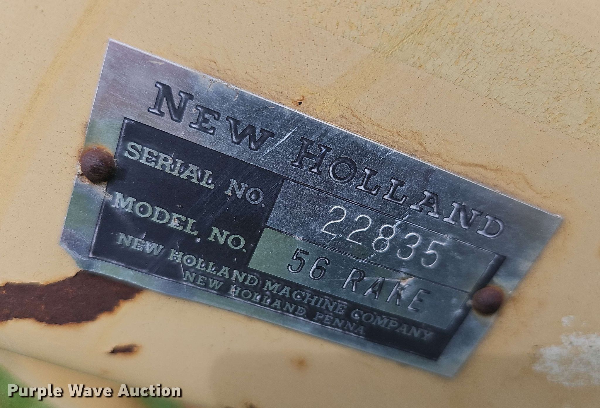 Purple Wave is selling a used Hay Rake in Kansas. This item is a New Holland 56 hay rake with the following: Serial: 22835