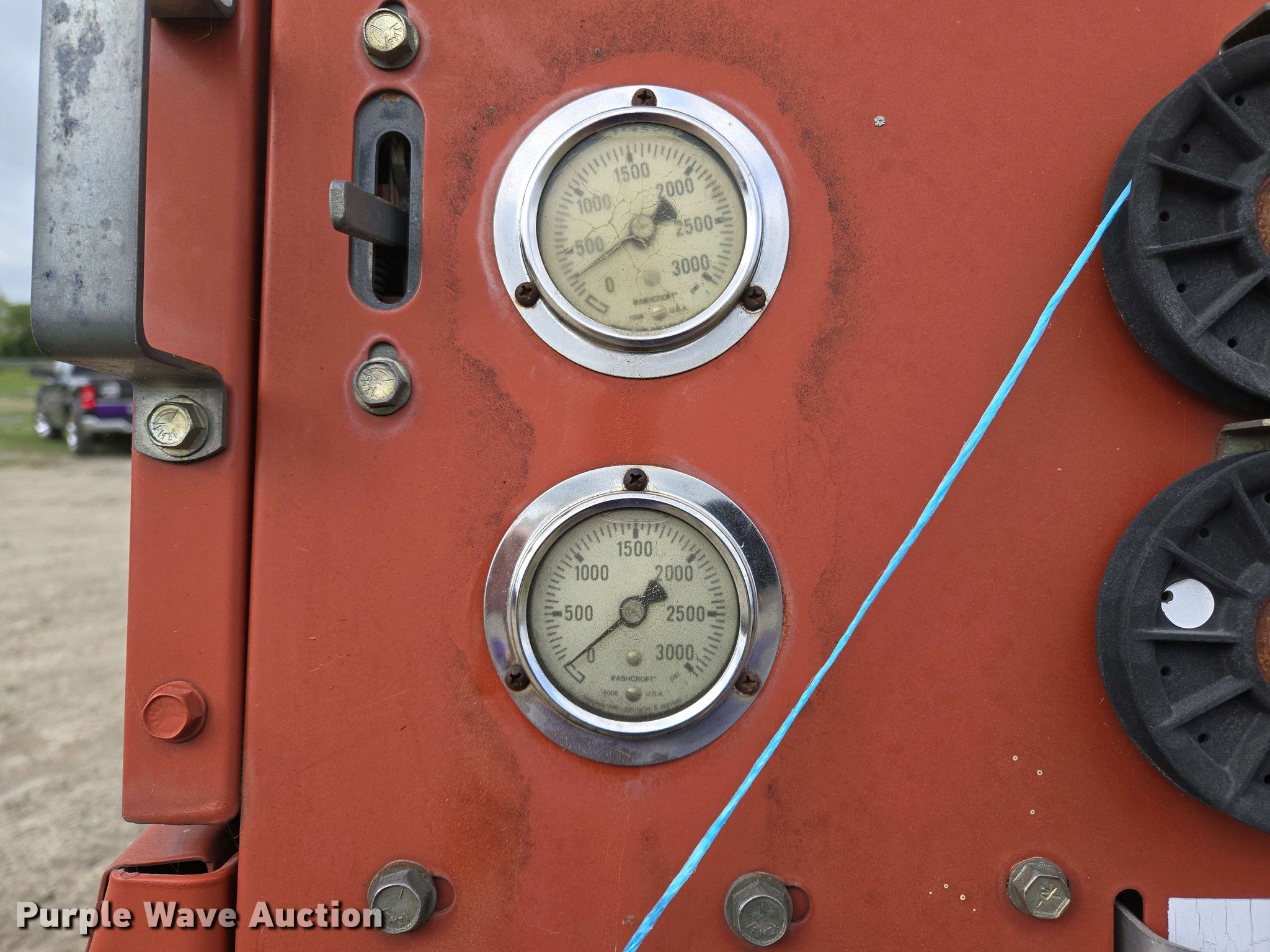 Hesston 845 round baler. Serial: HL4417. Features PTO: 540, Transport lights, Gauge wheels Size: 6x6.50-8, Pickup width: 5', Hydraulic pickup lift, Bale size: 4' x 5', Auto-tie, Twine tie, Bale kicker. Tires Size: 31x13.5-15. Stuart, OK 74570