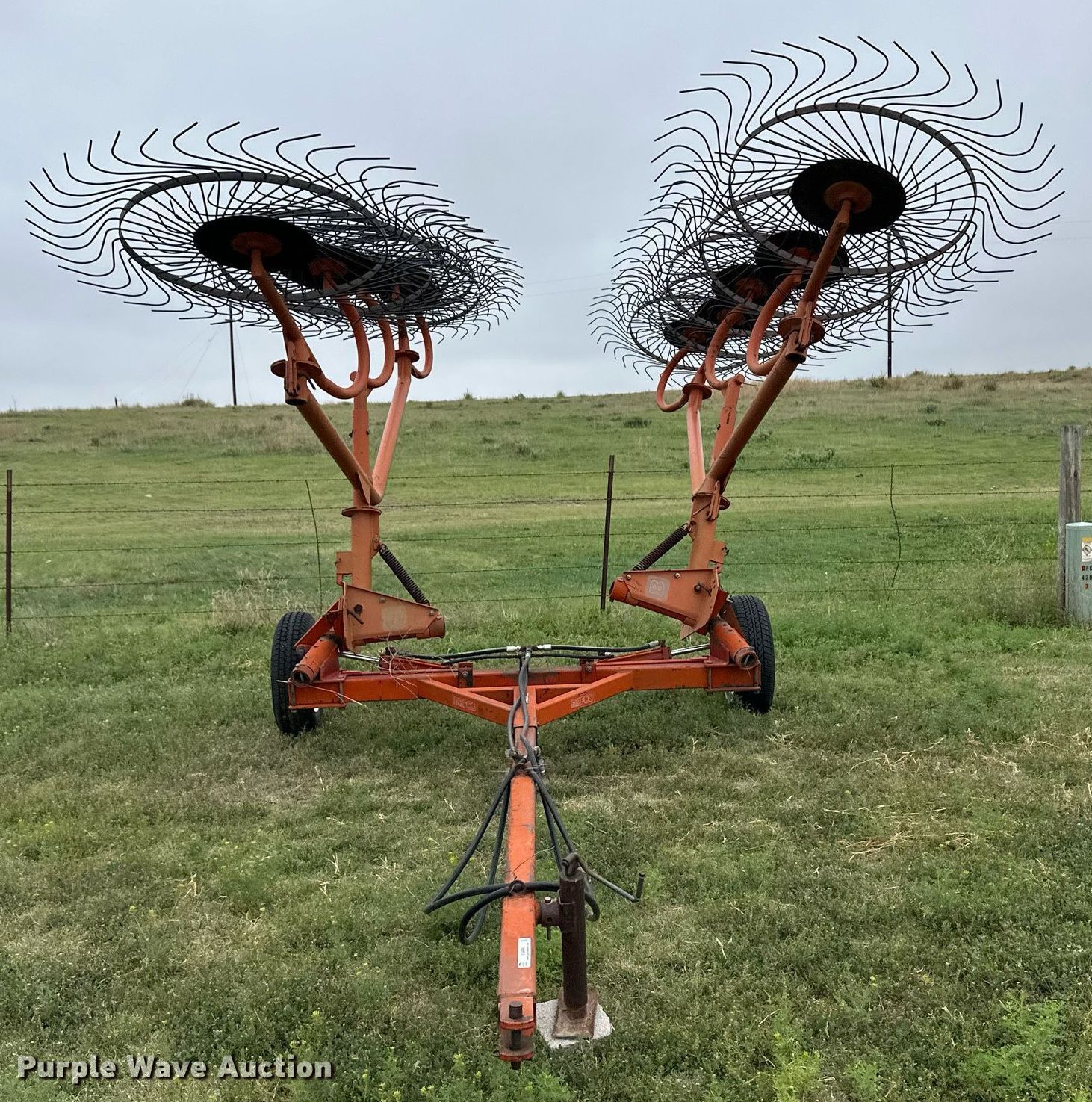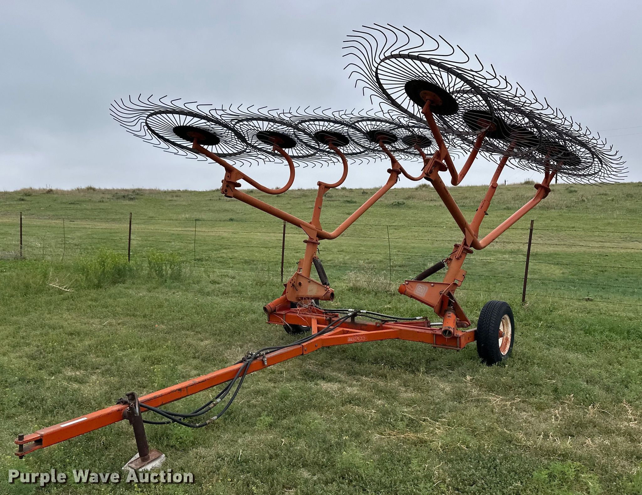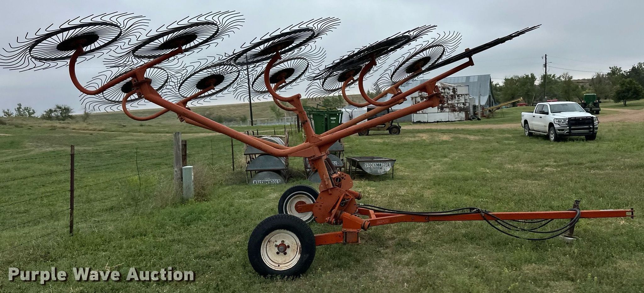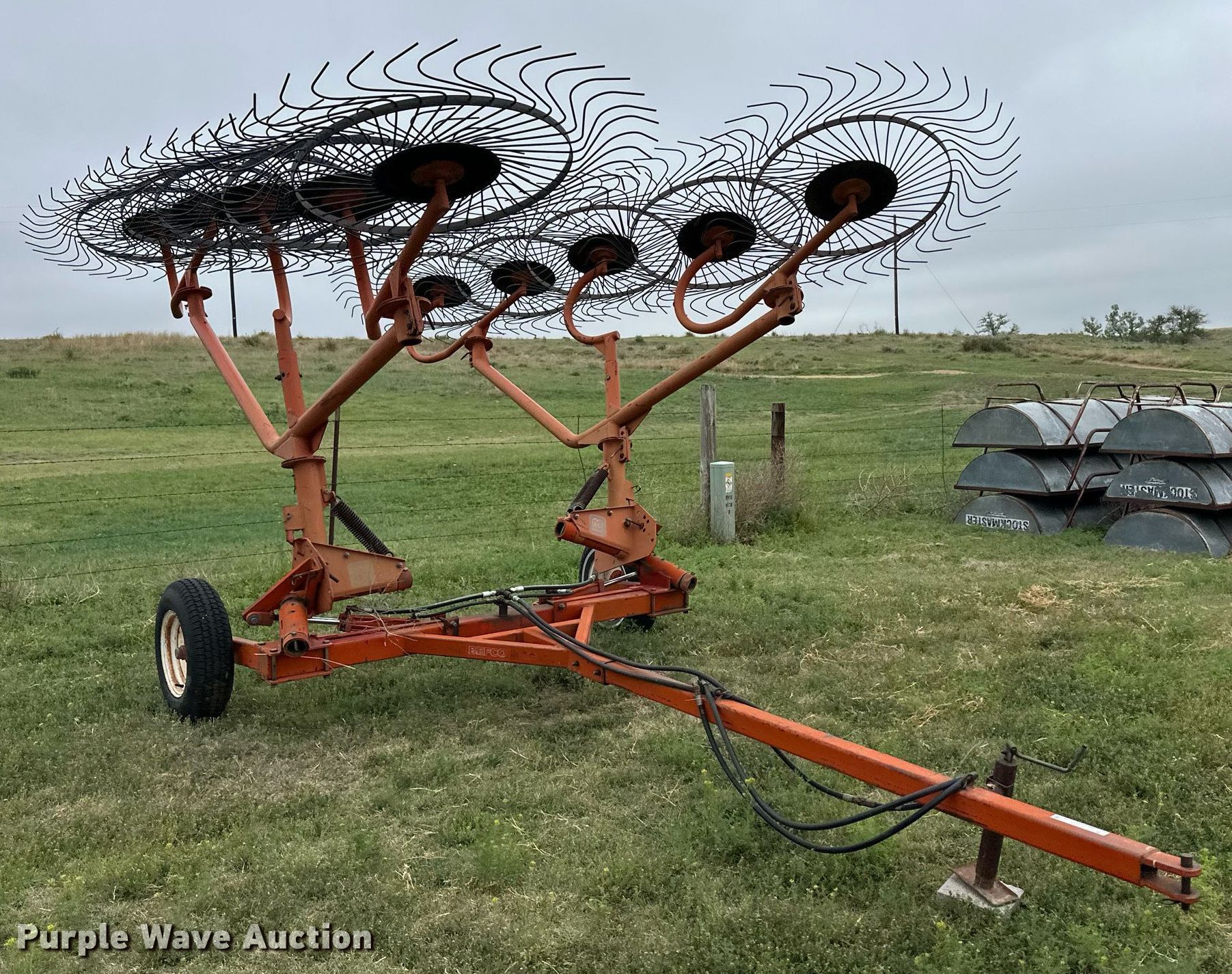 Purple Wave is selling a used Hay Rake in Oklahoma. This item is a Befco hay rake with the following: Wheels: 10, Diameter: 52", Hydraulic fold