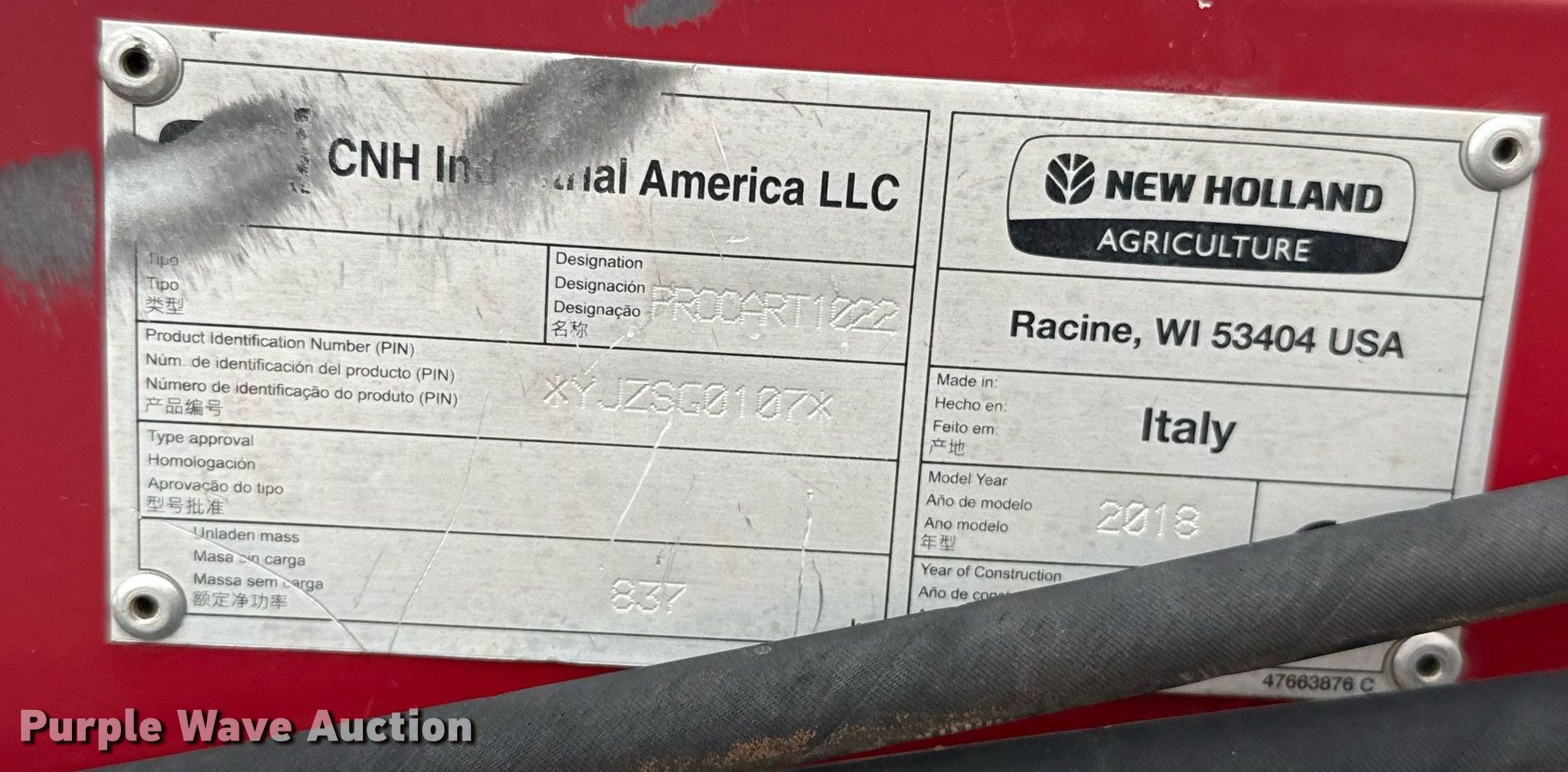 Purple Wave is selling a used Hay Rake in Oklahoma. This item is a 2018 New Holland Procart 1022 hay rake with the following: Serial: YJZSG0107