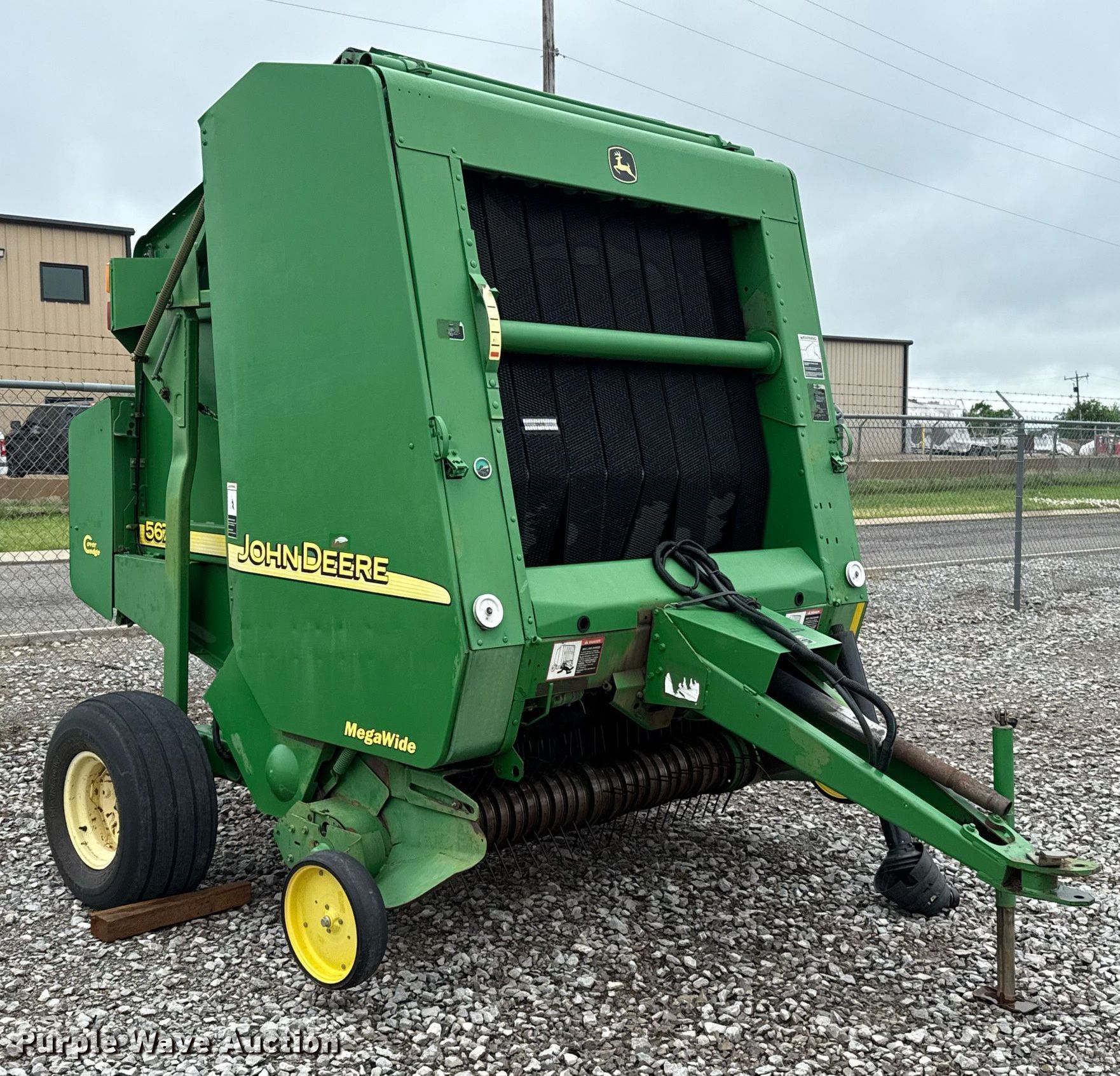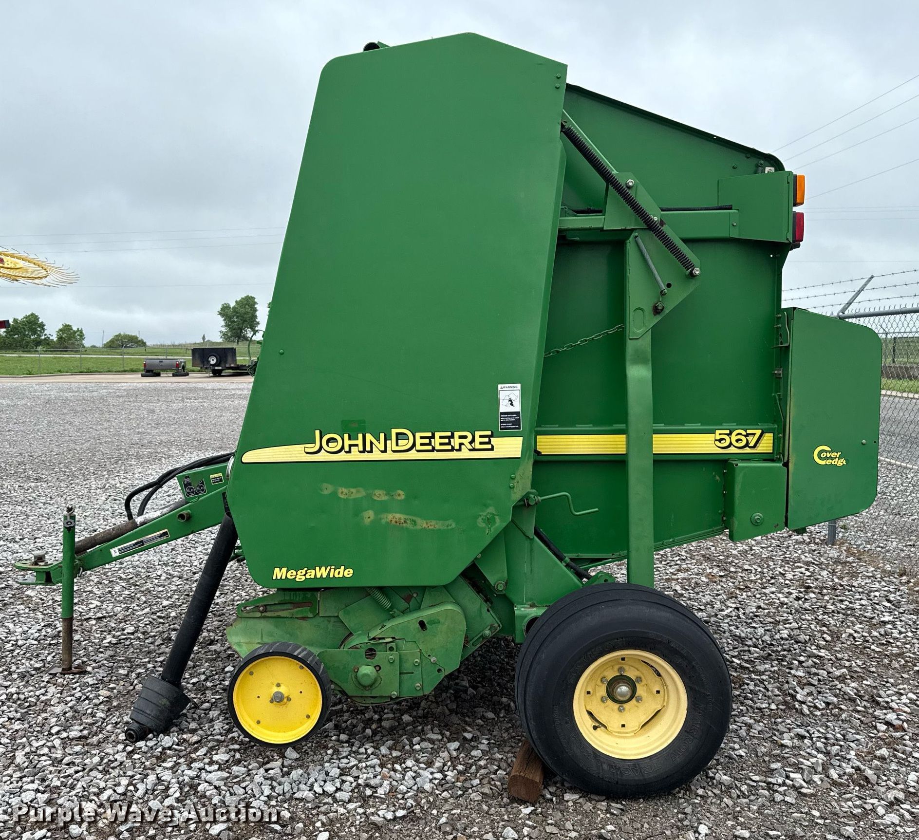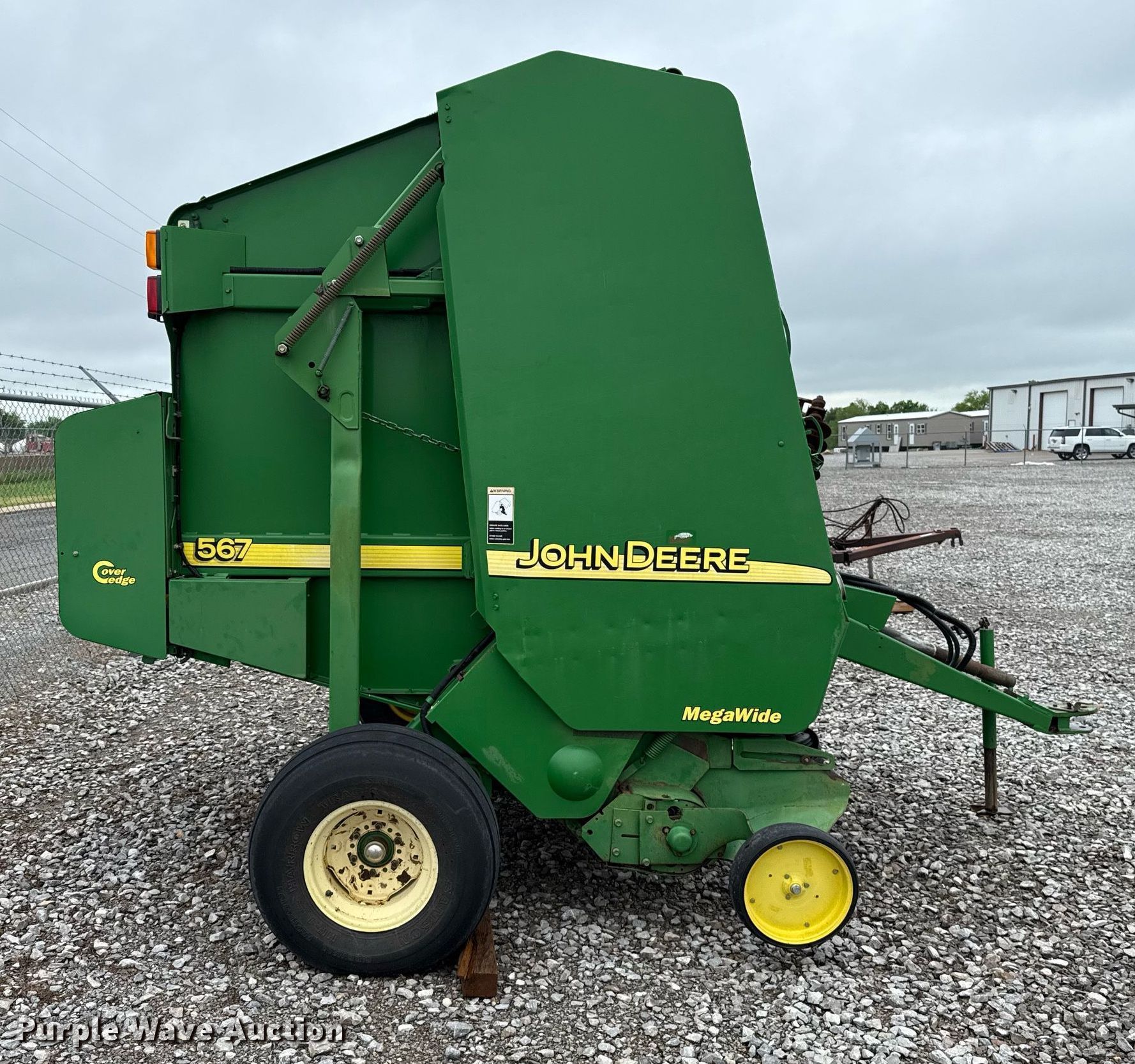 Purple Wave is selling a used Round Baler in Oklahoma. This item is a 2004 John Deere 567 MegaWide round baler with the following: Bale count: 567, Actual bale count unknown, Serial: E00567X302457
