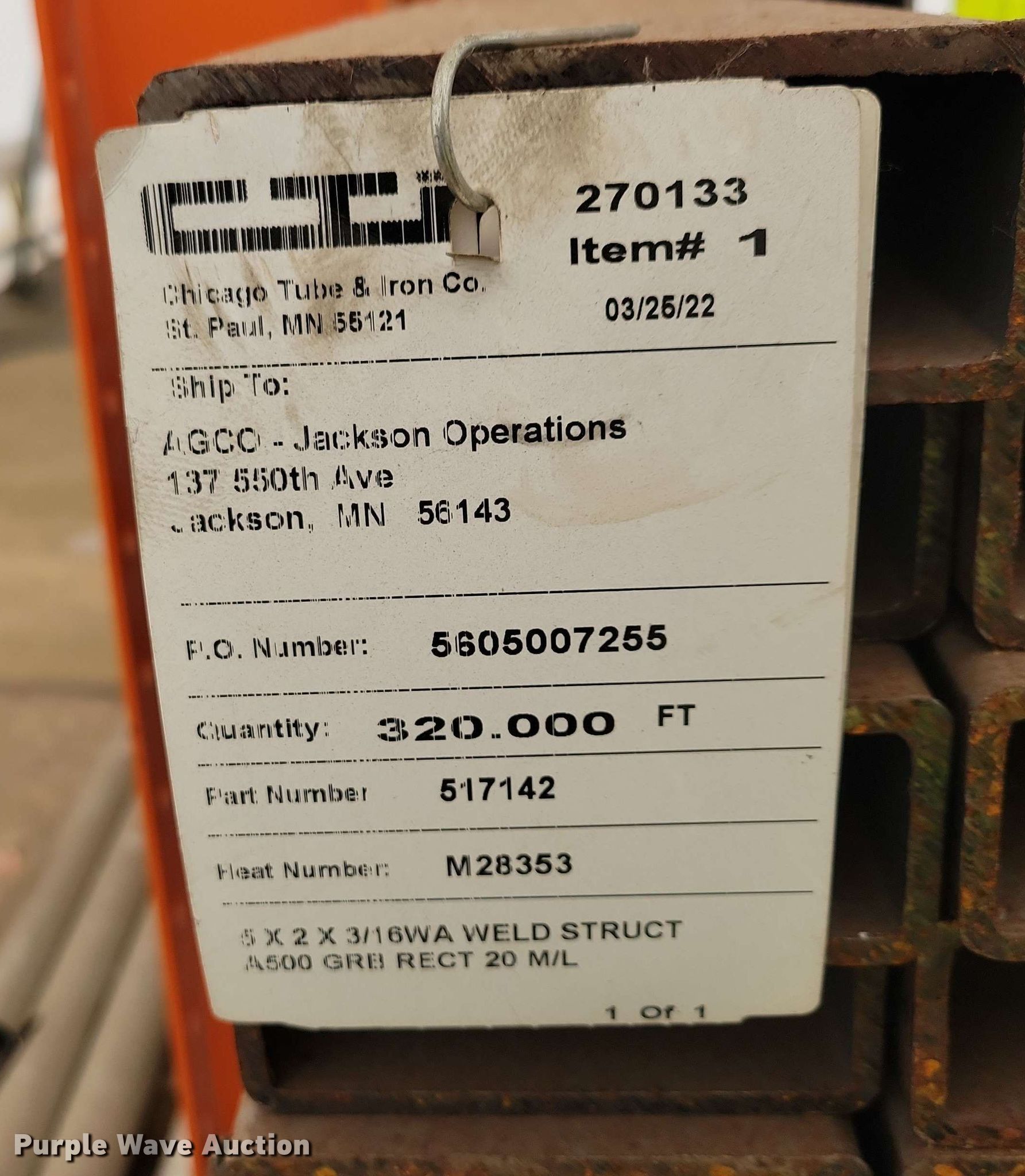 Steel tubing. (16) 5" x 2", (17) 6" x 6". AGCO. Jackson, MN 56143