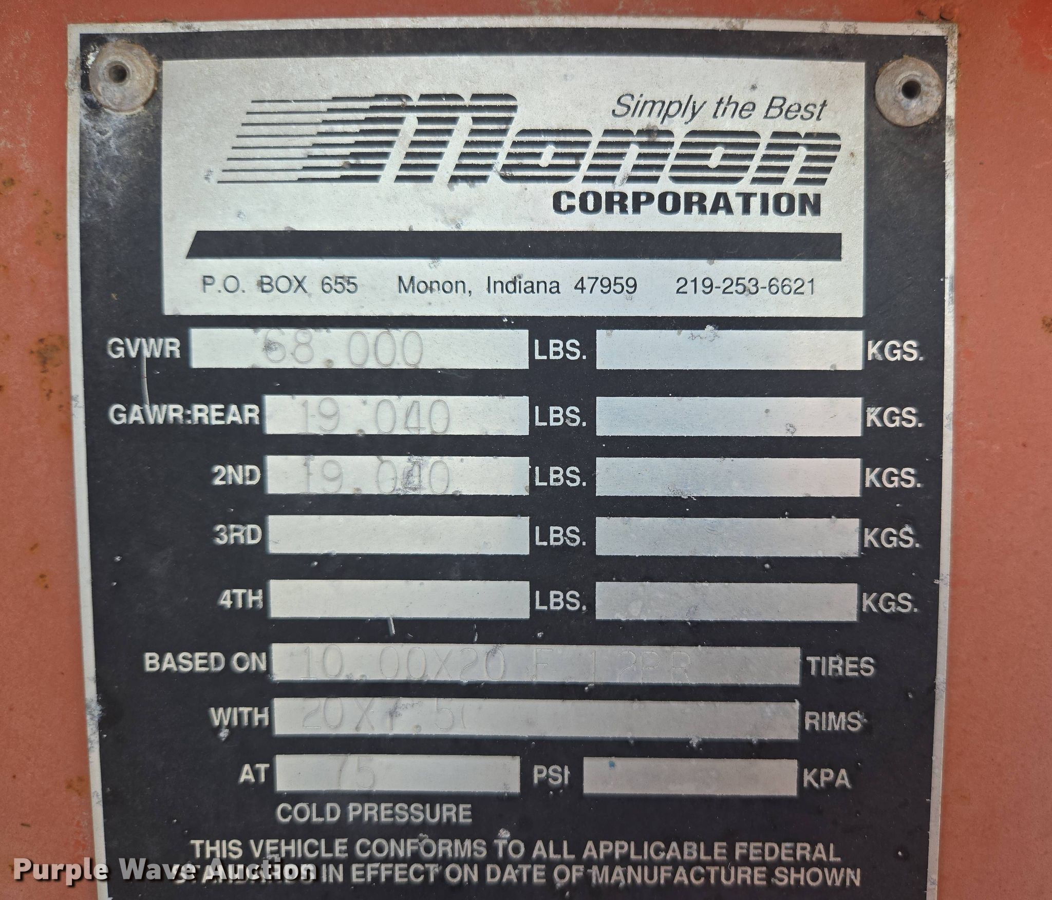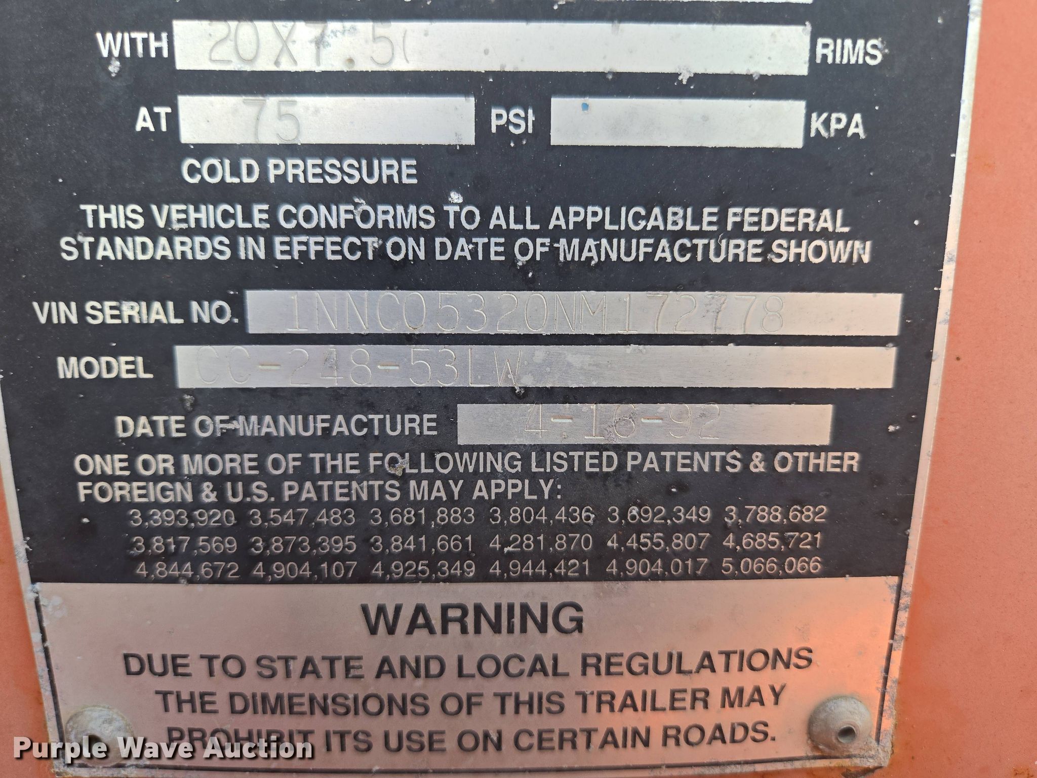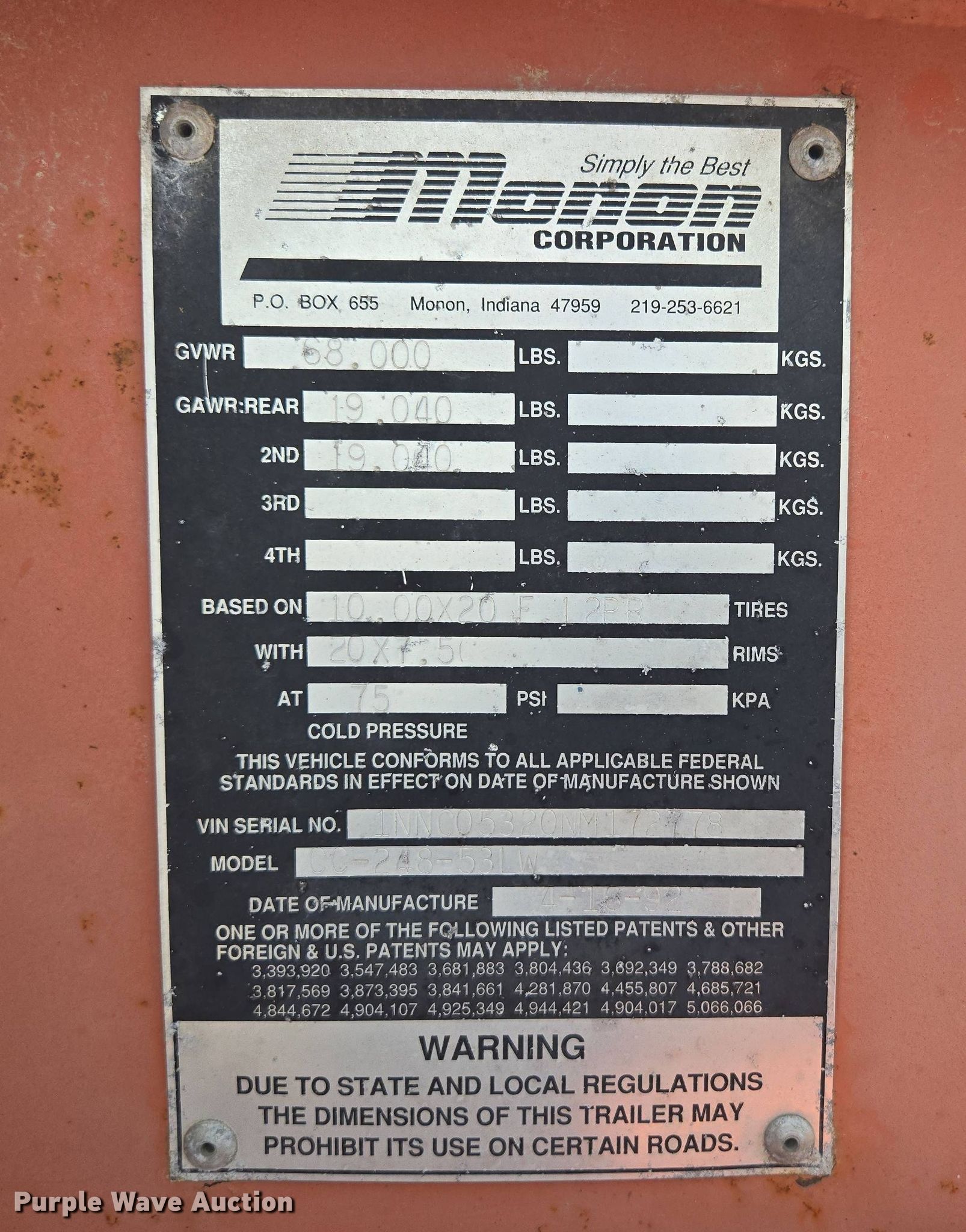 Purple Wave is selling a used Container Trailer in Missouri. This item is a 1992 Monon CC-248-53LW container trailer with the following: VIN: 1NNC05320NM172778