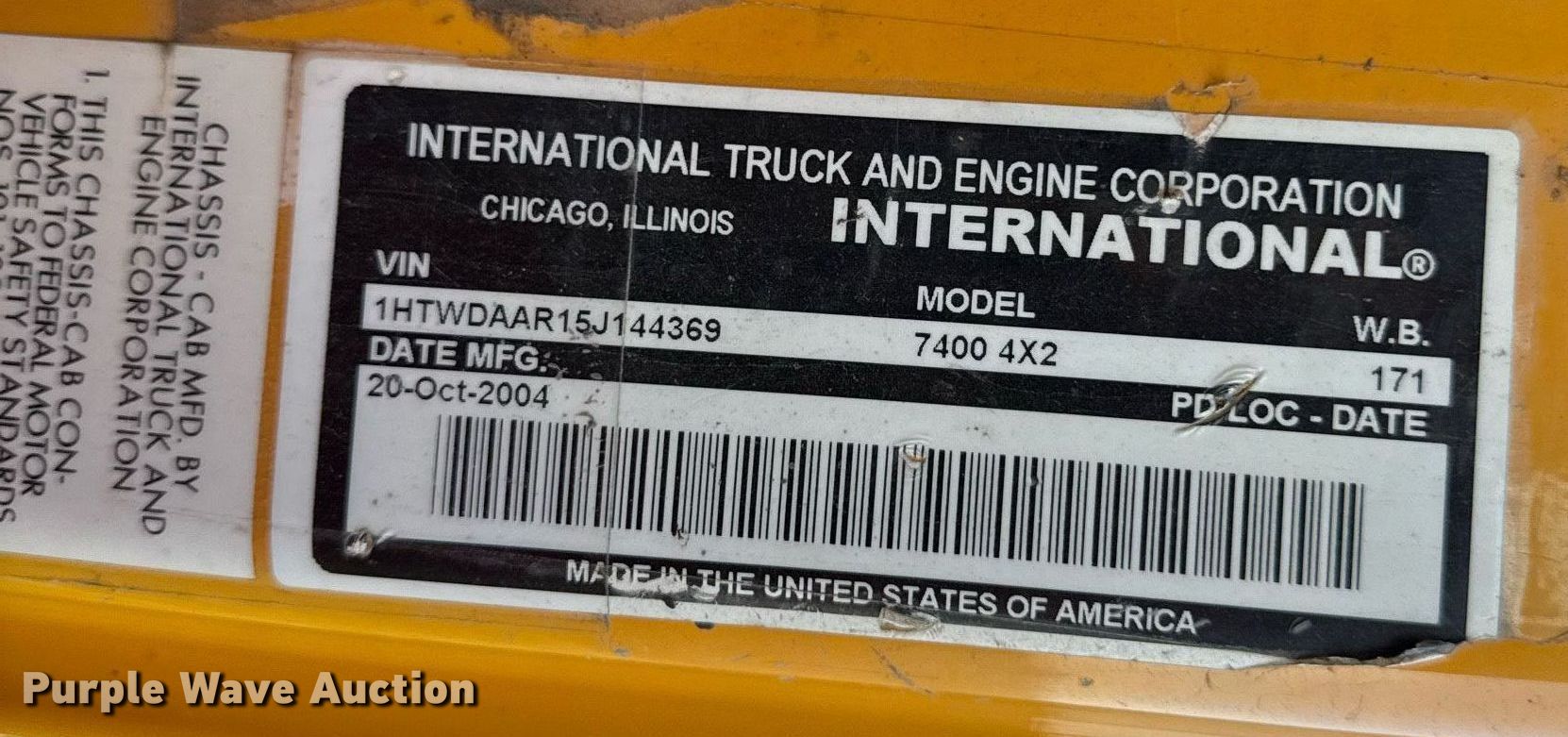 Purple Wave is selling a used Construction Dump Truck in Kansas. This item is a 2005 International 7400 dump truck with the following: Miles: 194,317 on odometer, Hours: 11,344 on meter, VIN: 1HTWDAAR15J144369