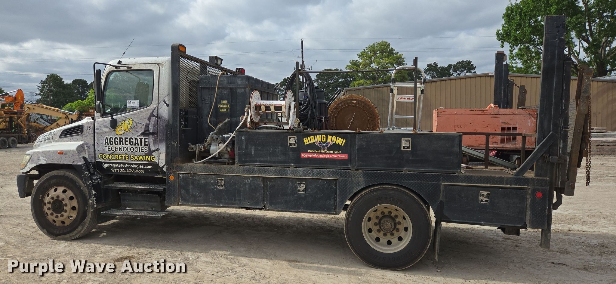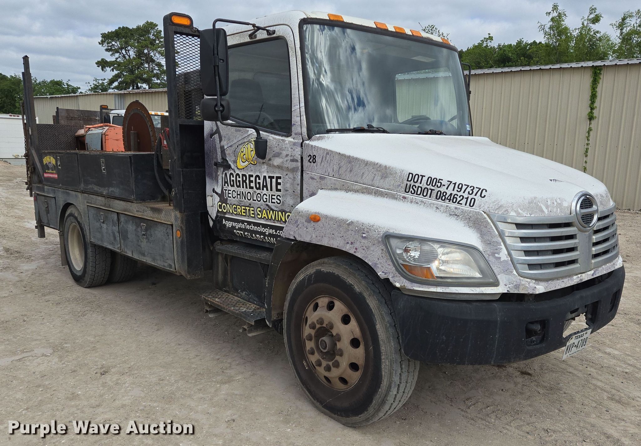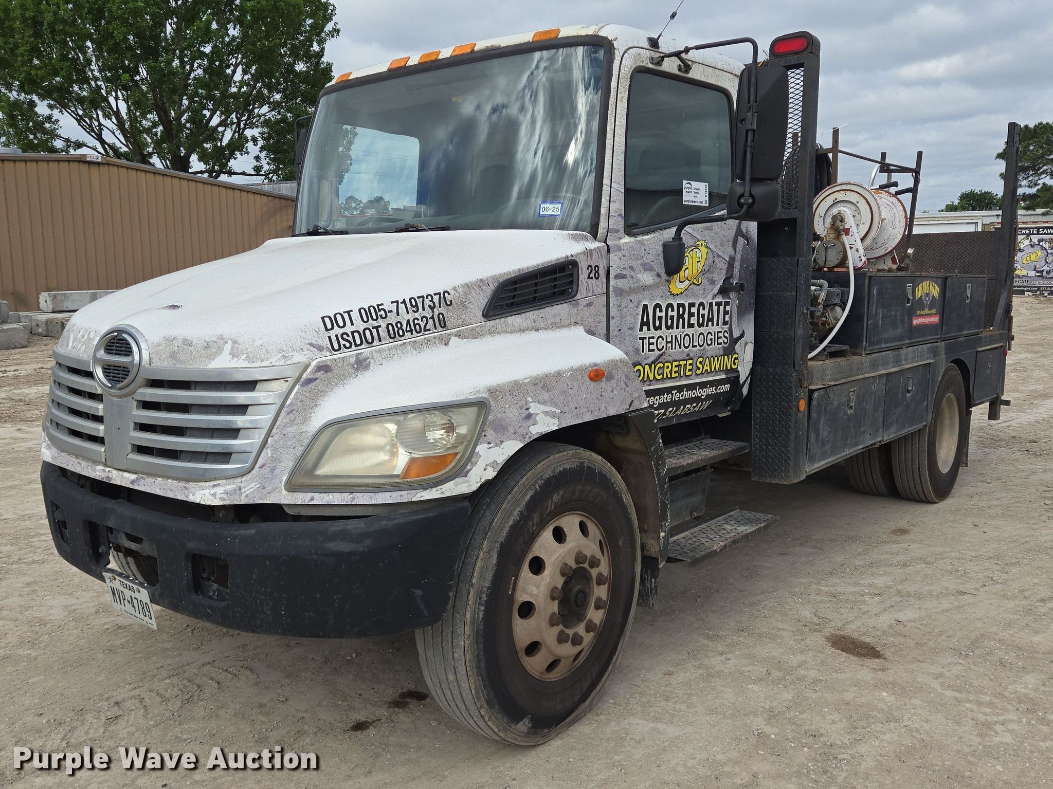 Purple Wave is selling a used Flat Bed Truck in Texas. This item is a 2006 Hino 268 flatbed truck with the following: Miles: 359,500 on odometer, VIN: 5PVNE8JR862S50022, Unit #: 28