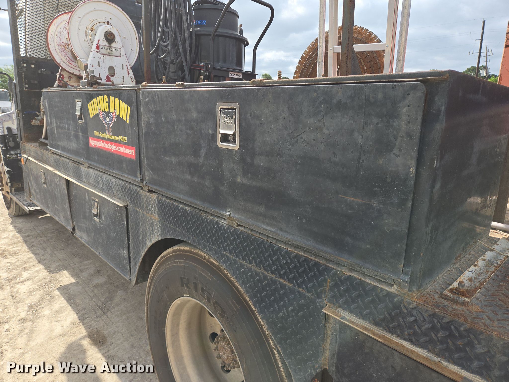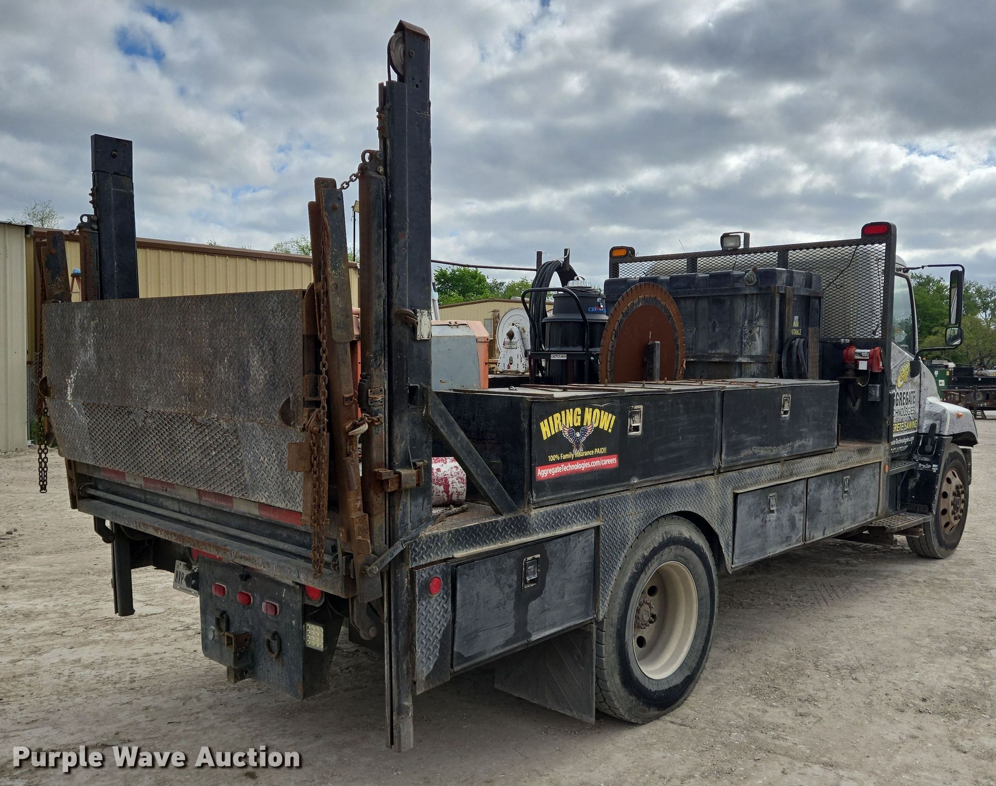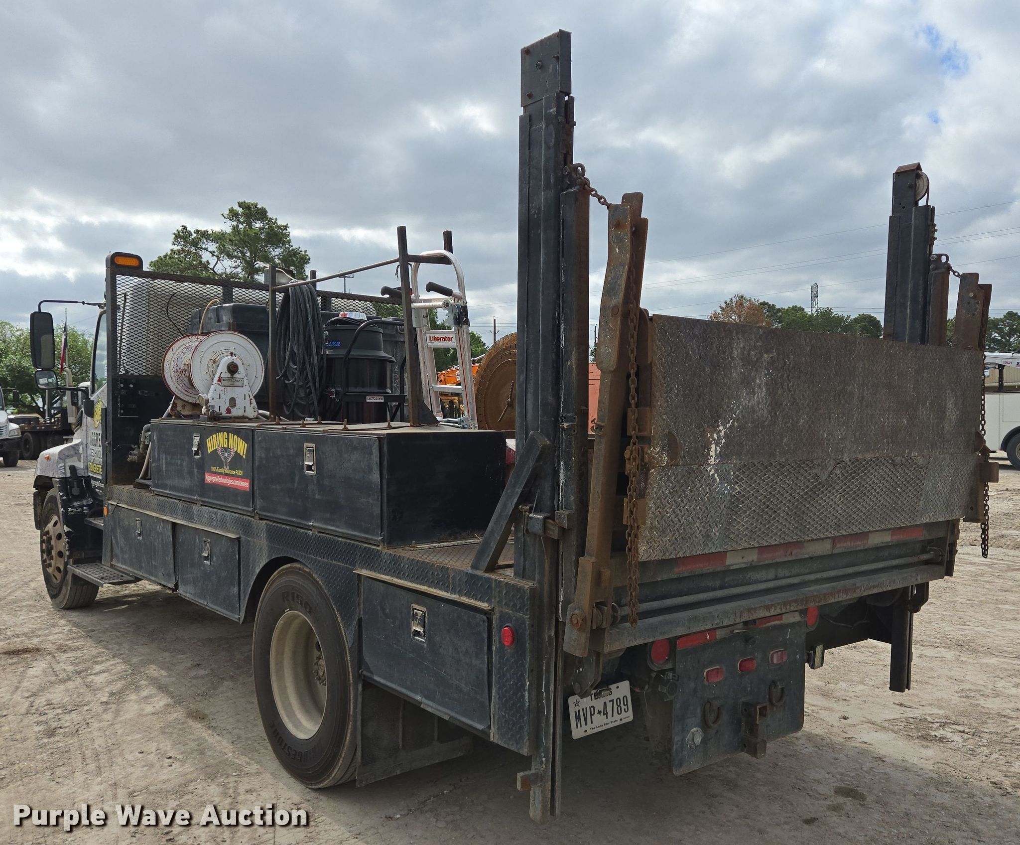 2006 Hino 268 flatbed truck. Miles: 359,500 on odometer, VIN: 5PVNE8JR862S50022, Unit #: 28. Engine Hino J08E-TA, Displacement: 7.6L, Cylinders: 6, Fuel type: Diesel, HP: 220. Transmission Automatic. Chassis Axles: Single, Suspension: Spring, Wheelbase: 185". Interior AC, Heat, Power windows, Cruise control. Features Flatbed 15' L x 96" W, End gate lift Model: RC-4B, Capacity: 4,000 lbs. Tires Size: 11R22.5. Notes Contents not included. Texas title. Aggregate Technologies, Inc. Houston, TX 77070