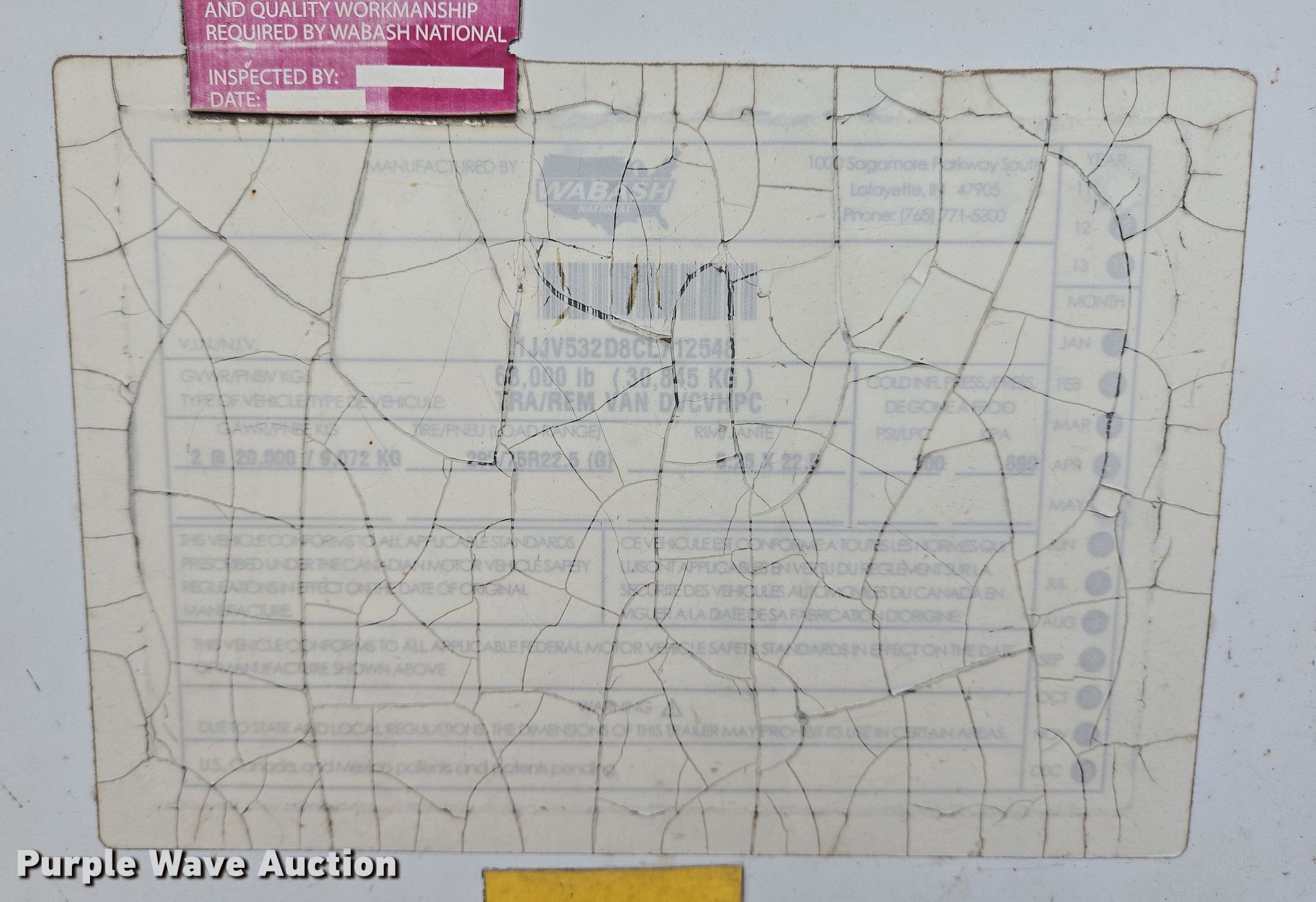 Purple Wave is selling a used Dry Van Trailer in Texas. This item is a 2012 Wabash dry van trailer with the following: VIN: 1JJV532D8CL712548