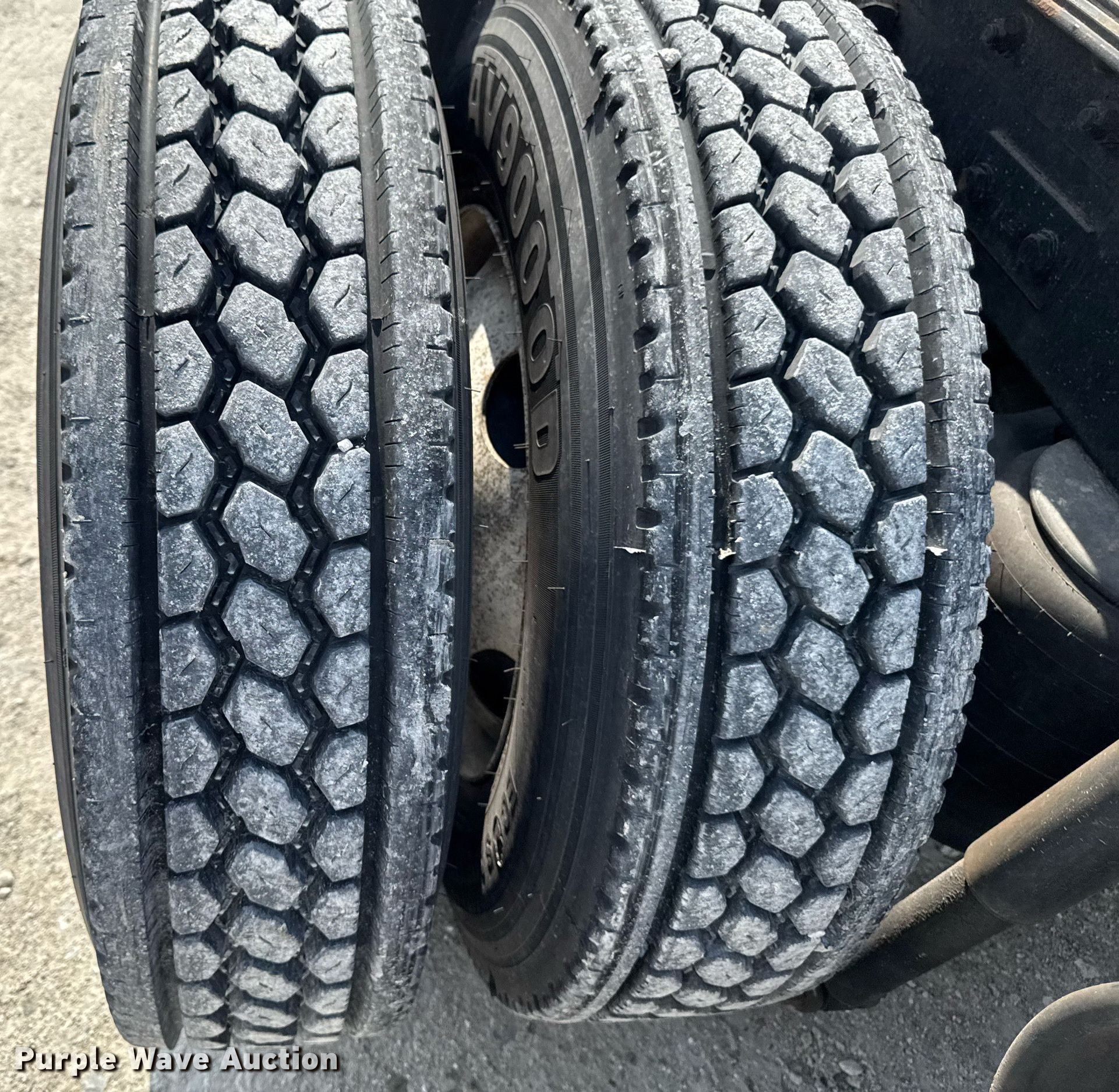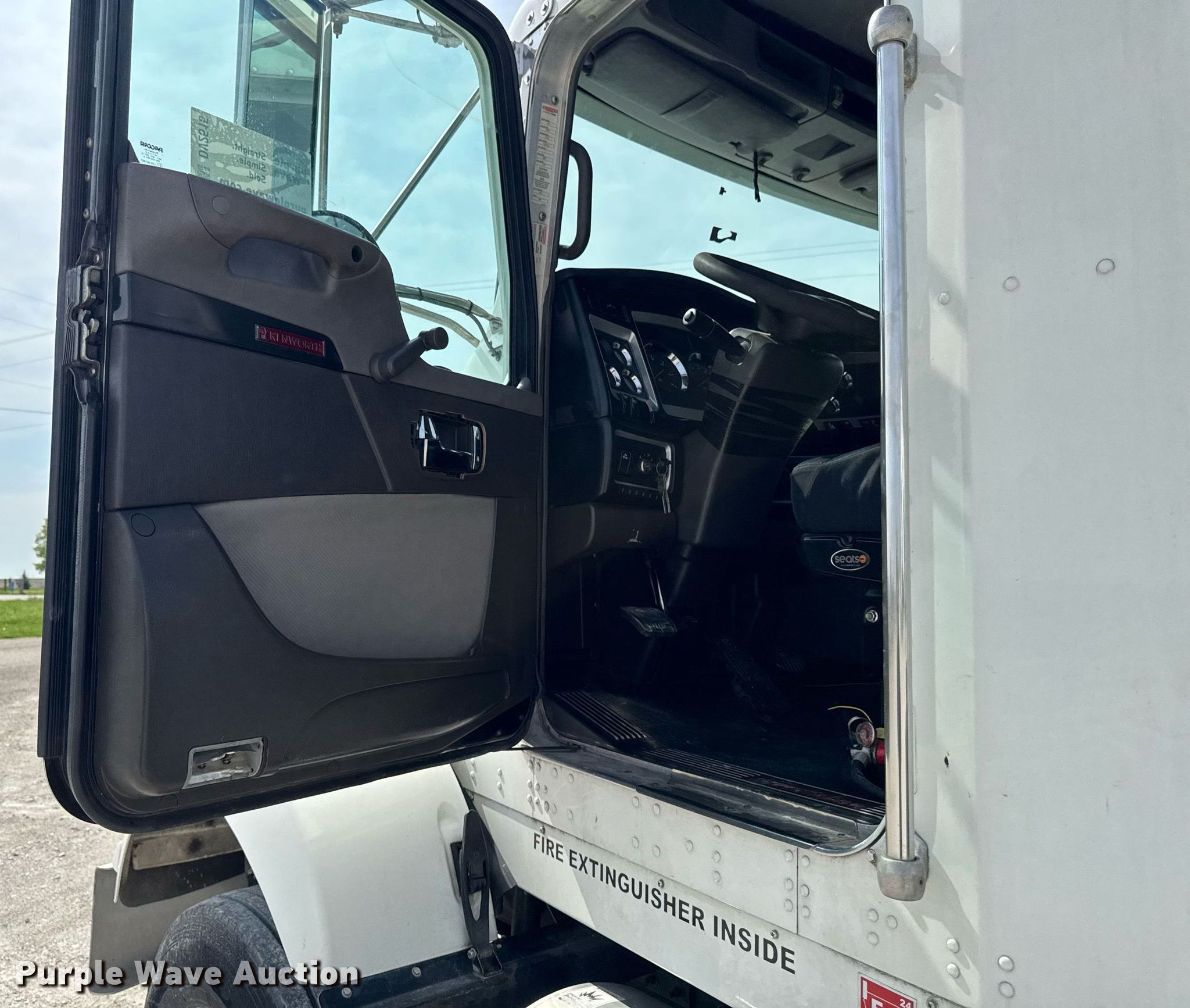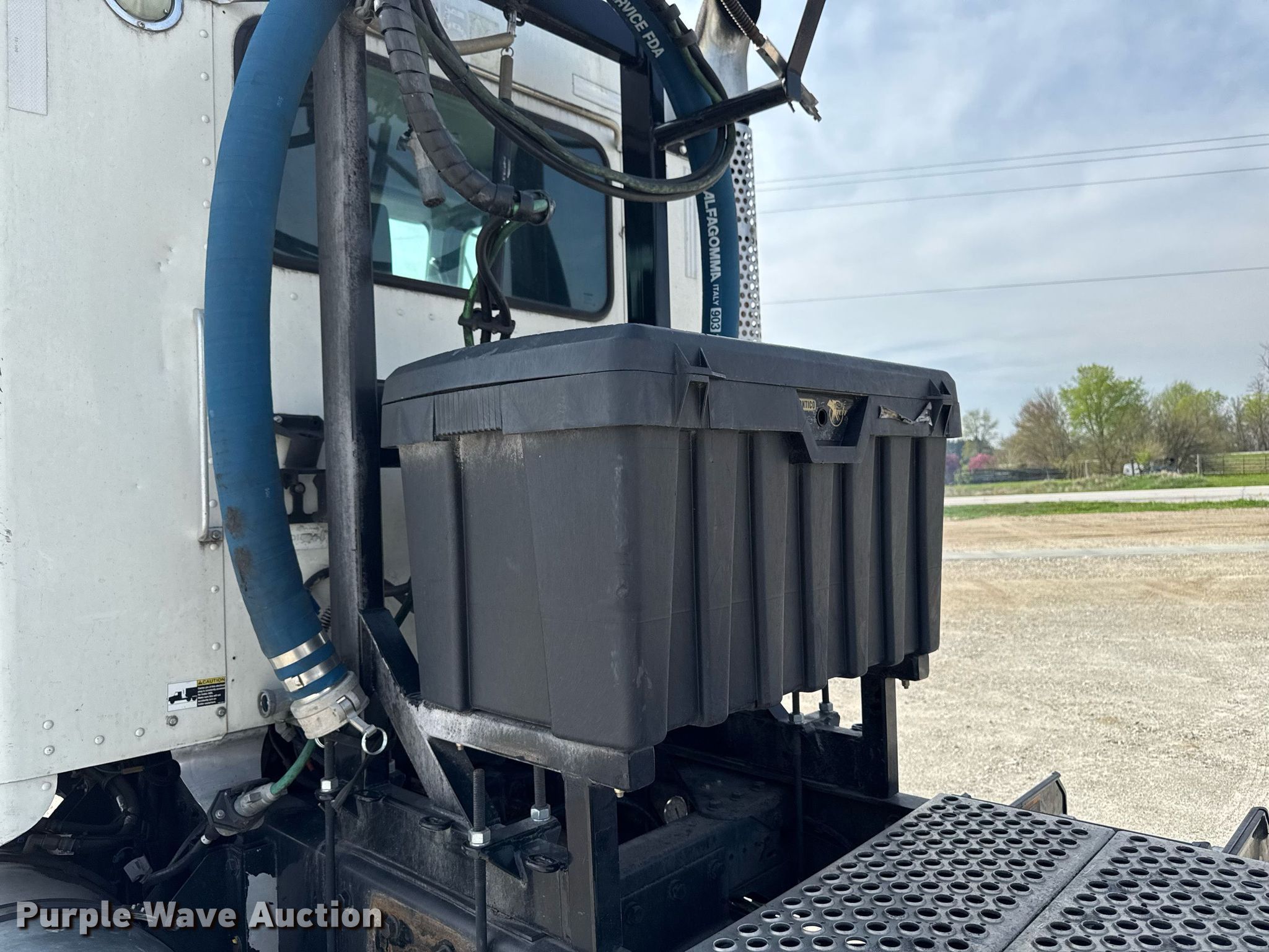 2009 Kenworth T800 semi truck. Miles: 363,036 on odometer, Hours: 17,958 on meter, VIN: 1XKDD59XX9R257845. Engine Cummins, Displacement: 8.9L, Cylinders: 6, Fuel type: Diesel, HP: 310. Transmission Eaton Fuller, Manual, Speed: 10. Chassis Axles: Tandem, Differential lock: Inter-axle, Suspension: Air Dump valves, Brakes: Air, PTO, Truck chassis: 175", GVWR: 48,000 lbs FAWR: 12,000 lbs, IAWR: 18,000 lbs, RAWR: 18,000 lbs. Interior AC, Heat, Power windows, Power locks, Cruise control, Air ride cab. Features Deck plate: Aluminum, Fifth wheel type: Air operated, Sliding, Fuel tank: Single. Tires Size: 295/75R22.5. Notes Dash warning indicator: Brake. Iowa title. Title distribution may be delayed up to 14 days from verification of funds. Straitline Transportation. Biggsville, IL 61418
