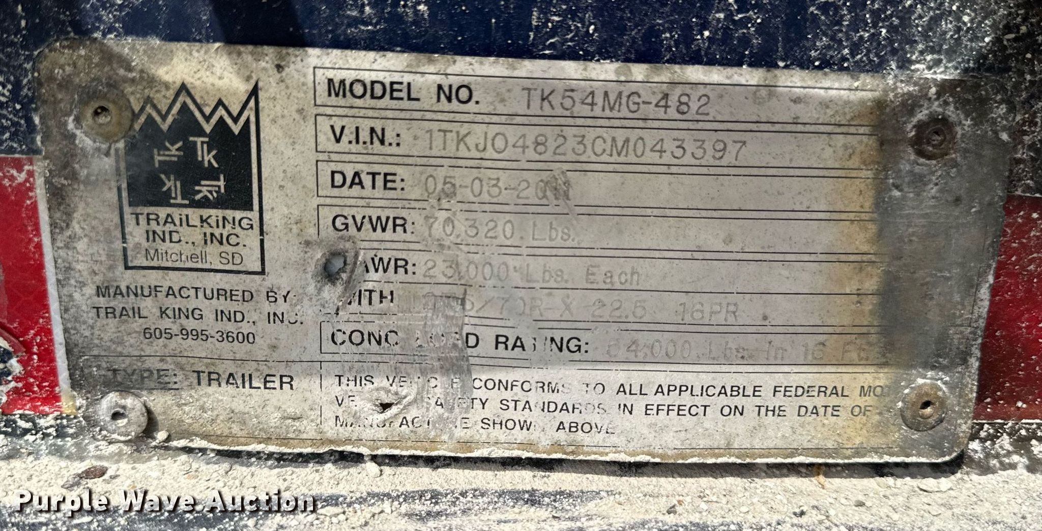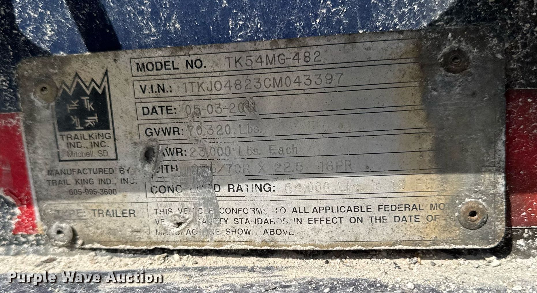 Purple Wave is selling a used Equip. Trailer in Illinois. This item is a 2012 Trail King Industries TK54MG-482 lowboy equipment trailer with the following: VIN: 1TKJ04823CM043397