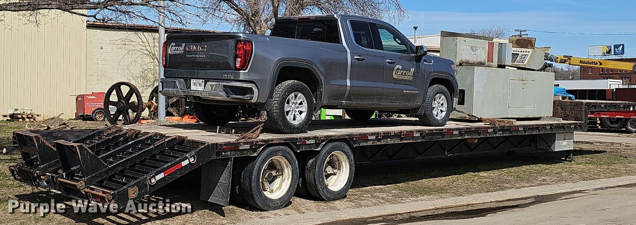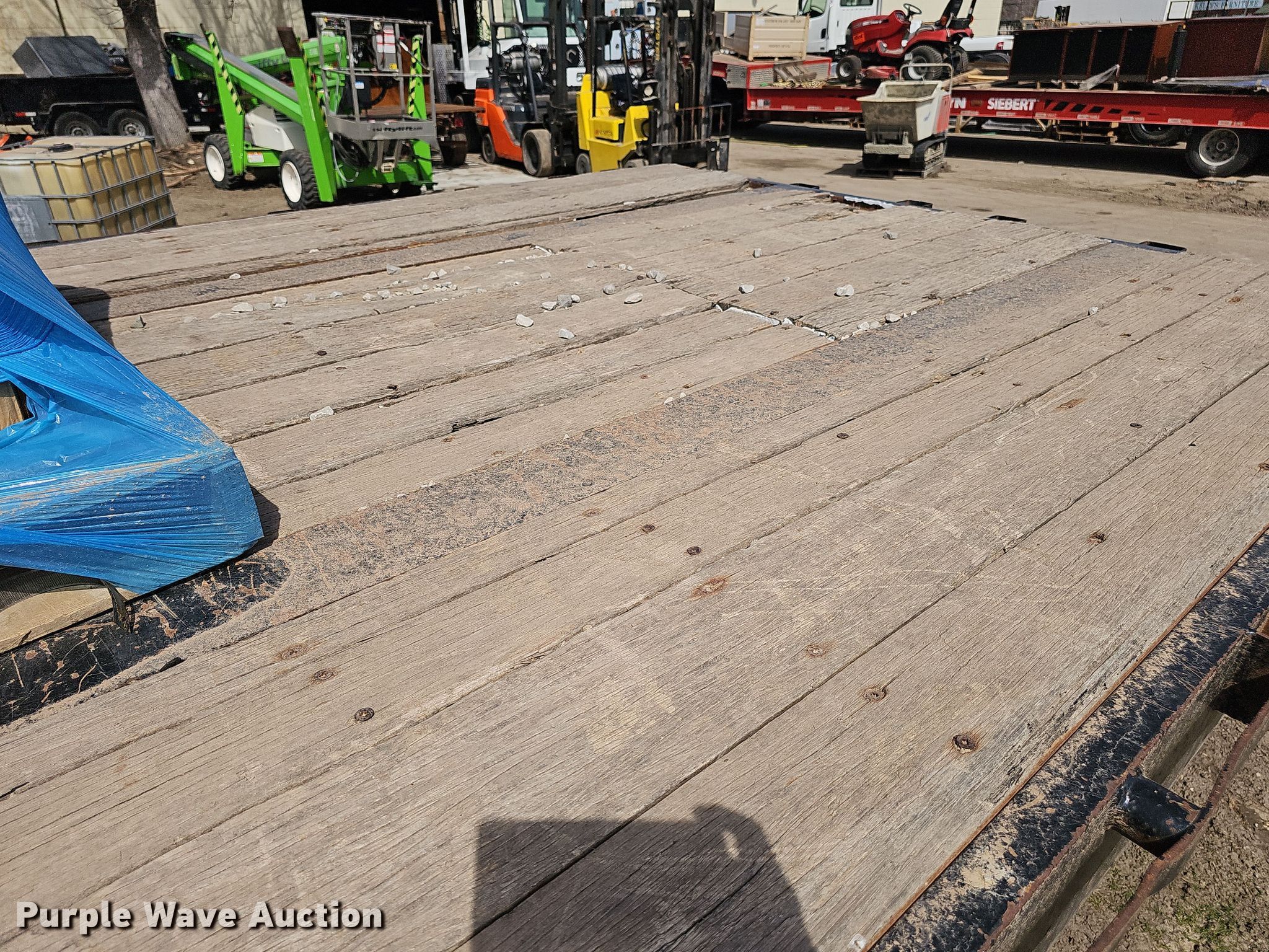 1988 Dorsey drop deck equipment trailer. VIN: 1DTP30Z29JA183962. Dimensions Overall: 53' L x 102" W, Deck: 37' L x 102" W, Top deck length: 11', Tail length: 5', Ramps: Manual Length: 62". Features Deck type: Wood. Chassis Landing gear: Dual, Suspension: Spring, Brakes: Air, Axles: Tandem. Tires Steel wheels, Size: 255/70R22.5. Notes Pickup truck, Rebar-Matic machine, and pallet not included, Deck board issues, some boards need replaced. Iowa title. Title distribution may be delayed up to 14 days from verification of funds. Carroll Distributing & Construction Supply. Council Bluffs, IA 51501