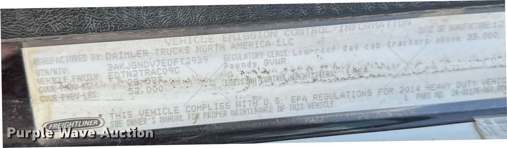 Purple Wave is selling a used Truck Tractor in Minnesota. This item is a 2014 Freightliner Coronado SD 122 semi truck with the following: Miles: 720,864 on odometer, Hours: 12,887 on meter, VIN: 3AKJGNDV7EDFT2939, Unit #: 939