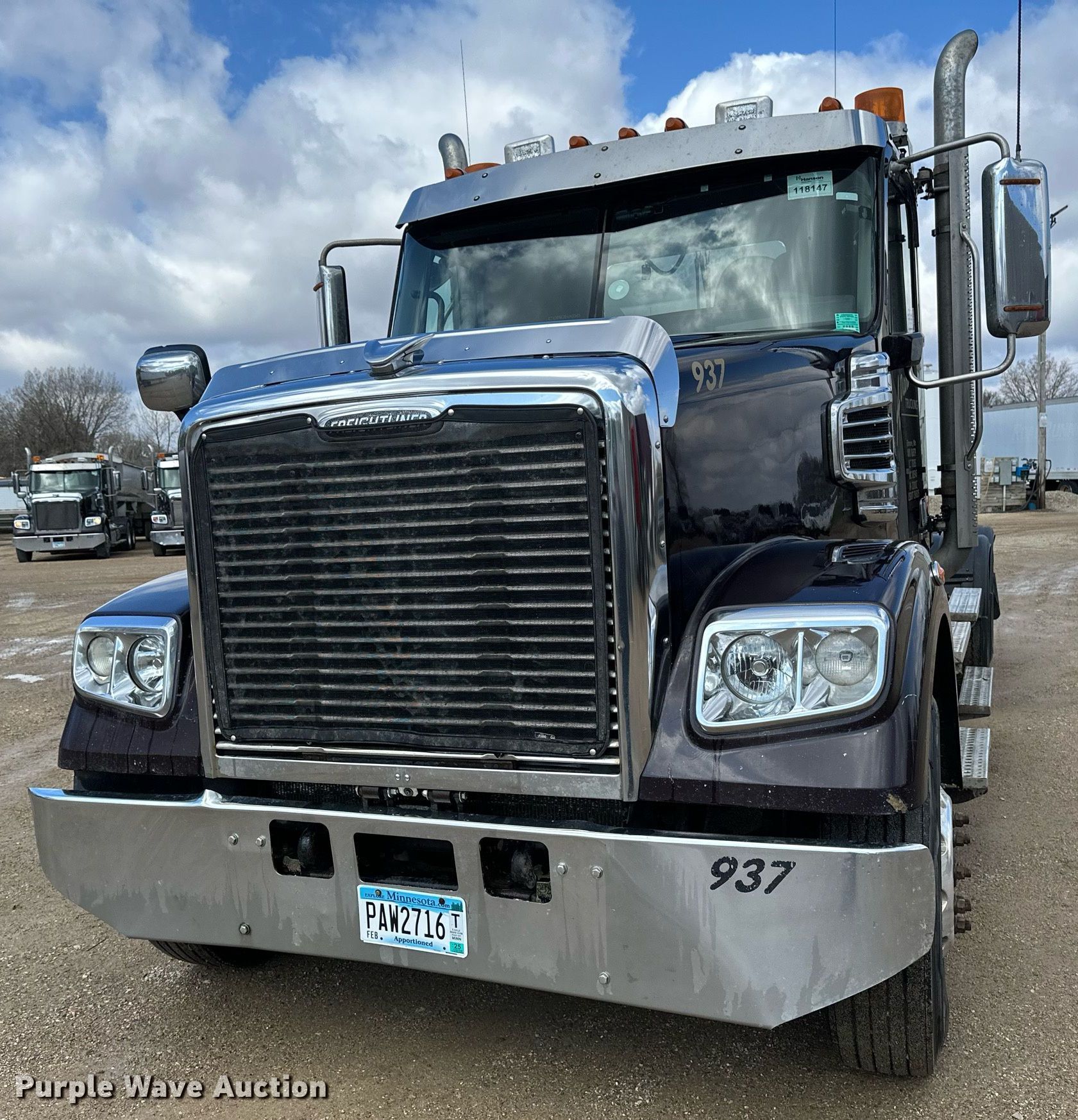 Purple Wave is selling a used Truck Tractor in Minnesota. This item is a 2014 Freightliner Coronado SD 122 semi truck with the following: Miles: 752,877 on odometer, Hours: 19,082 on meter, VIN: 3AKJGNDV3EDFT2937, Unit #: 937