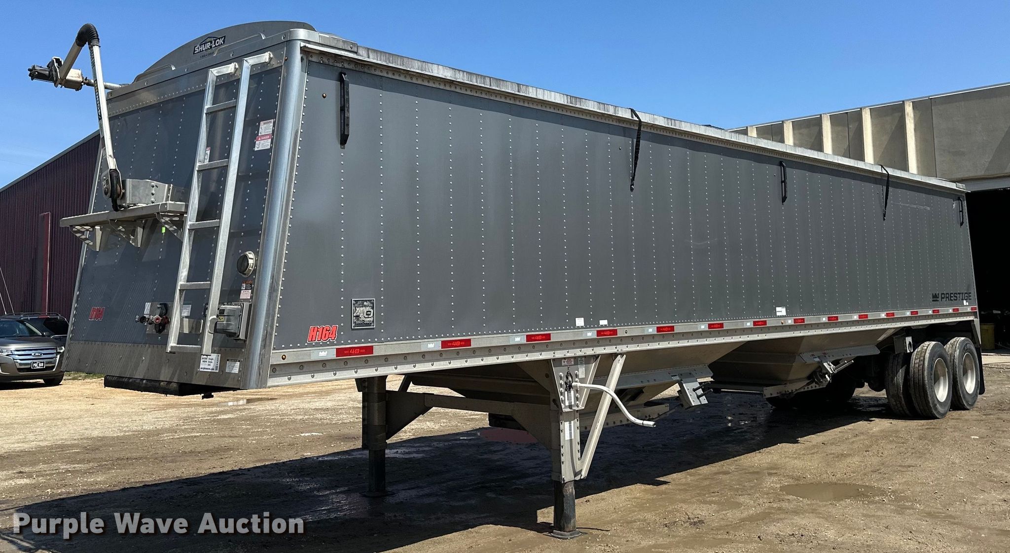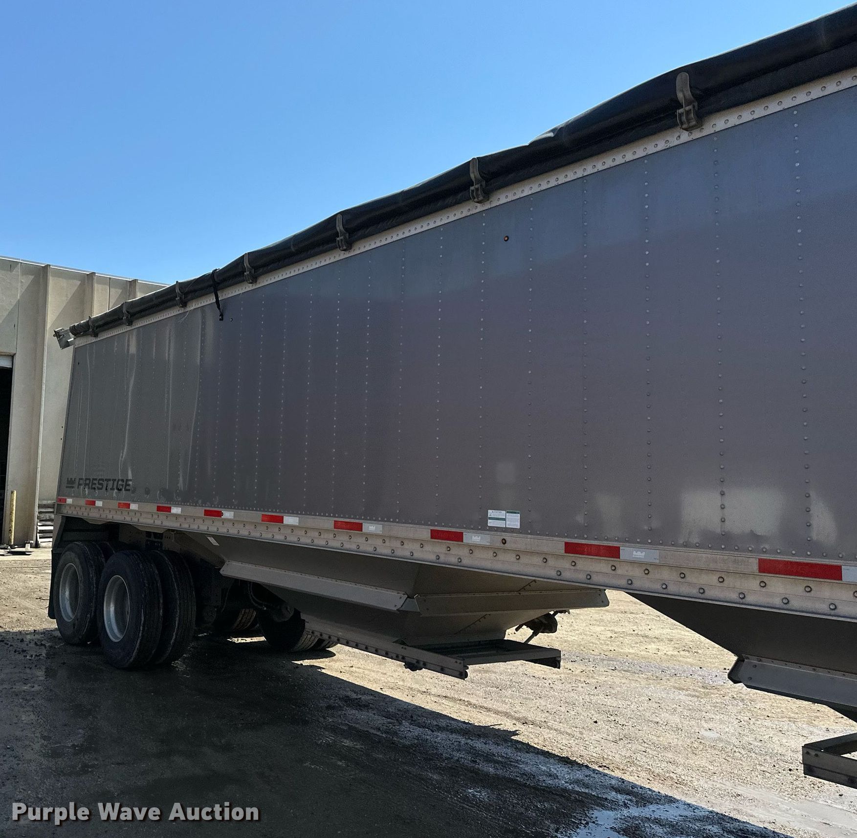 2021 Prestige grain trailer. VIN: 2LDAH4227MV070164, Unit #: H164. Dimensions Overall: 42' L x 96" W, Side height: 6'. Features Body type: Aluminum, Hoppers: Double Trap gates: Manual, Roll tarp. Chassis Landing gear: Dual, Suspension: Air, Brakes: Air, GVWR: 72,500 lbs, GAWR: 20,000 lbs. Tires Aluminum wheels, Size: 11R22.5. Iowa title. Title has a lien that will be released following the close of the auction. Title distribution may be delayed up to 30 days from verification of funds. A Dahl Trucking Inventory Reduction - Open Inspection May 23rd. Elmore, MN 56027