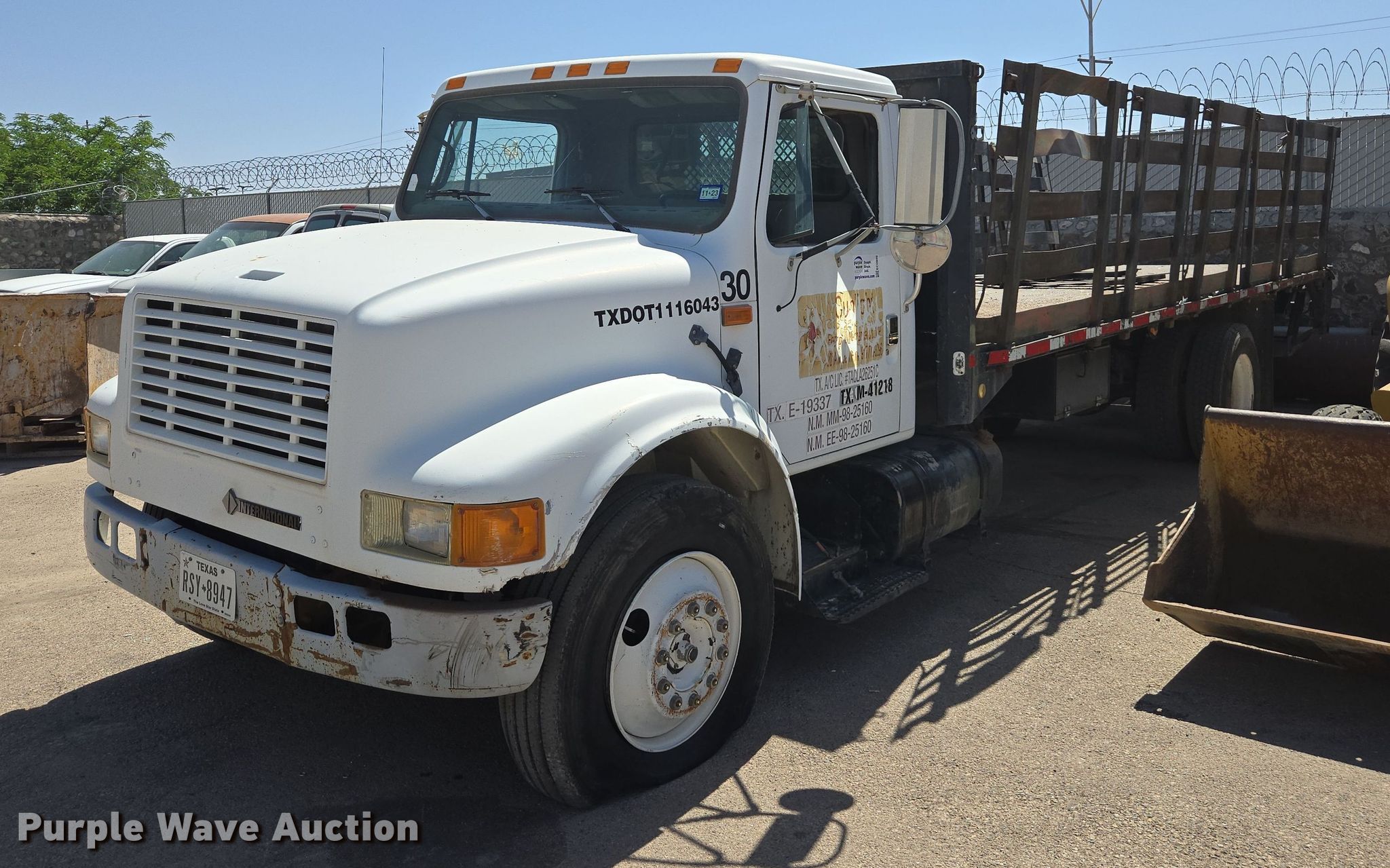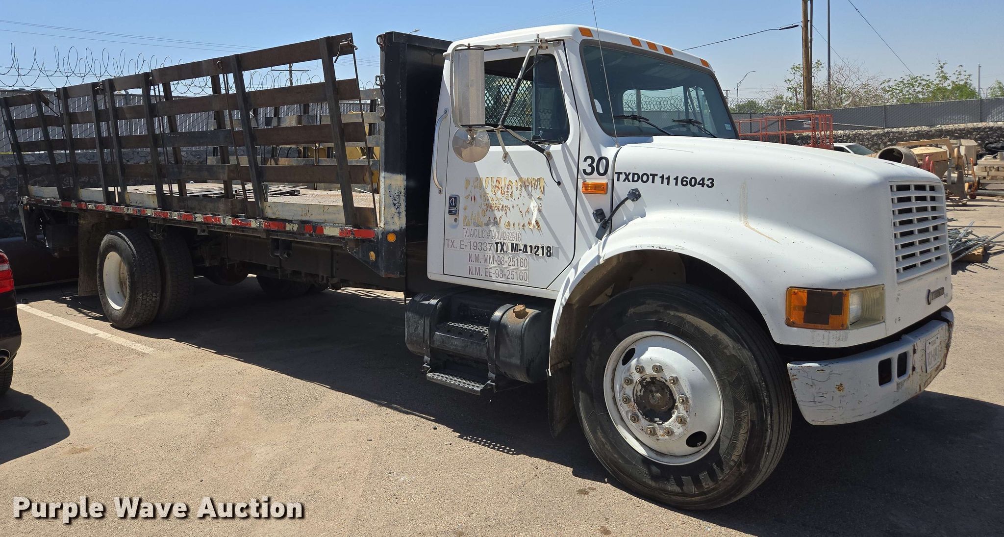 1995 International 4700 flatbed truck. Miles: 294,599 on odometer, VIN: 1HTSCAAM8SH642299. Engine International A175, Displacement: 7.6L, Cylinders: 6, Fuel type: Diesel. Transmission Spicer, Manual, Speed: 5. Chassis Axles: Single, Suspension: Spring, Brakes: Hydraulic. Interior AC, Heat. Features Flatbed 24' L x 92" W, Removable sides, End gate lift. Tires Size: 295/75R22.5. Notes Non-operational exterior door handles Doors can be opened from the inside, Unknown operating condition Unit must be towed or hauled. All items must be removed by June 10, 2025. Texas bonded title. Title distribution may be delayed up to 30 days from verification of funds. Sunlight Electric & Mechanical Co.. El Paso, TX 79915