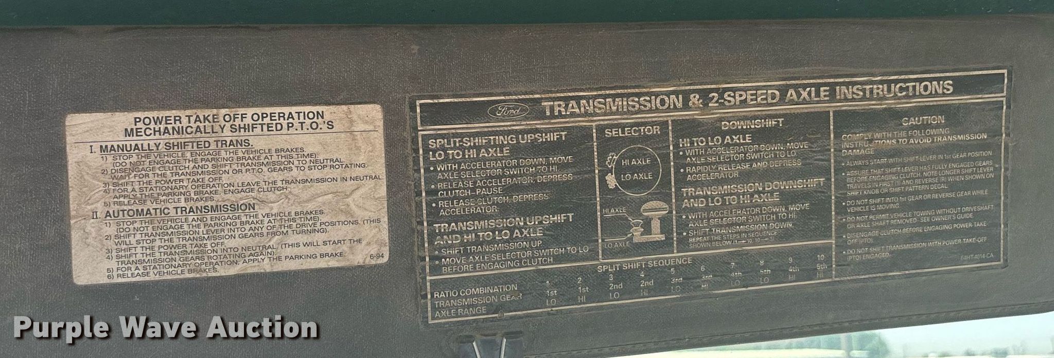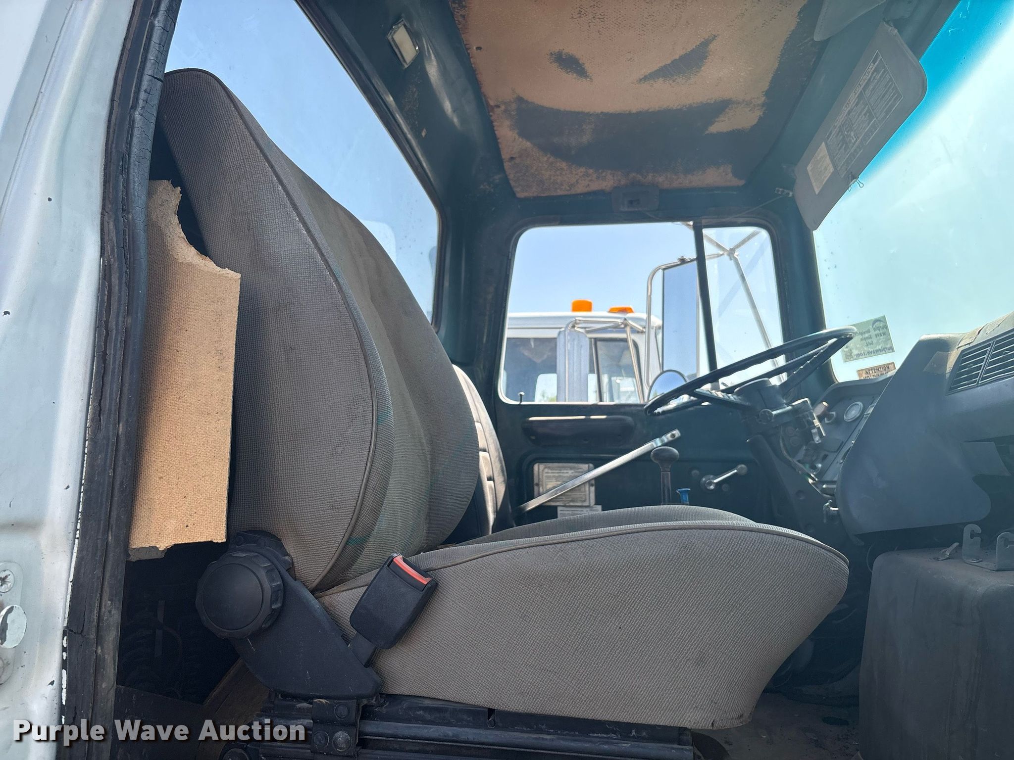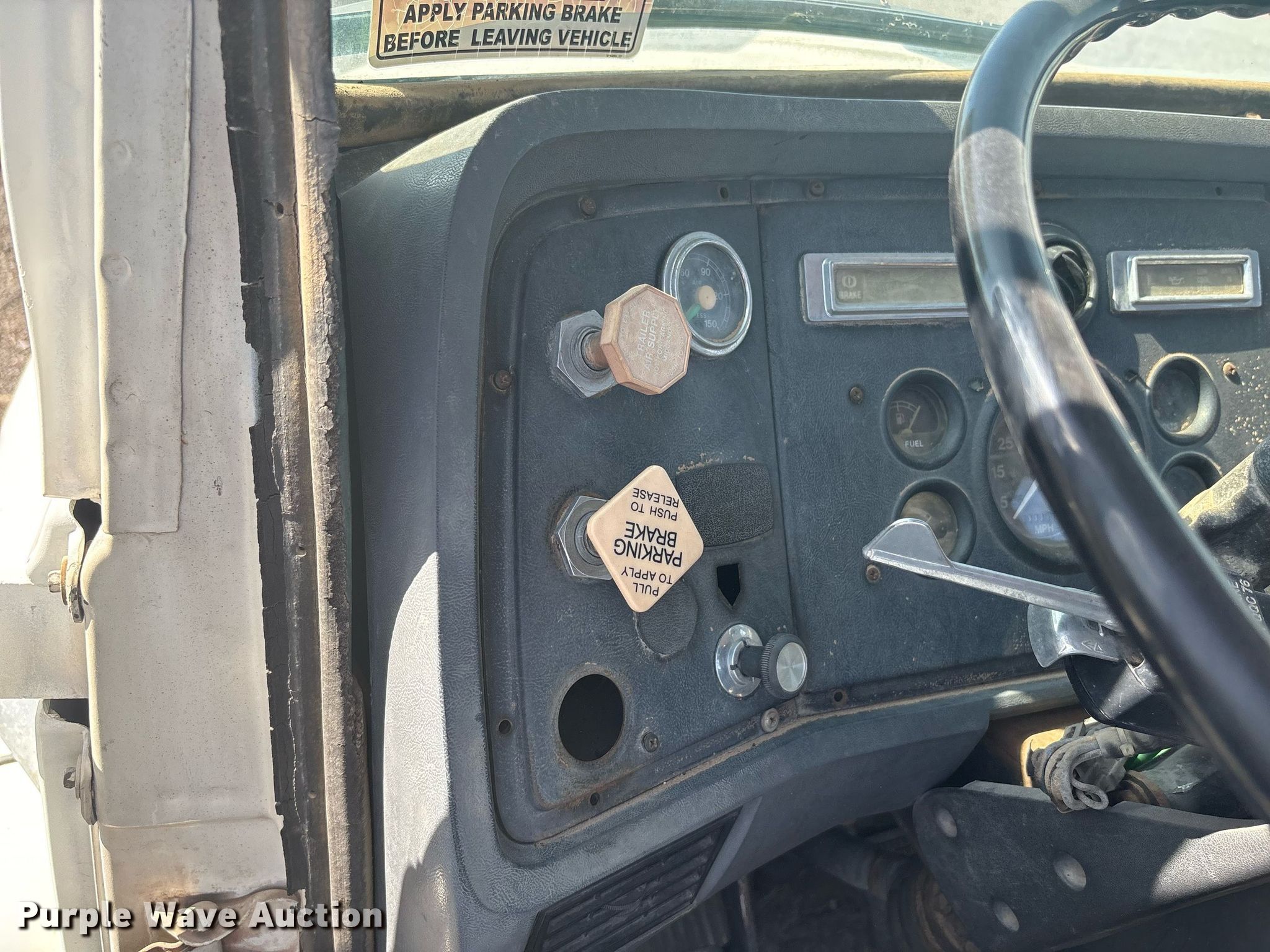 1987 Ford L8000 semi truck. Miles: 138,713 on odometer, VIN: 1FTXR82A5HVA26696. Engine Ford 205F, Displacement: 7.8L, Cylinders: 6, Fuel type: Diesel, HP: 205. Transmission Manual, Speed: 5, plus 2. Chassis Axles: Single, Suspension: Spring, Brakes: Air, PTO Hours: 1,226 on meter, Truck chassis: 9' 4", GVWR: 30,000 lbs FAWR: 9,000 lbs, RAWR: 21,000 lbs, Wheelbase: 138". Features Fifth wheel type: Fixed, Fuel tank: Dual. Tires Size: 285/75R24.5. Notes Batteries missing, Radiator missing, Unknown operating condition. Kansas title. Title distribution may be delayed up to 14 days from verification of funds. Dustrol Inc.. El Paso, TX 79936