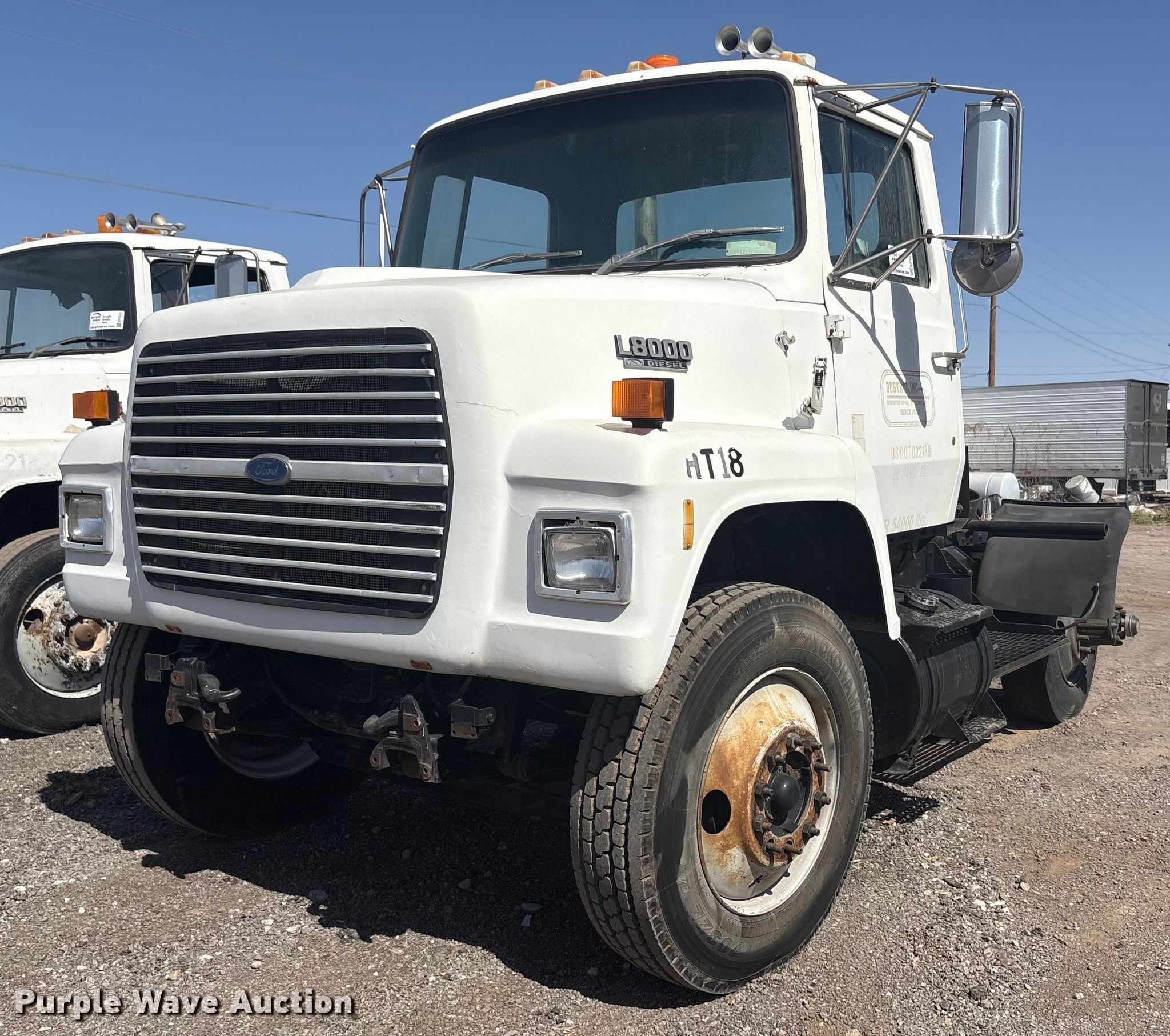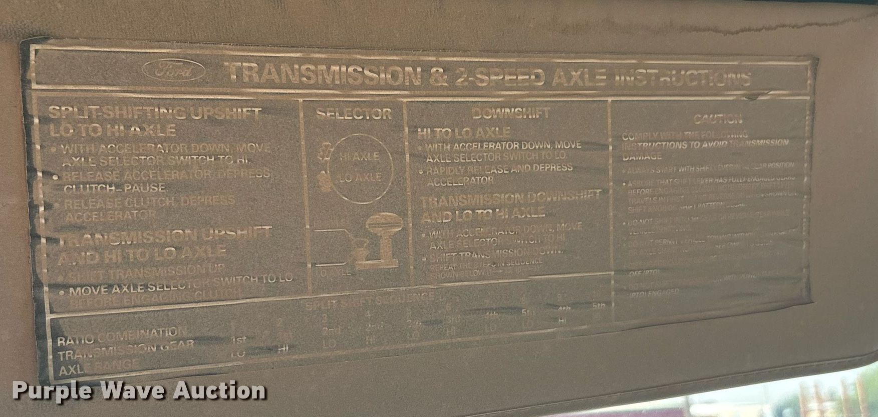1987 Ford L8000 semi truck. Miles: 120,871 on odometer, VIN: 1FTXR82A4HVA34188. Engine Ford 205F, Displacement: 7.8L, Cylinders: 6, Fuel type: Diesel, HP: 205. Transmission Manual, Speed: 5, plus 2. Chassis Axles: Single, Suspension: Spring, Brakes: Air, PTO Hours: 8,704 on meter, Truck chassis: 9' 4", GVWR: 30,000 lbs FAWR: 9,000 lbs, RAWR: 21,000 lbs, Wheelbase: 138". Features Fifth wheel type: Fixed, Fuel tank: Dual. Tires Size: 285/75R24.5. Notes Dead battery, Unknown operating condition. Kansas title. Title distribution may be delayed up to 14 days from verification of funds. Dustrol Inc.. El Paso, TX 79936