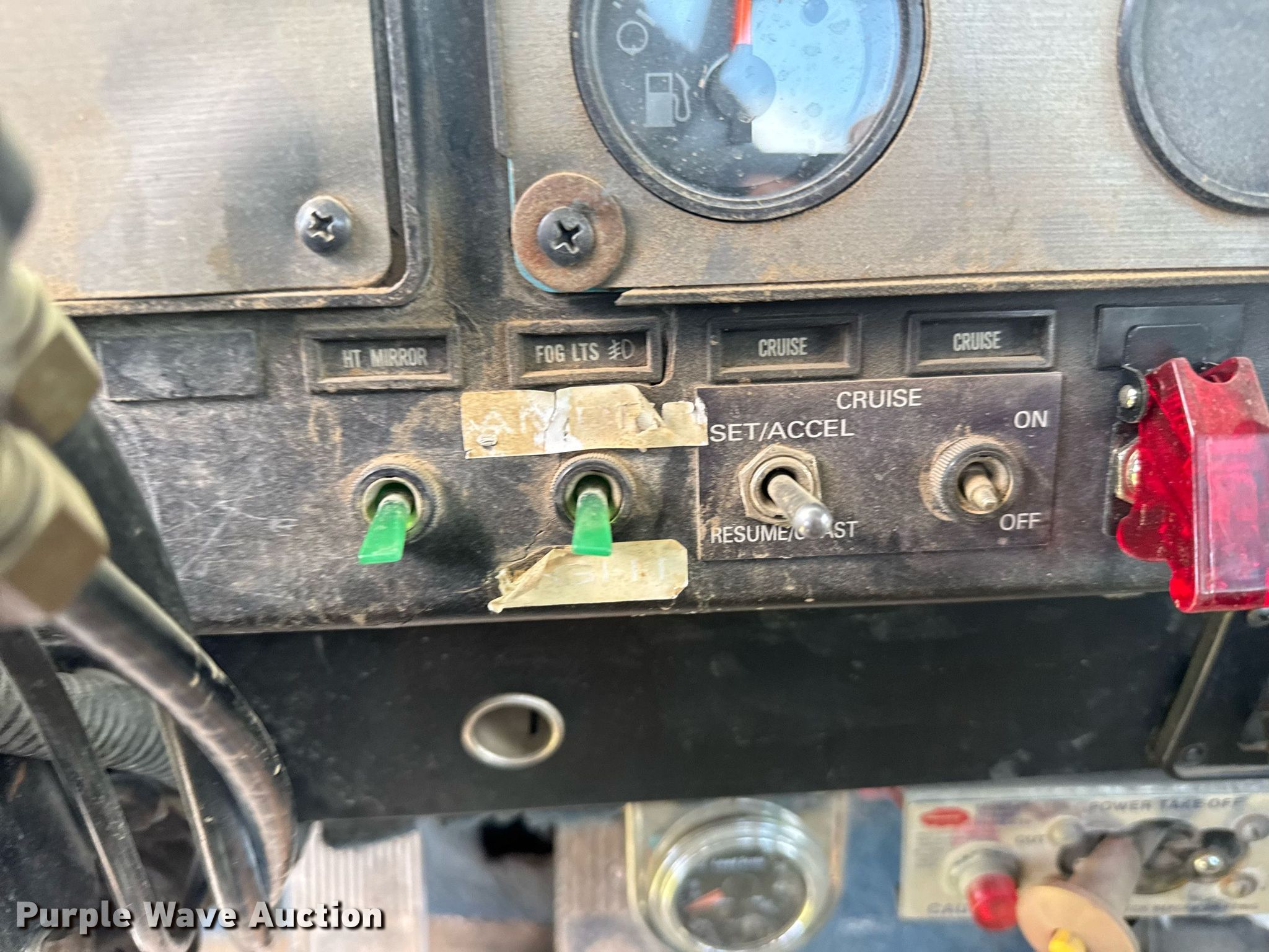 1993 International 9400 semi truck. Miles: 71,650 on odometer, Hours: 6,292 on meter, VIN: 2HSFHA7R3PC064248. Engine Cummins L10-330E, Serial: 34671353, Displacement: 10L, Cylinders: 6, Fuel type: Diesel. Transmission Manual, Speed: 9. Chassis Axles: Tandem, Differential lock: Inter-axle, Suspension: Air Dump valves, Brakes: Air, PTO, Wet kit, GVWR: 52,000 lbs FAWR: 12,000 lbs, IAWR: 20,000 lbs, RAWR: 20,000 lbs. Interior AC, Heat, Heated mirrors, Cruise control. Features Deck plate: Aluminum, Fifth wheel type: Fixed, Fuel tank: Dual. Tires Size: 11R22.5. Kansas title. Title distribution may be delayed up to 14 days from verification of funds. Barnard, KS 67418