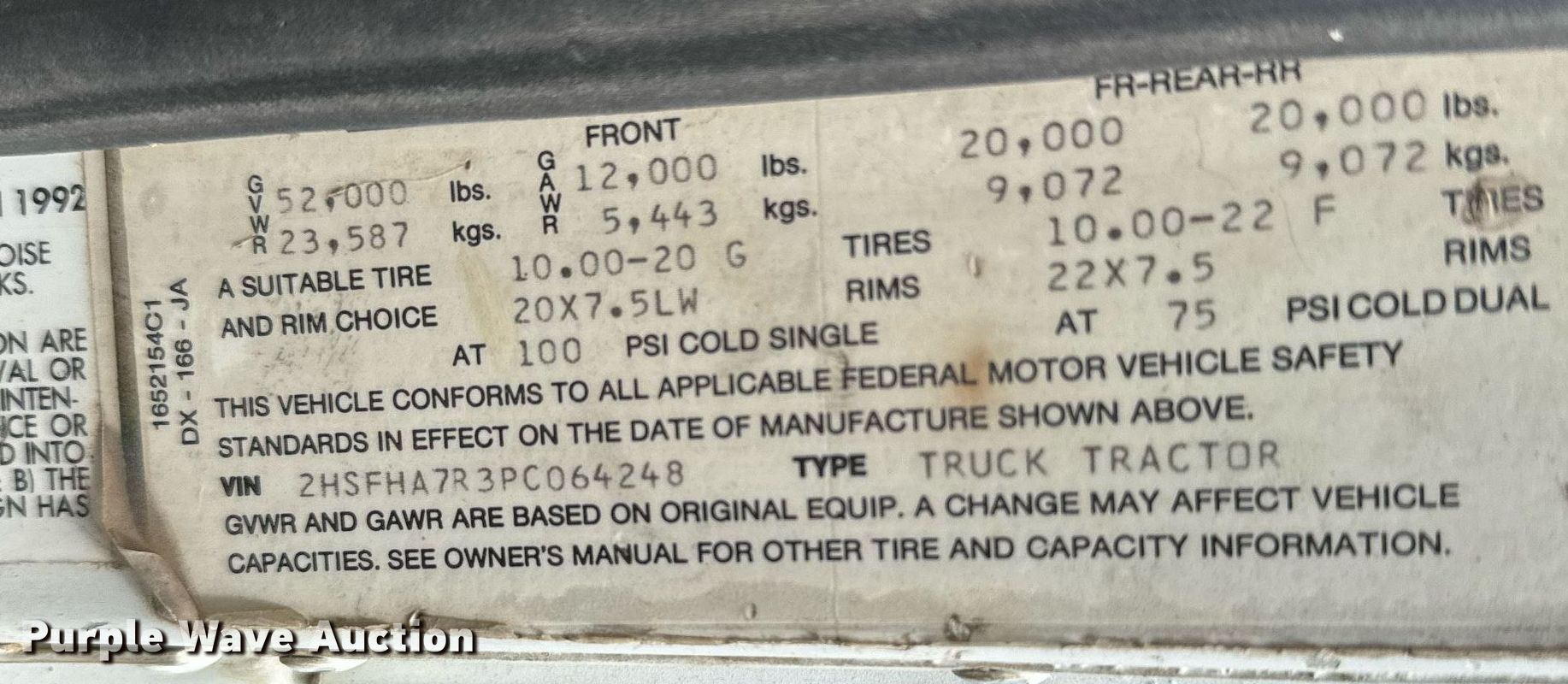 Purple Wave is selling a used Truck Tractor in Kansas. This item is a 1993 International 9400 semi truck with the following: Miles: 71,650 on odometer, Hours: 6,292 on meter, VIN: 2HSFHA7R3PC064248