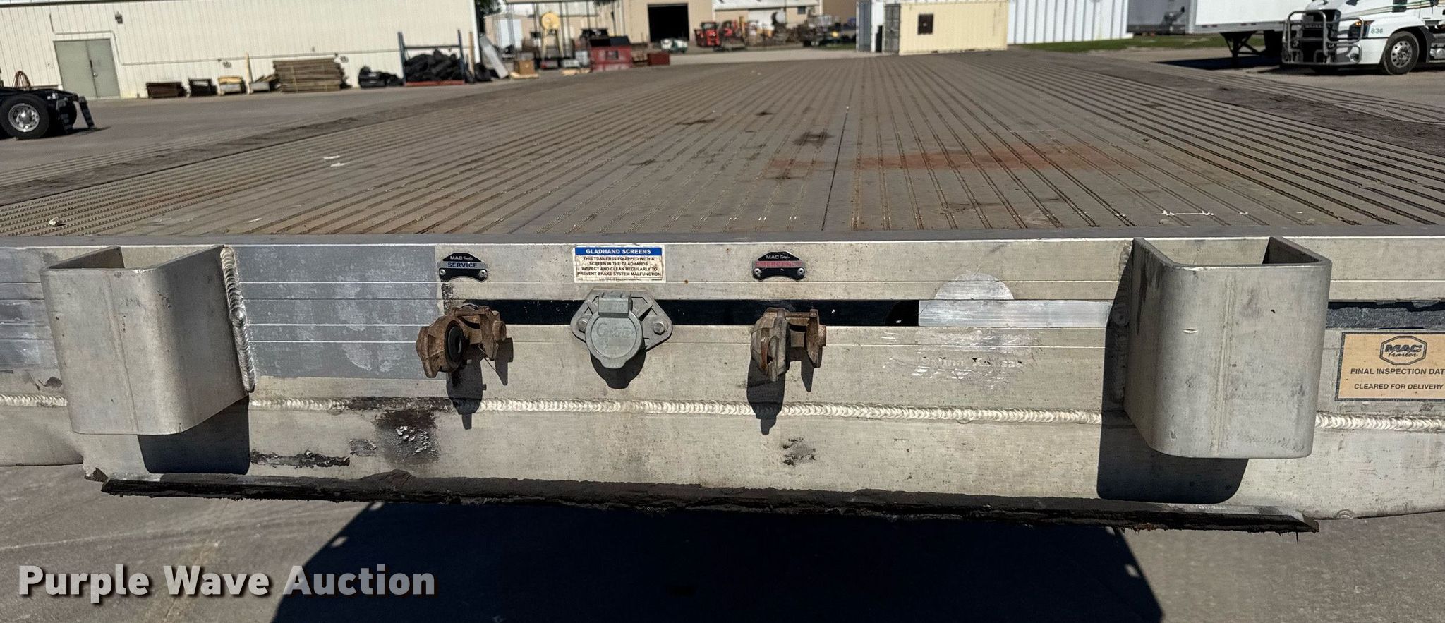 2014 Mac flatbed trailer. VIN: 5MAPA4822EA028157. Dimensions Overall: 48' L x 102" W, Deck: 48' L x 98" W. Features Deck type: Aluminum. Chassis Landing gear: Dual, Suspension: Air, Brakes: Air, Axles: Spread, GVWR: 80,000 lbs, GAWR: 23,000 lbs. Tires Steel wheels, Size: 295/75R22.5. Kansas title. Title distribution may be delayed up to 14 days from verification of funds. Great Plains Trucking Inc.. Salina, KS 67401