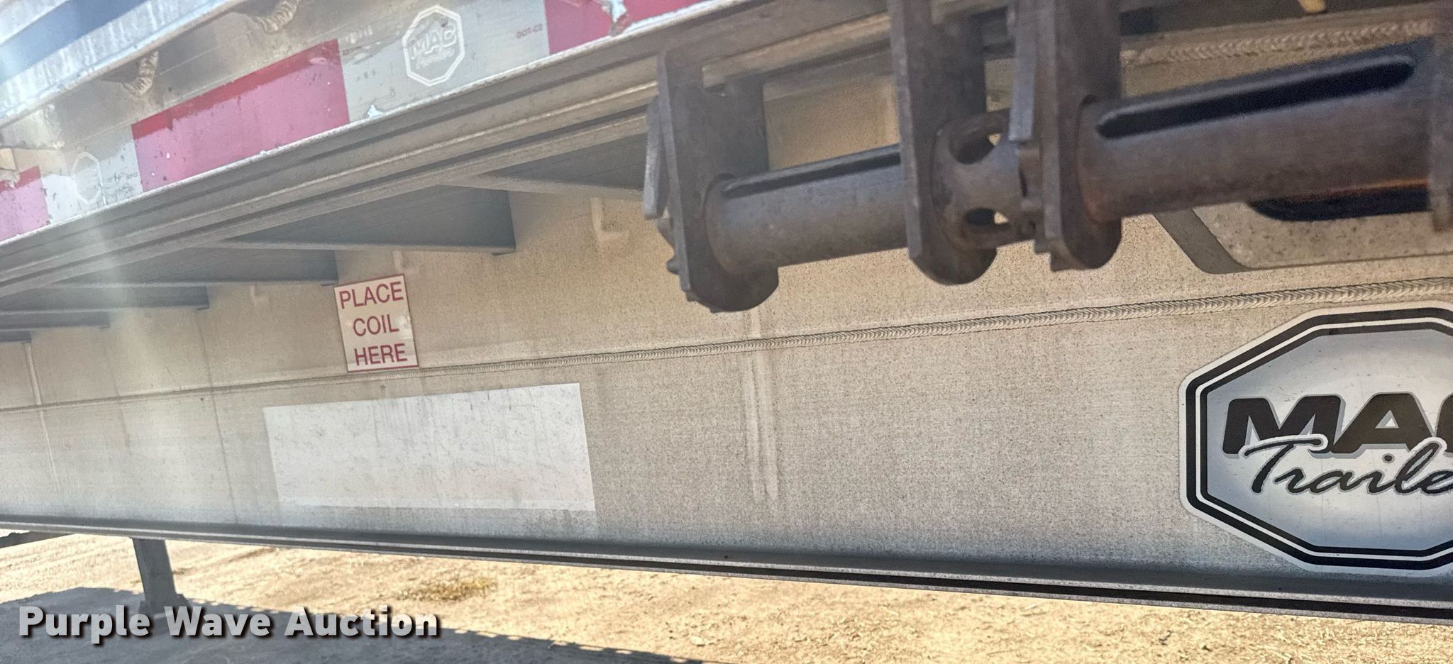 2014 Mac flatbed trailer. VIN: 5MAPA4821EA028151. Dimensions Overall: 48' L x 102" W, Deck: 48' L x 97" W. Features Deck type: Aluminum. Chassis Landing gear: Dual, Suspension: Air, Brakes: Air, Axles: Spread, GVWR: 80,000 lbs, GAWR: 23,000 lbs. Tires Steel wheels, Size: 295/75R22.5. Kansas title. Title distribution may be delayed up to 14 days from verification of funds. Great Plains Trucking Inc.. Salina, KS 67401