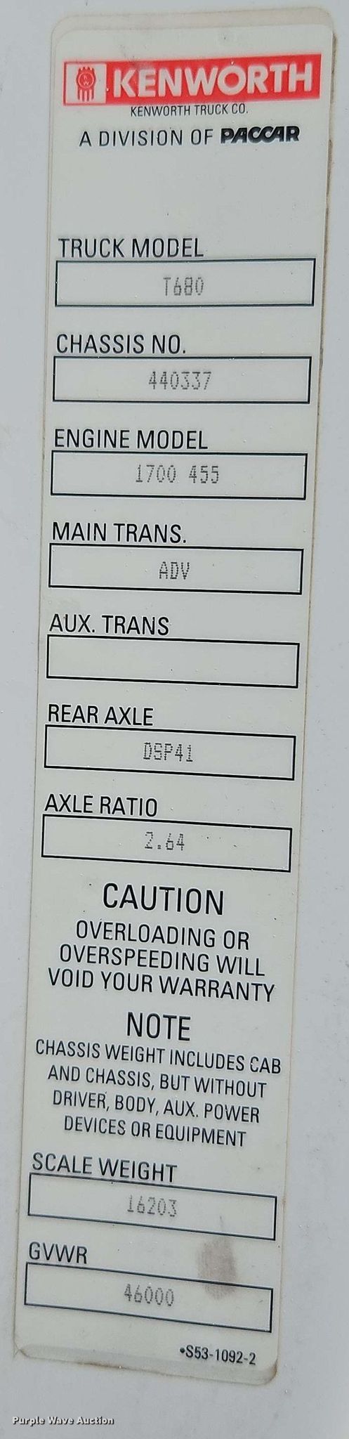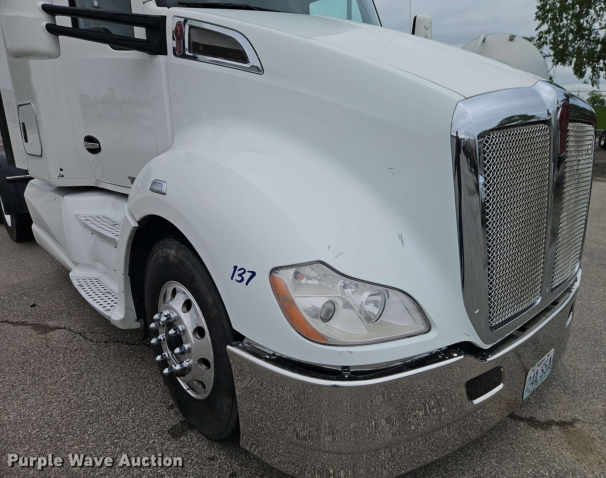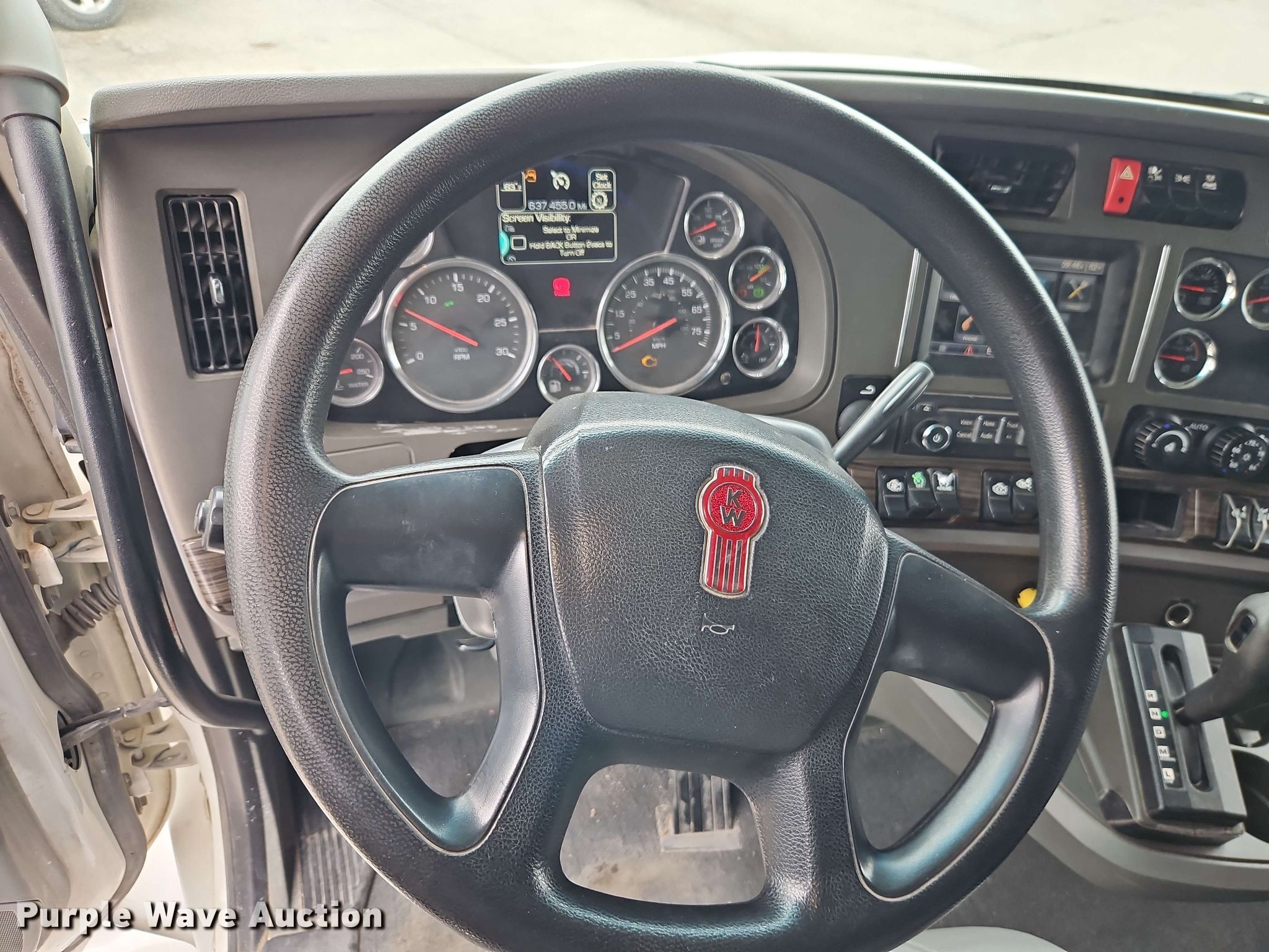 2015 Kenworth T680 semi truck. Miles: 637,455 on odometer, VIN: 1XKYDP8X7FJ440337, Unit #: 137. Engine Paccar MX-13, Displacement: 12.9L, Cylinders: 6, Fuel type: Diesel, Engine brake. Transmission Automatic. Chassis Axles: Tandem, Differential lock: Inter-axle, Suspension: Air Dump valves, Brakes: Air, PTO. Interior AC, Heat, Heated mirrors, Power windows, Power locks, Cruise control, Air ride cab, Sleeper Sleeper length: 36", Beds: Single, Rear climate control. Features Deck plate: Aluminum, Fifth wheel type: Air operated, Sliding, Fuel tank: Dual. Tires Front: 11R22.5, Rear: 445/50R22.5. Notes Dash warning indicator: Check engine. Missouri title. Title distribution may be delayed up to 14 days from verification of funds. Sutton Trucking, Inc. Lee's Summit, MO 64081
