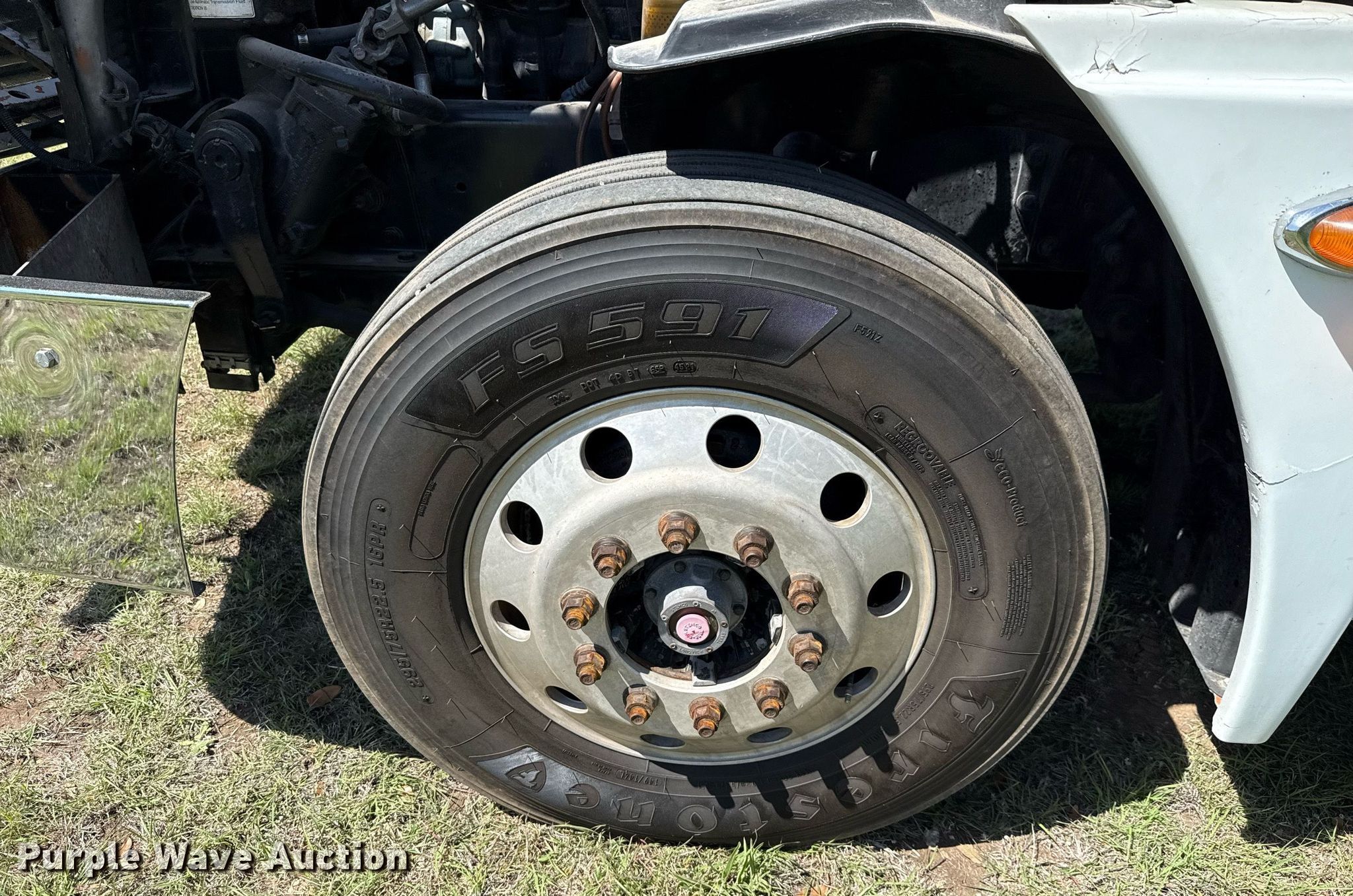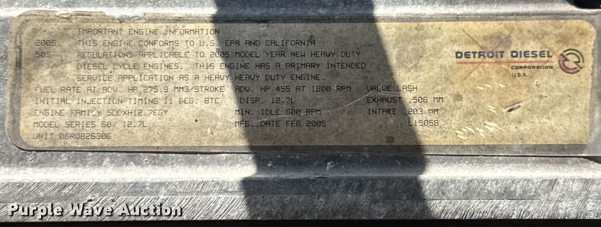 2005 Freightliner Century Class semi truck. Miles: 728,094 on odometer, VIN: 1FUJBBCG05LU38129, Unit #: PTRA020. Engine Detroit Diesel Series 60, Serial: 06R0826306, Displacement: 12.7L, Cylinders: 6, Fuel type: Diesel, Engine brake. Transmission Eaton Fuller, Manual, Speed: 10. Chassis Axles: Tandem, Differential lock: Inter-axle, Suspension: Air, Brakes: Air, PTO, Wet kit. Interior AC, Heat, Power windows, Cruise control, Air ride cab, Sleeper Sleeper length: 60", Beds: Double bunk, Rear climate control. Features Deck plate: Aluminum, Fifth wheel type: Air operated, Sliding, Fuel tank: Dual. Tires Size: 295/75R22.5. Notes Dash warning indicator: Check engine, Windshield chipped or cracked. Texas title. Title distribution may be delayed up to 30 days from verification of funds. Hellas Construction - Liberty Hills, TX. Liberty Hill, TX 78642