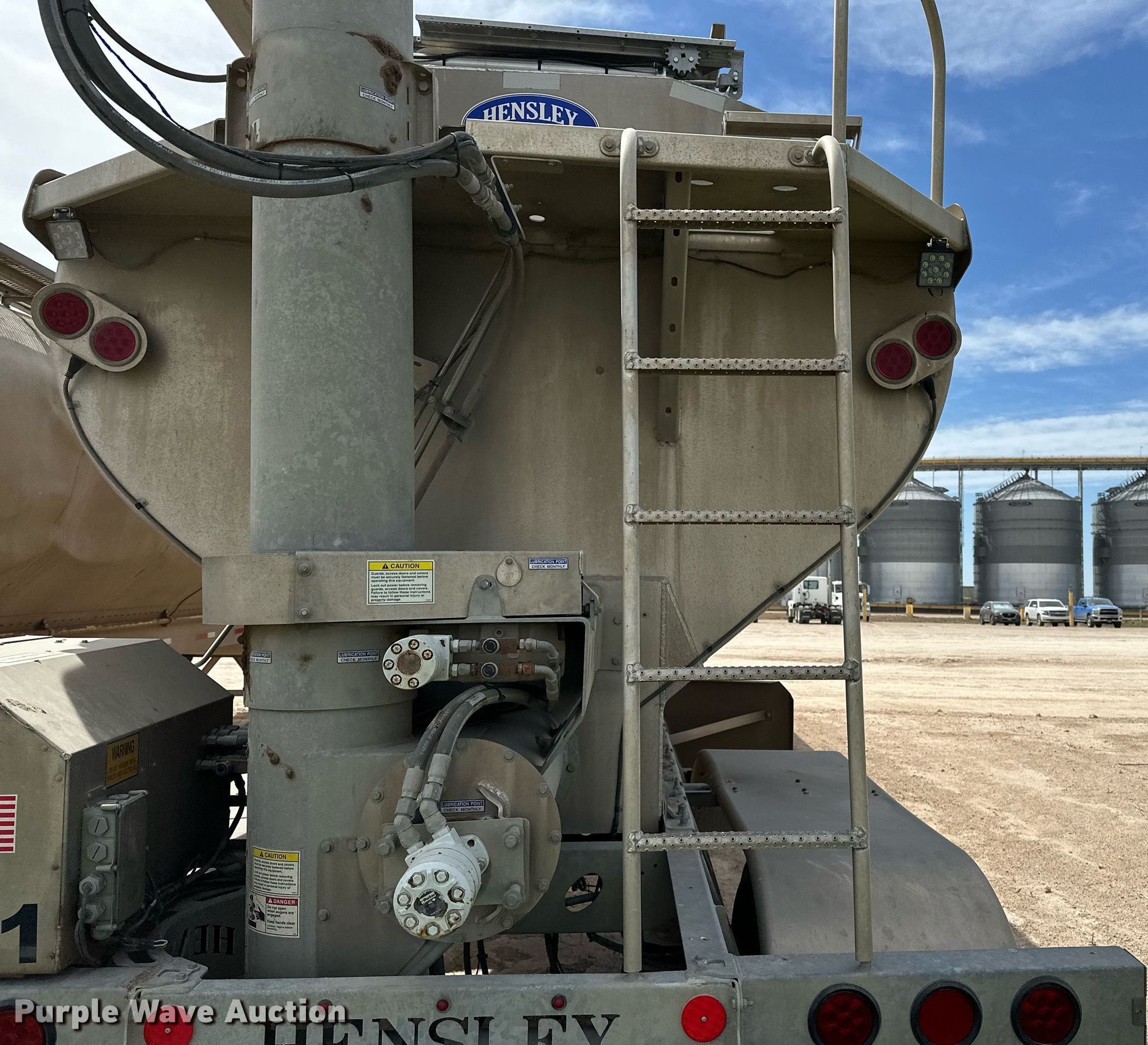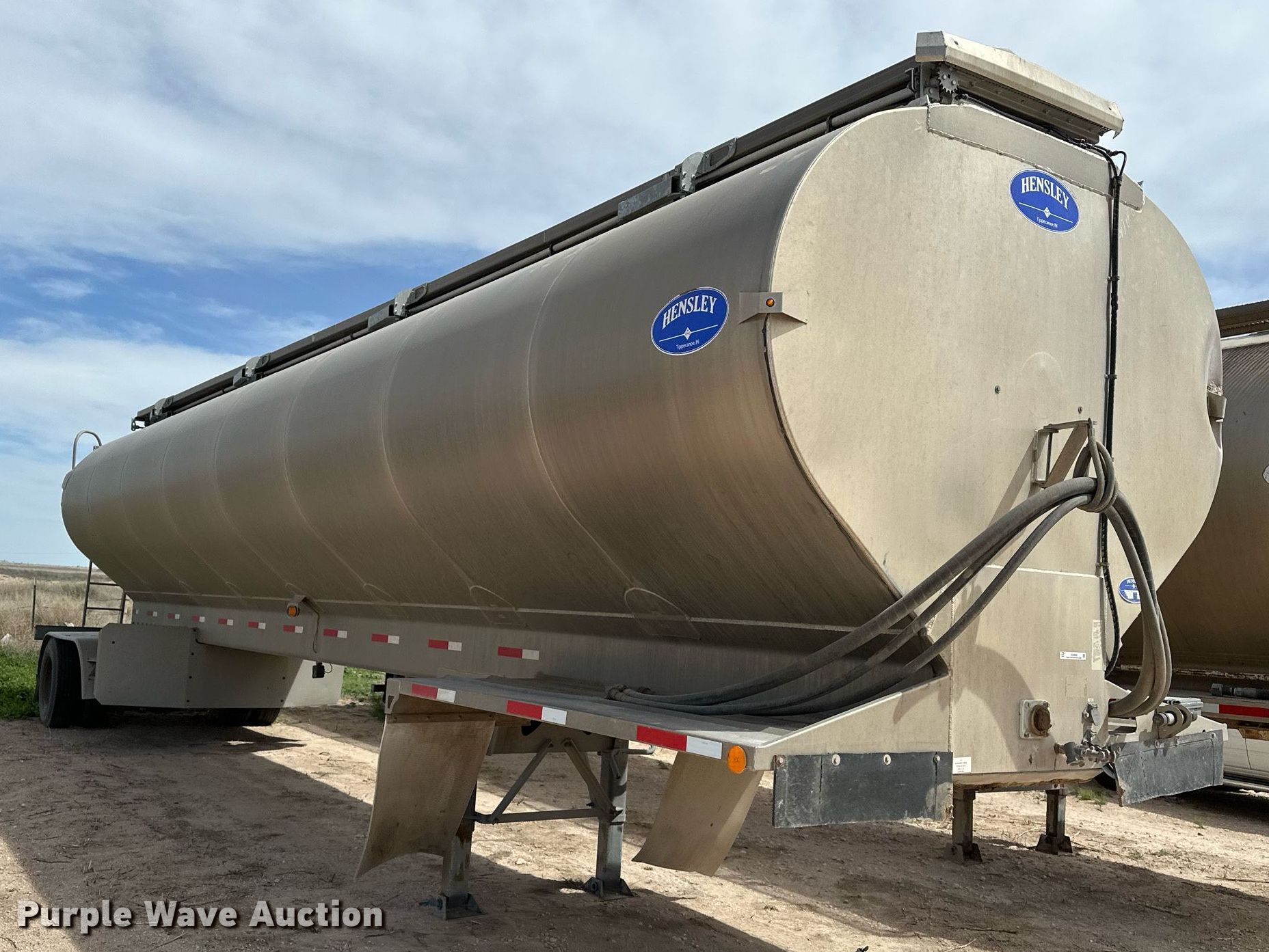 2021 Hensley ATLW-40-35-8 feed delivery trailer. VIN: 1H9BA4428MT289361. Dimensions Overall: 44' L x 102" W, Body length: 40'. Features Compartments: 8, Discharge auger Length: 28', Diameter: 10". Chassis Landing gear: Dual, Suspension: Air, Brakes: Air, Axles: Tandem, GVWR: 80,000 lbs, GAWR: 25,000 lbs. Tires Steel wheels, Size: 11R22.5. Notes Collision damage, Tank cracked, Axle missing, Unknown operating condition. Titles will be distributed after confirmation of payment and removal. Kansas title. Title distribution may be delayed up to 30 days from verification of funds. Seaboard Foods. Optima, OK 73945