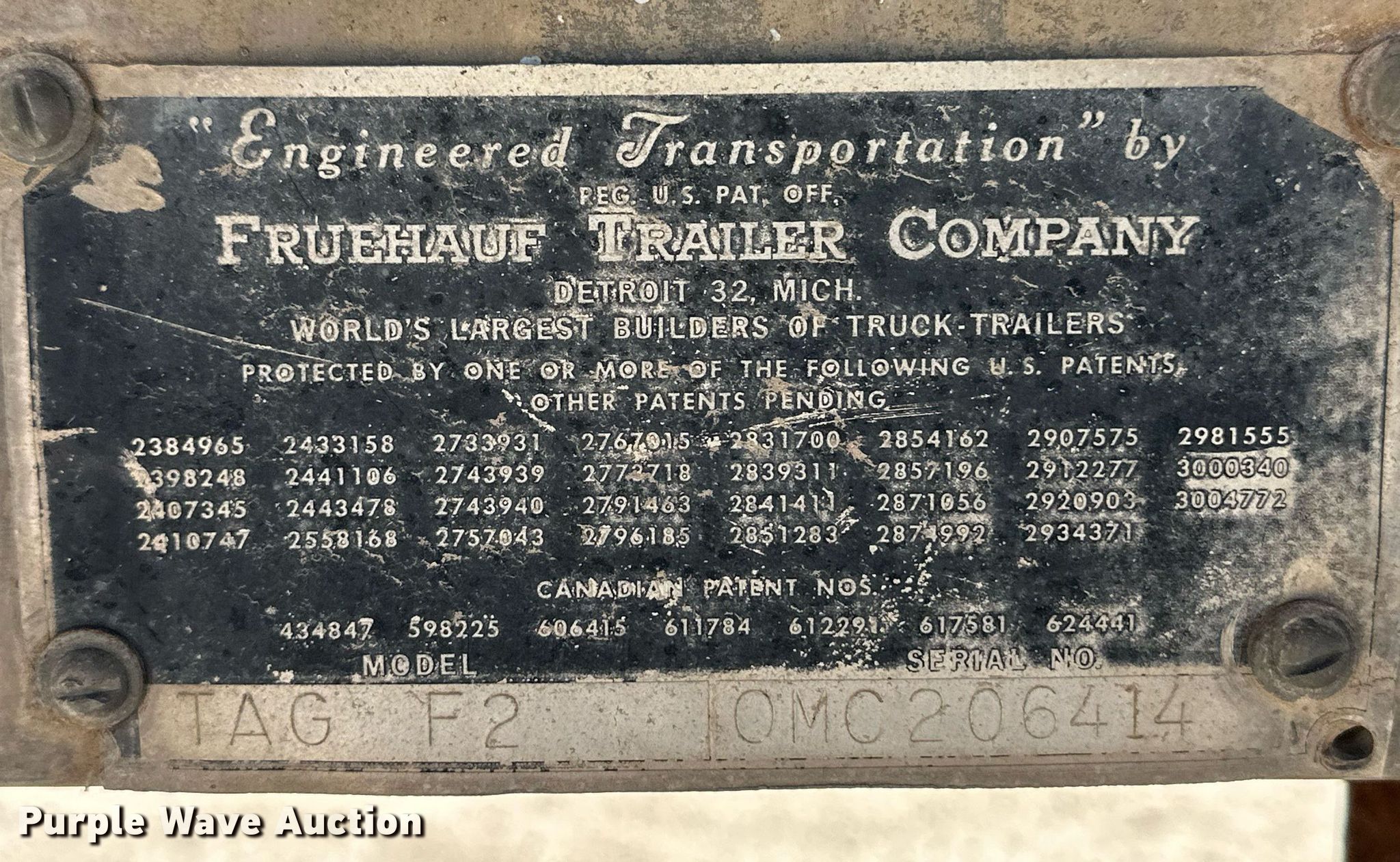 Purple Wave is selling a used Tank Trailer in Oklahoma. This item is a 1963 Fruehauf F2 tank trailer with the following: VIN: 0MC206414