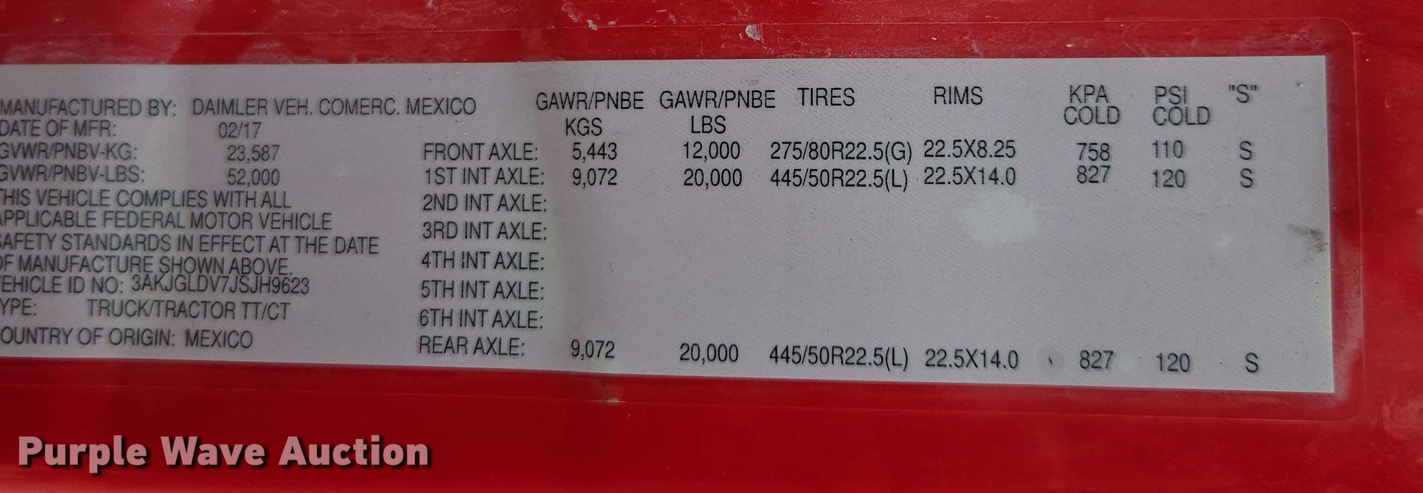 Purple Wave is selling a used Truck Tractor in Tennessee. This item is a 2018 Freightliner Cascadia125 semi truck with the following: Miles: 775,991 on odometer, VIN: 3AKJGLDV7JSJH9623