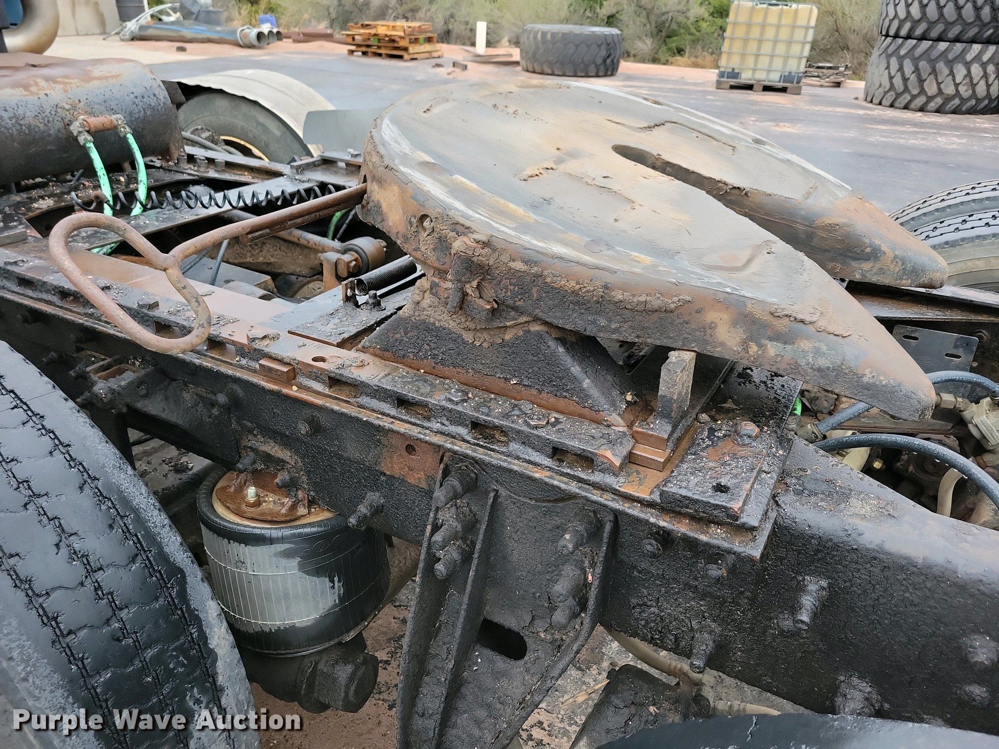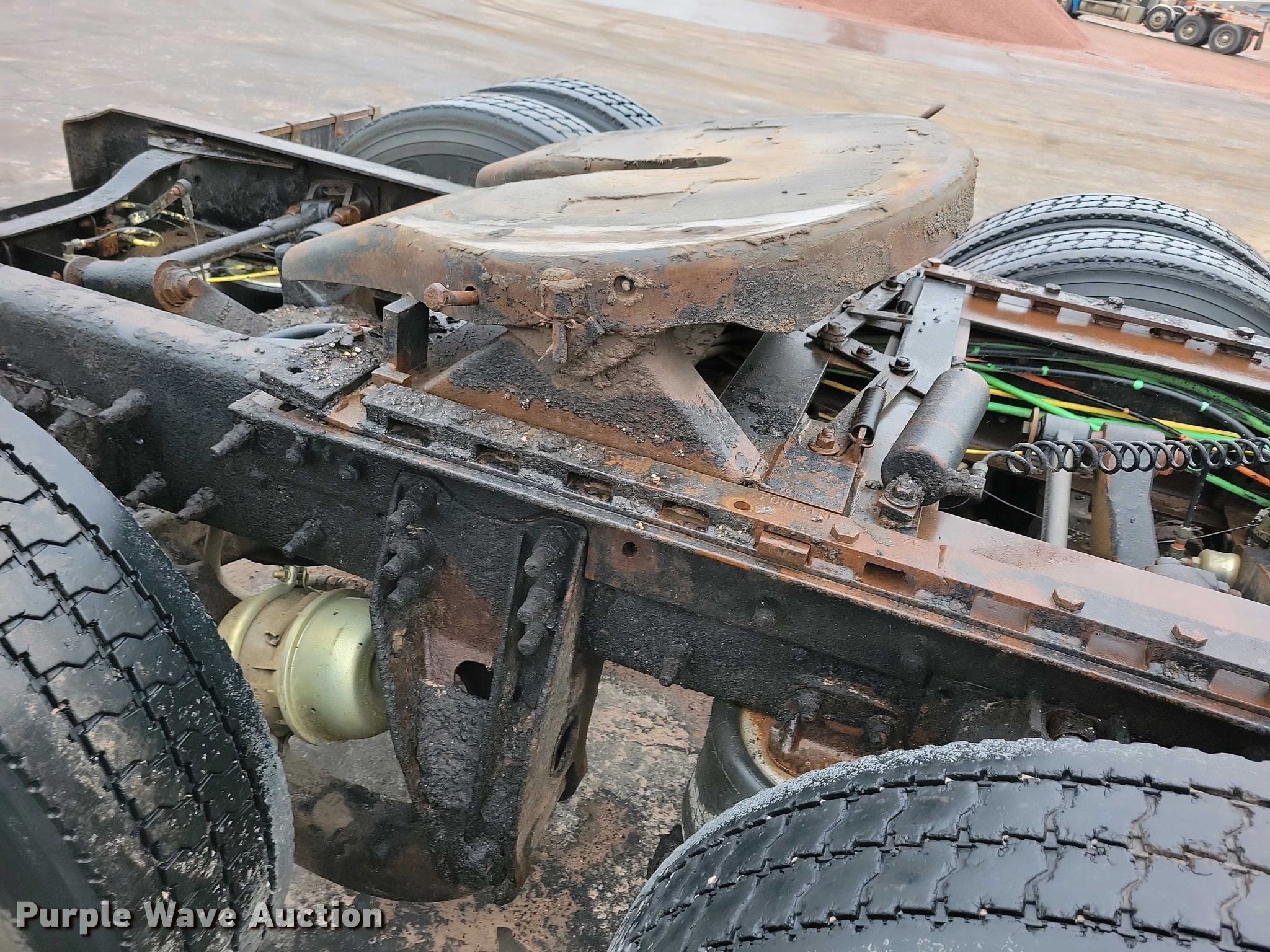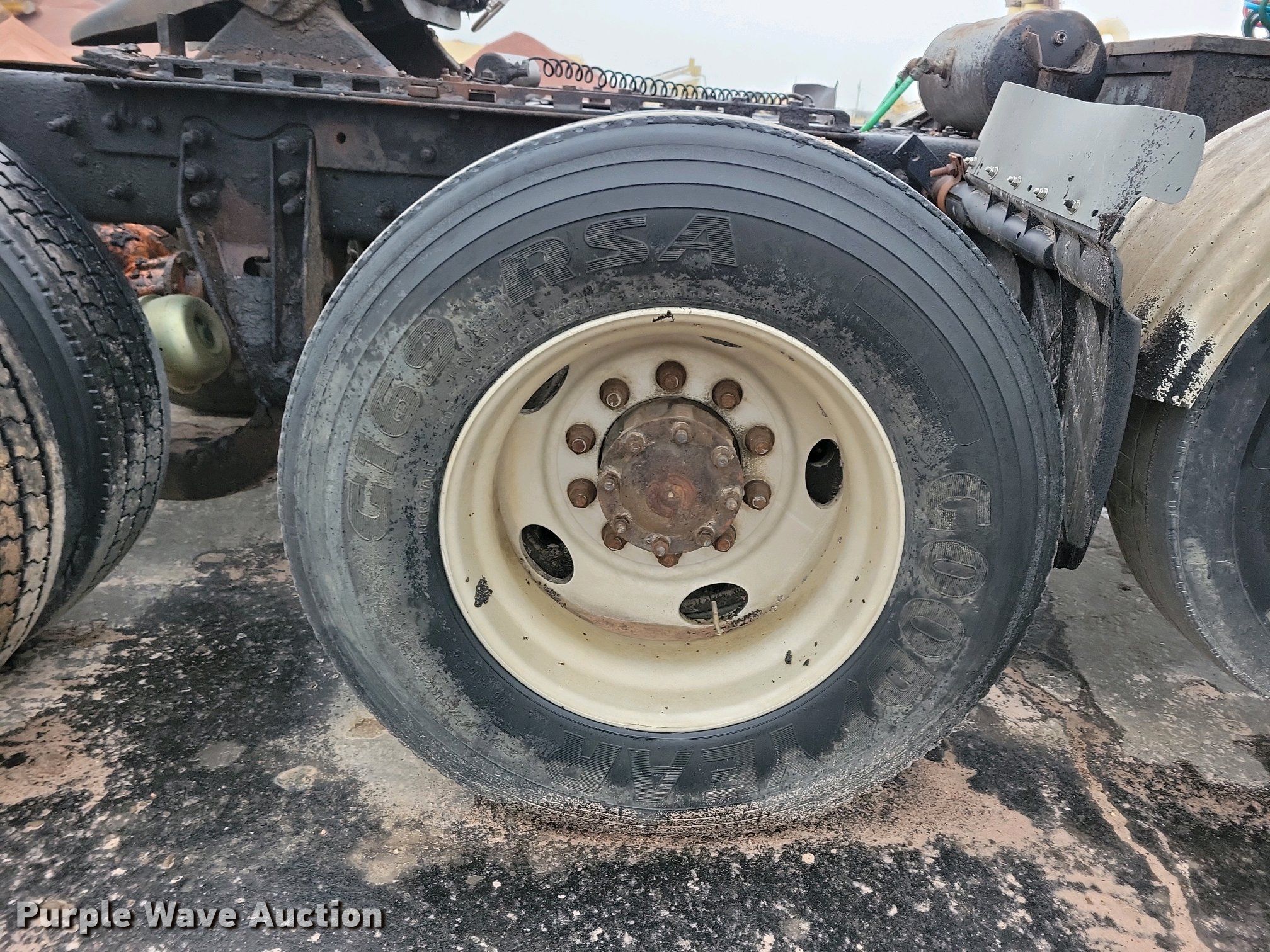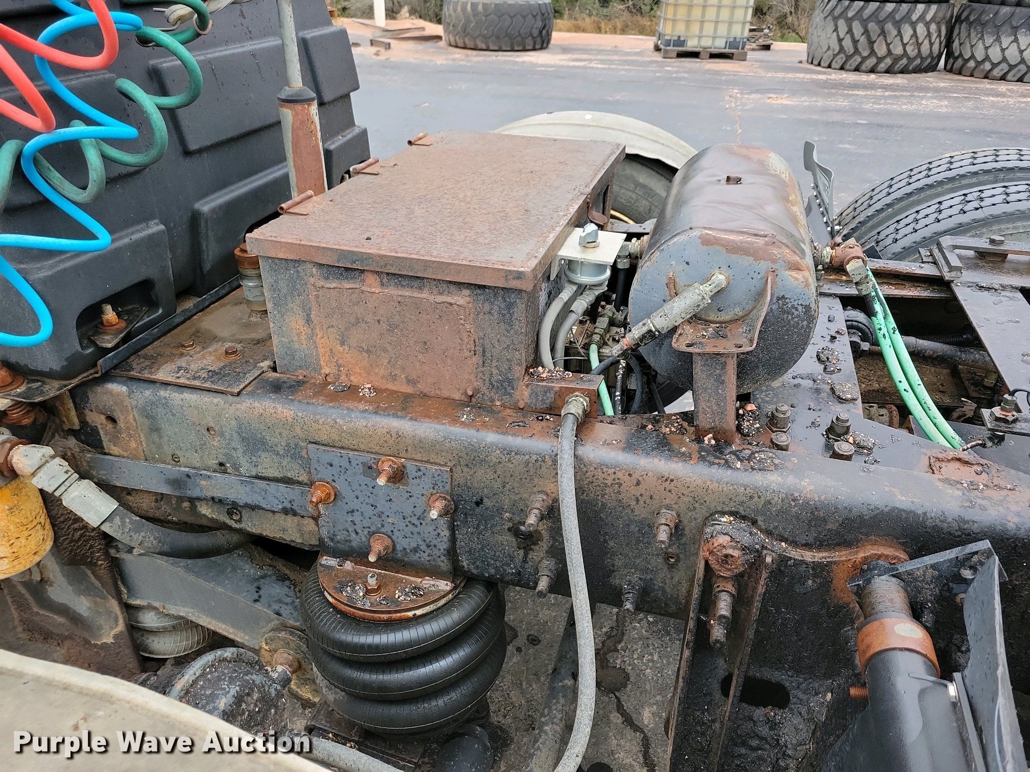 1998 Ford AT9522 semi truck. Miles: 919,561 on odometer, VIN: 1FTYA96YXWVA40194. Engine Cummins N14 Celect Plus, Displacement: 14.0L, Cylinders: 6, Fuel type: Diesel, HP: 460. Transmission Eaton Fuller, Manual, Speed: 13. Chassis Axles: Triple, Pusher axle Steerable, Differential lock: Inter-axle, Suspension: Air Dump valves, Brakes: Air, PTO, Wet kit, GVWR: 52,000 lbs FAWR: 12,000 lbs, IAWR: 20,000 lbs, RAWR: 20,000 lbs, Wheelbase: 190". Interior AC, Heat, Heated mirrors, Power windows, Cruise control, Air ride cab. Features Fifth wheel type: Air operated, Sliding, Fuel tank: Dual. Tires Size: 295/75R22.5, Lift axle: 255/70R22.5. Notes Dead battery. South Dakota title. Commercial Asphalt. 25554 413th Avenue. Mitchell, SD 57301
