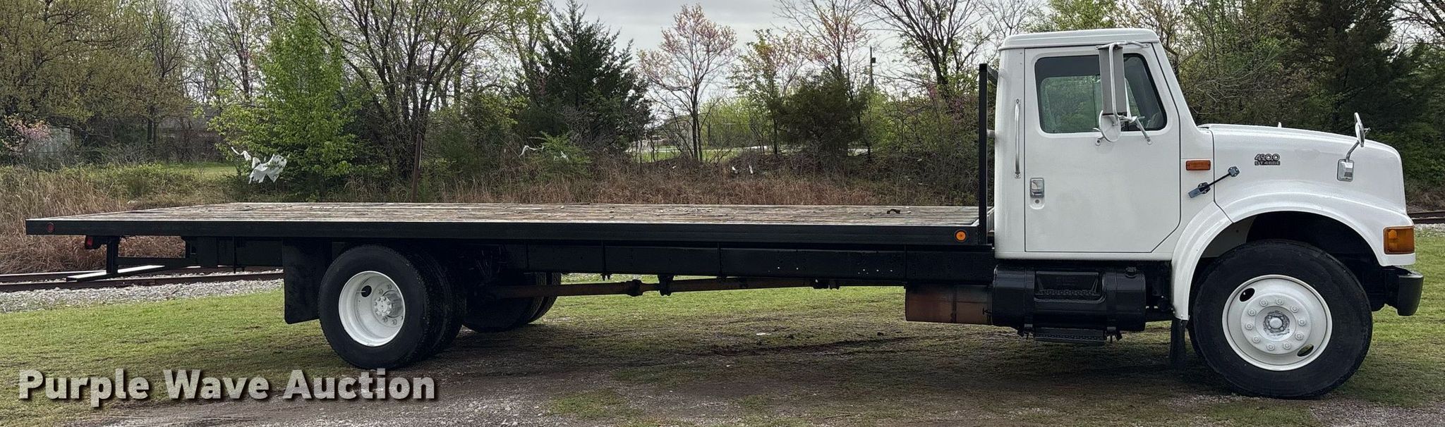 This 1993 International 4700 flatbed truck will sell to the highest bidder regardless of price.