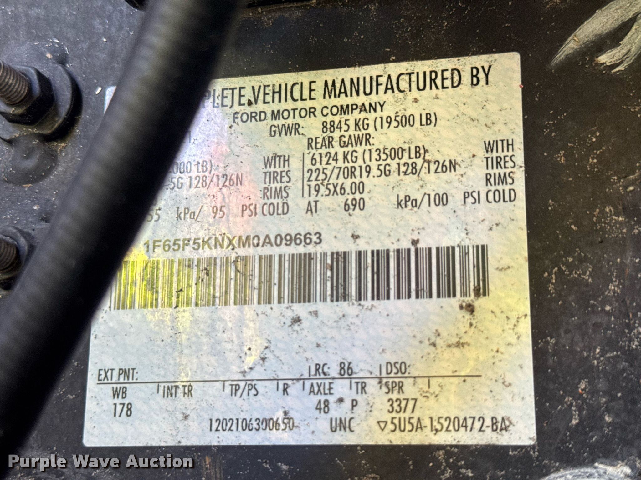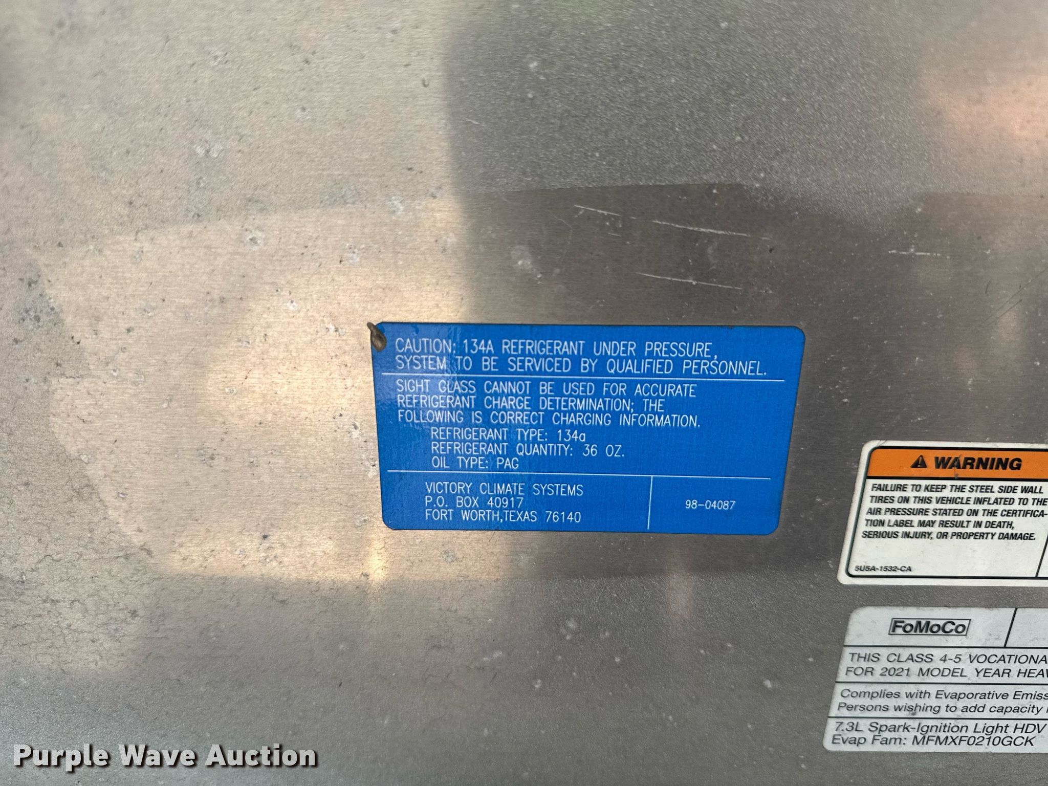 2021 Ford delivery truck. Miles: 80,746 on odometer, VIN: 1F65F5KNXM0A09663, Unit #: 43050605. Engine Displacement: 7.3L, Cylinders: 8, Fuel type: Gas. Transmission Automatic. Chassis Axles: Single, Suspension: Spring, Brakes: Hydraulic, GVWR: 19,500 lbs. Interior AC, Heat, Cruise control. Features Box bed 18' L x 96" W x 87" H, Floor: Aluminum. Tires Size: 225/70R19.5. Notes Dash warning indicator: Check engine, ABS, Dead battery, Possible transmission issues, will not shift out of park Unit must be towed or hauled. Repossessed item, stored at a secured facility. Please review REQUIRED REMOVAL INSTRUCTIONS. Lender owned. Item condition and history are unknown. No additional information is available. Titles will be distributed after confirmation of payment and removal. Indiana title. Title distribution may be delayed up to 30 days from verification of funds. Lender Owned. Jacksonville, FL 32218