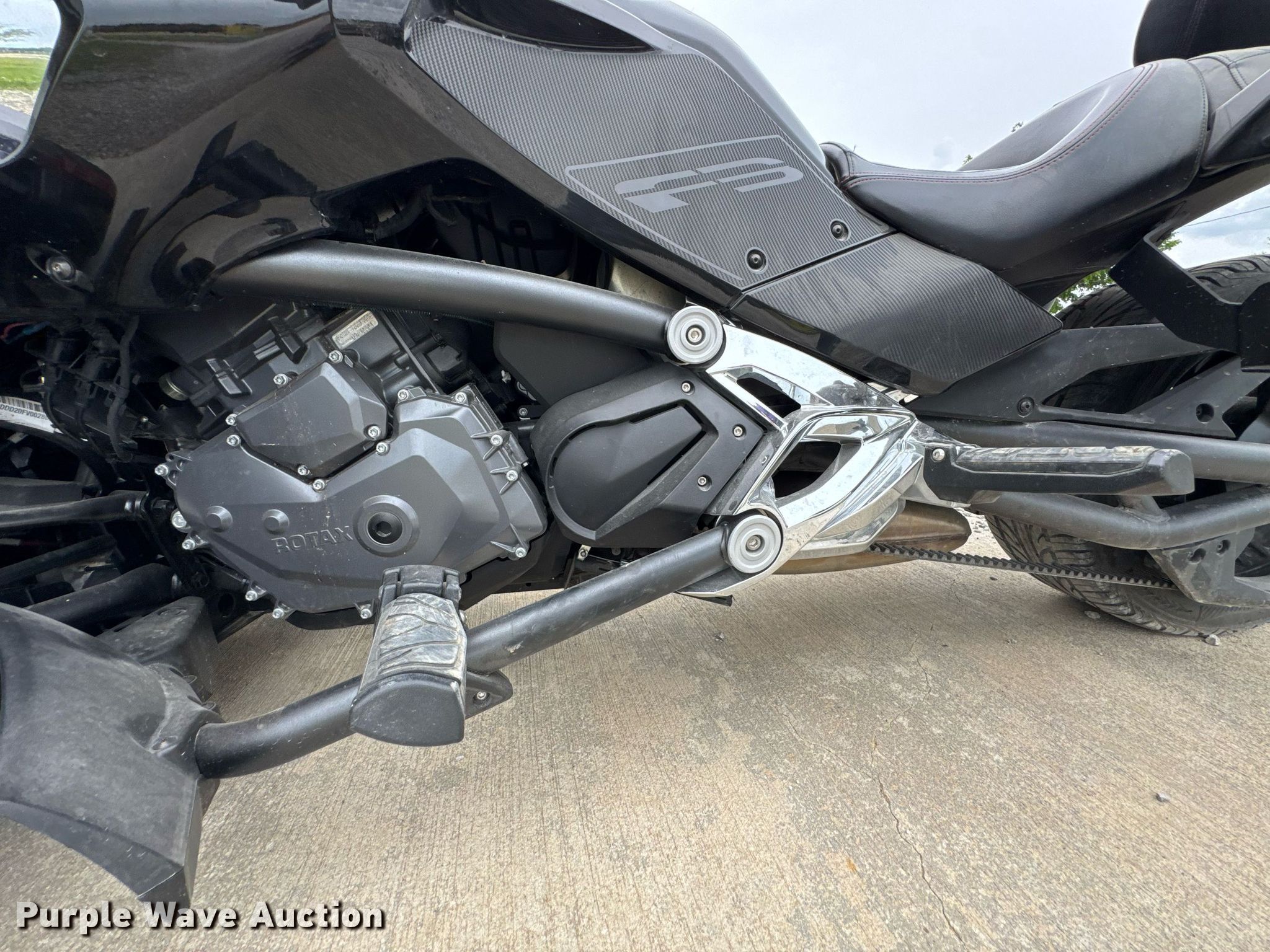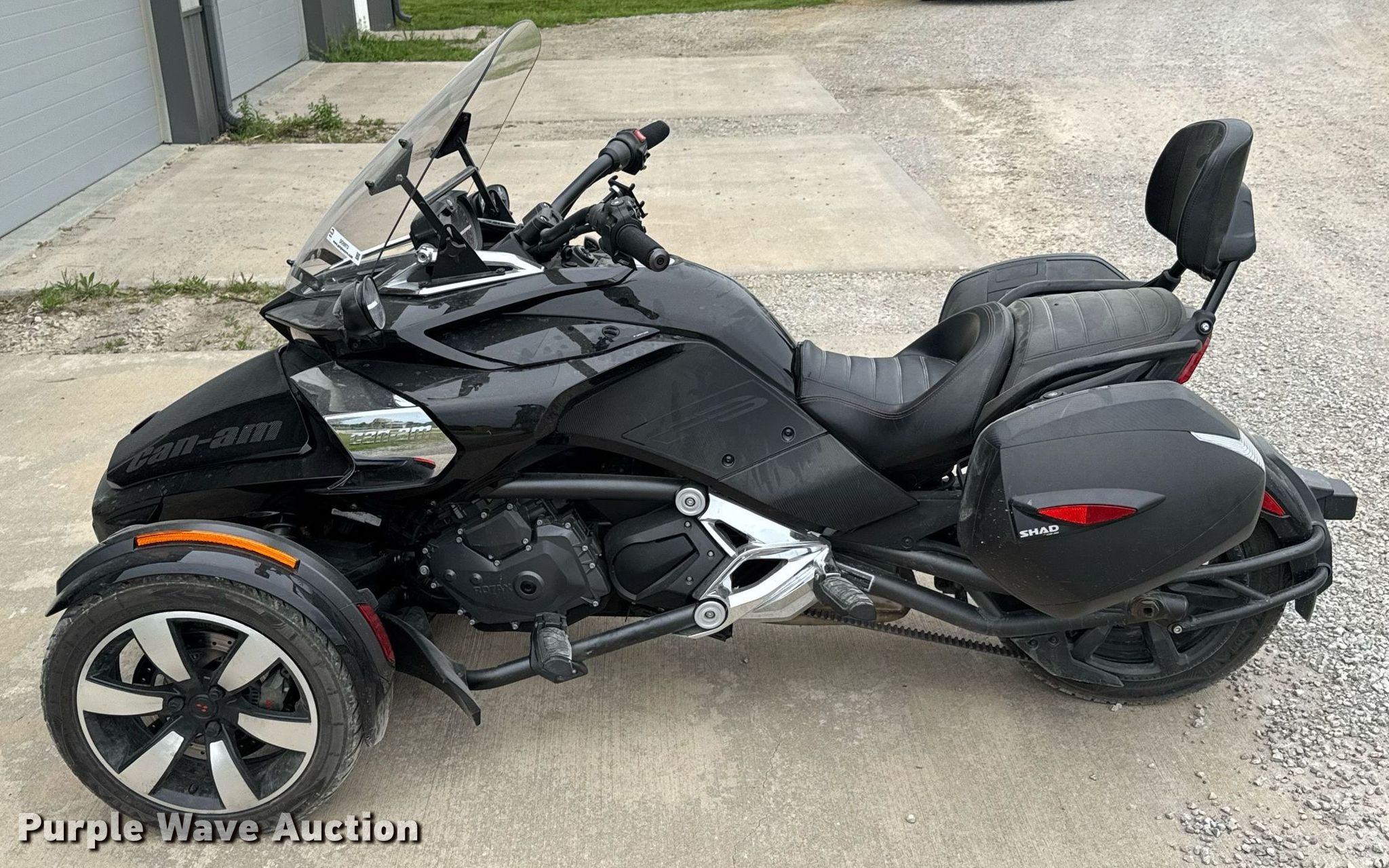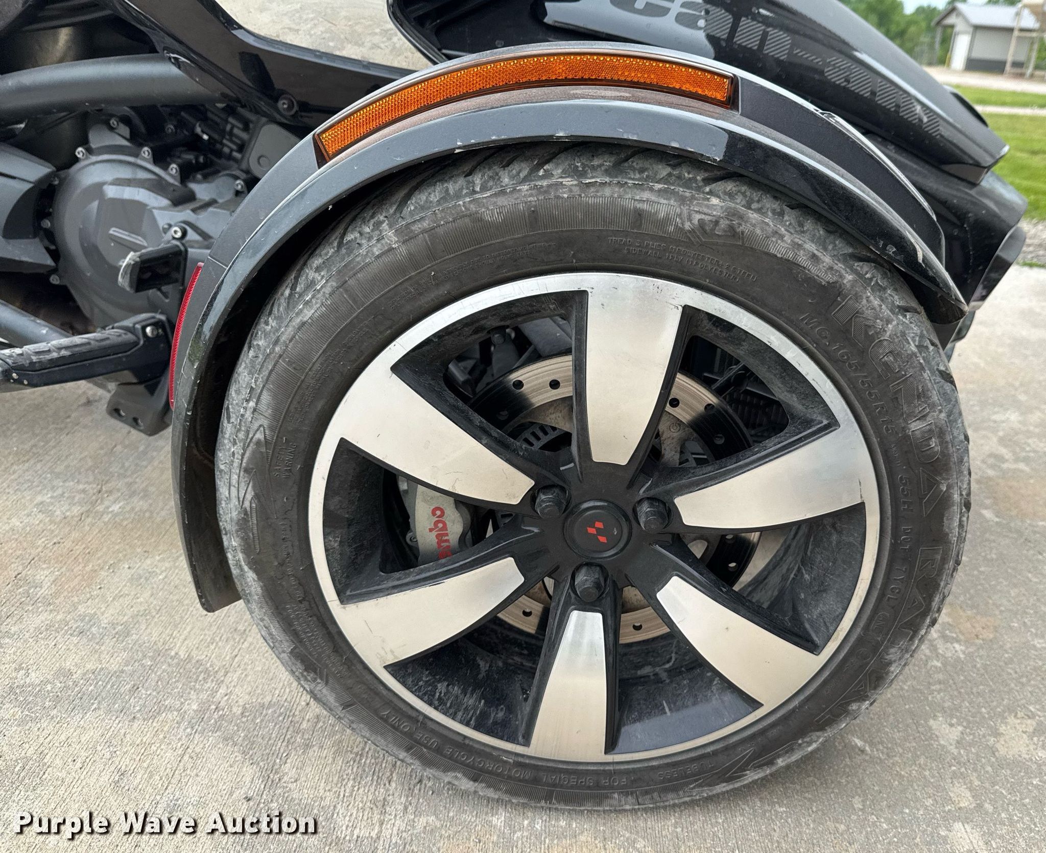 2015 Can-Am Spyder F3 SE6 motorcycle. Miles: 10,313 on odometer, VIN: 2BXRDDD20FV002867. Engine Can-Am Rotax 1330 ACE, Displacement: 1330 cc, Cylinders: 3, Fuel type: Gas. Transmission Manual, Speed: 6. Features Saddle bags, Cruise control. Tires Front: 165/55R15, Rear: 225/50R15. Kansas title. Title distribution may be delayed up to 30 days from verification of funds. Hutto Grain and Livestock Inc. Galena, KS 66739