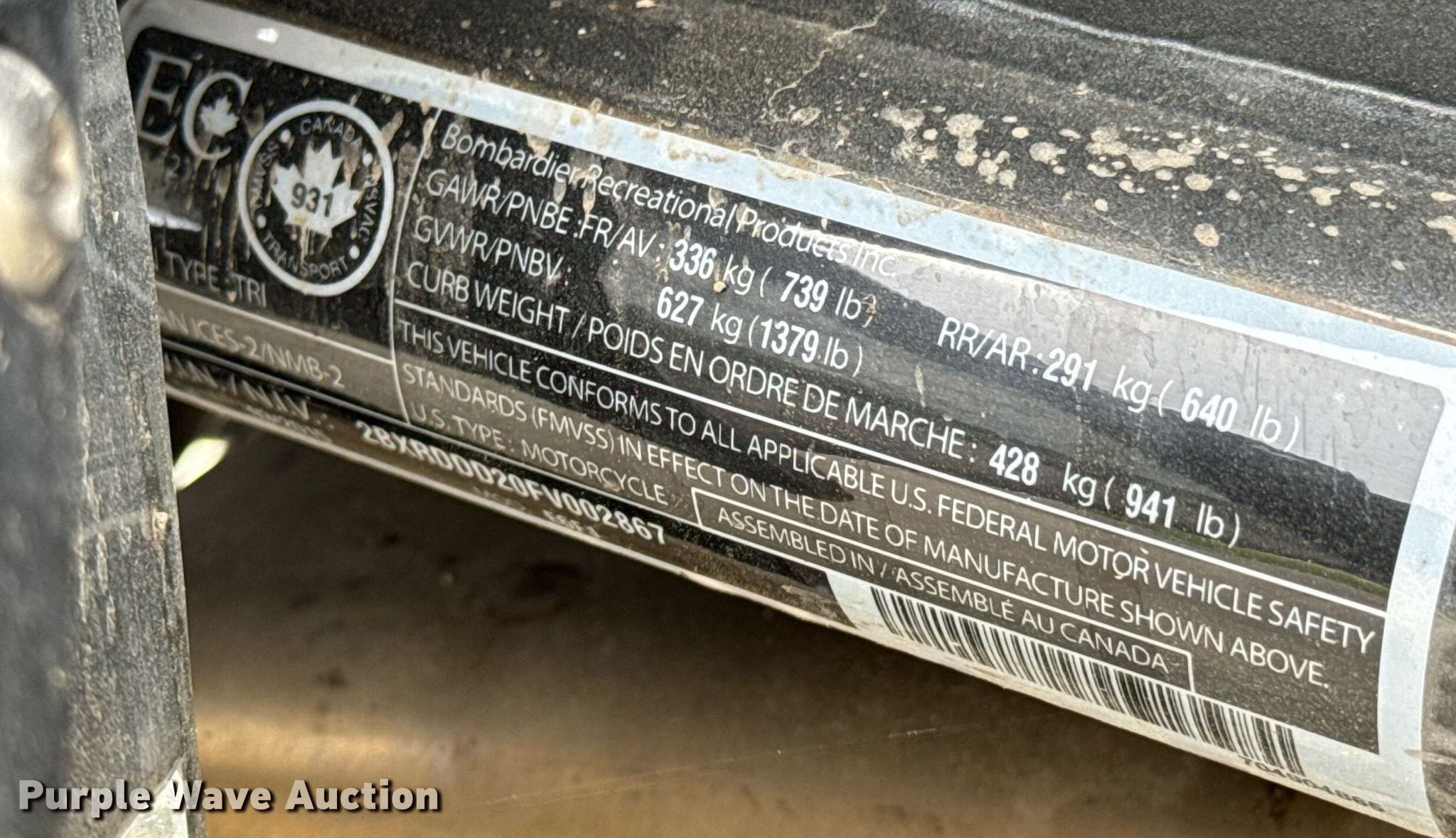 Purple Wave is selling a used Motorcycle in Kansas. This item is a 2015 Can-Am Spyder F3 SE6 motorcycle with the following: Miles: 10,313 on odometer, VIN: 2BXRDDD20FV002867