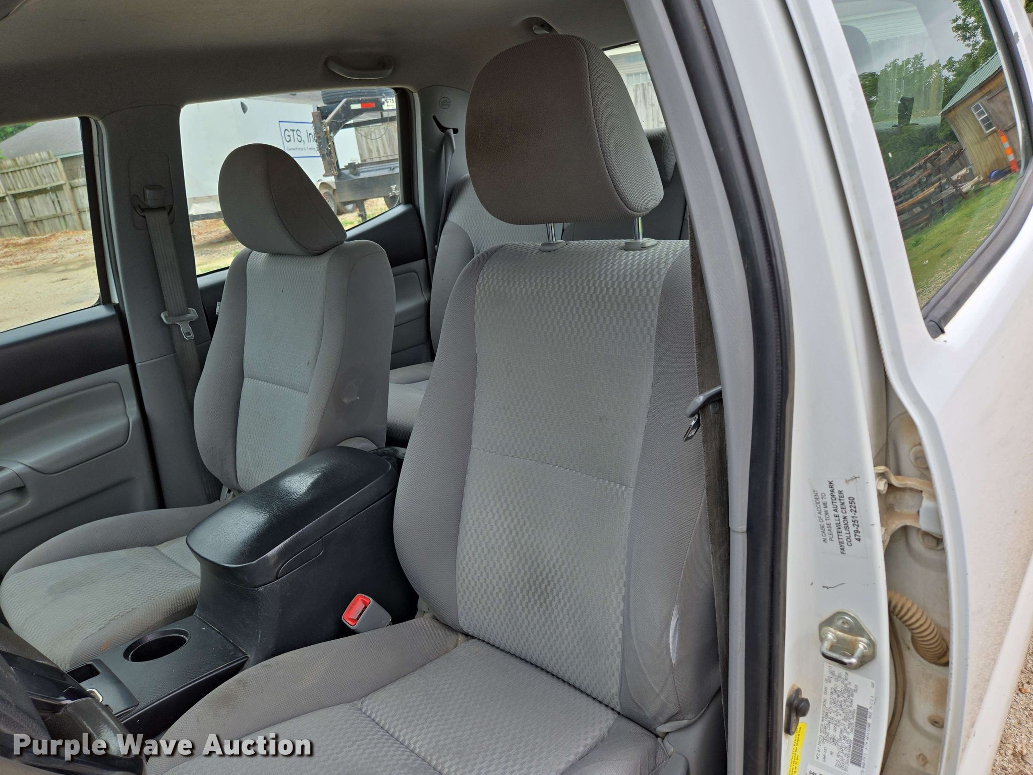 2014 Toyota Tacoma Double Cab pickup truck. Miles: 252,937 on odometer, VIN: 5TFJX4CN5EX040460. Engine Displacement: 2.7L L4 DOHC, Cylinders: 4, Fuel type: Gas. Transmission Automatic. Interior AC, Heat, Power windows, Power locks. Tires Size: LT215/75R15. Notes Contents not included, Windshield chipped or cracked, Passenger side taillight damaged. Arkansas title. Title distribution may be delayed up to 30 days from verification of funds. GTS, Inc.. Fayetteville, AR 72704