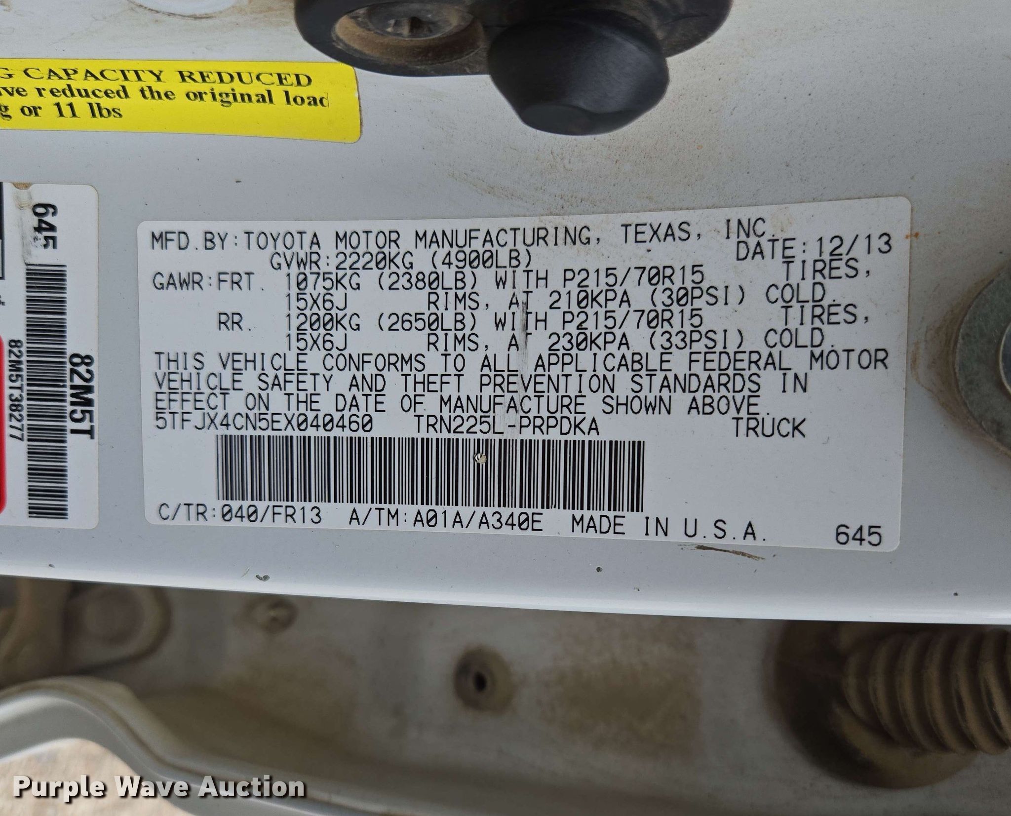 - VIN: 5TFJX4CN5EX040460