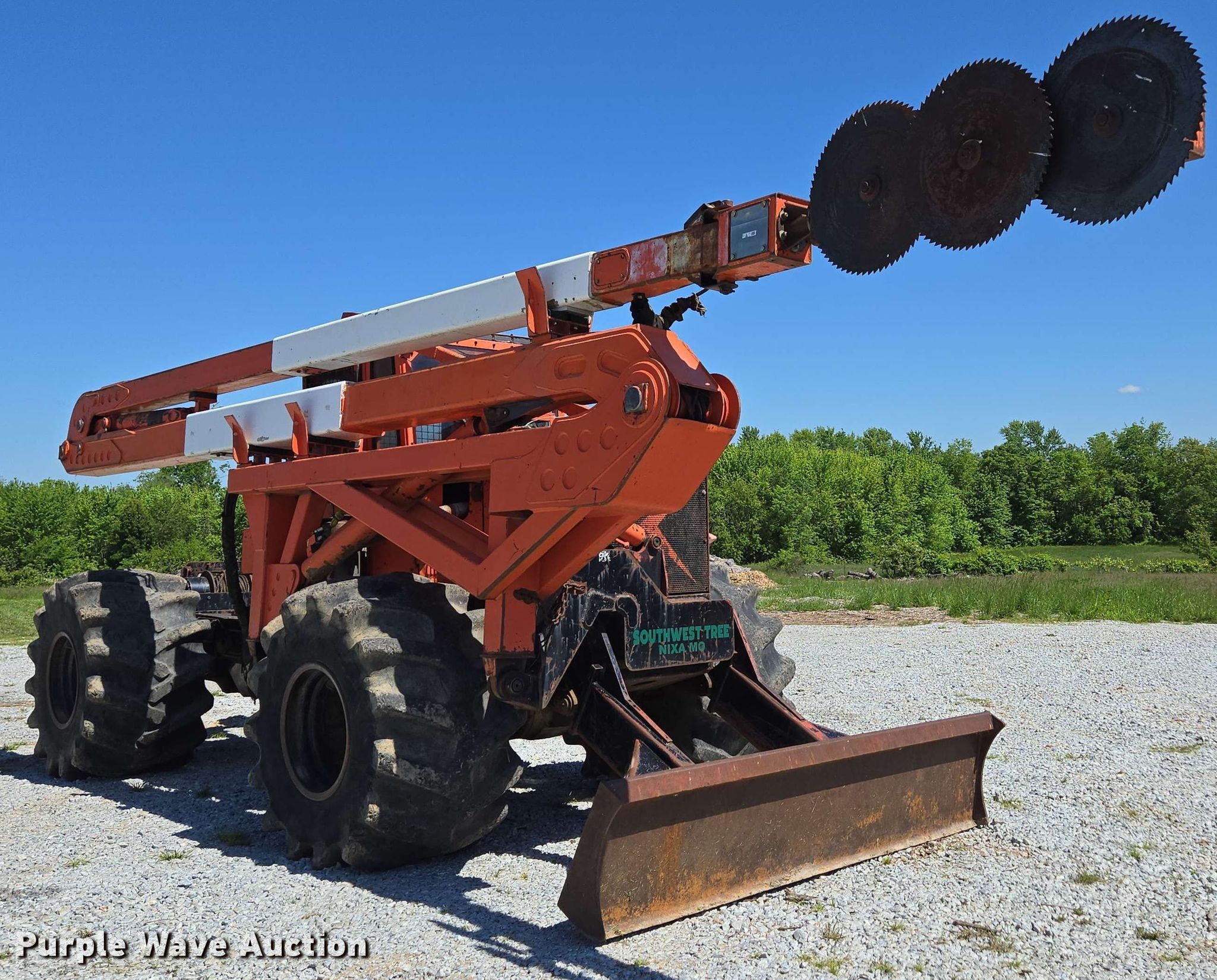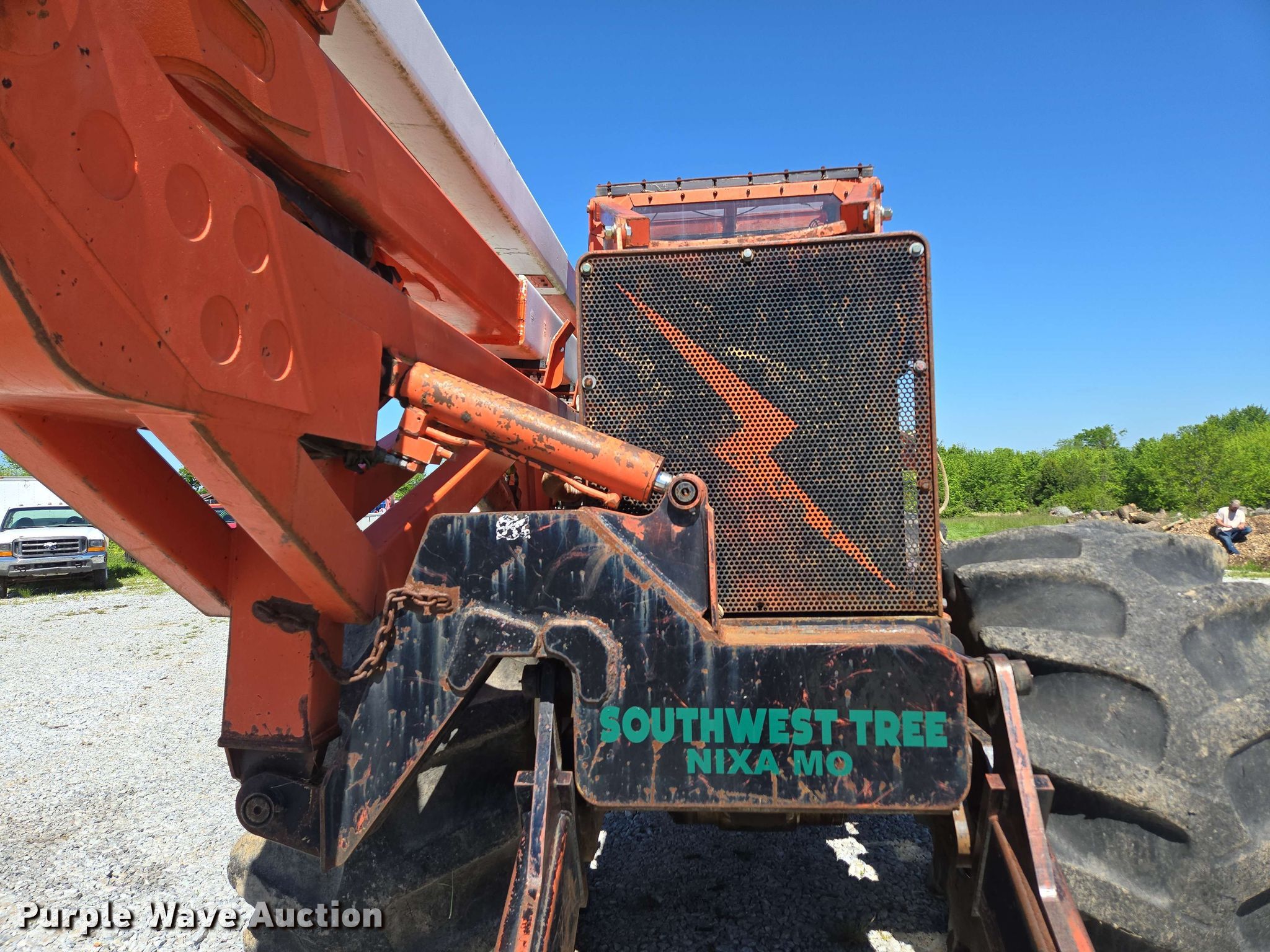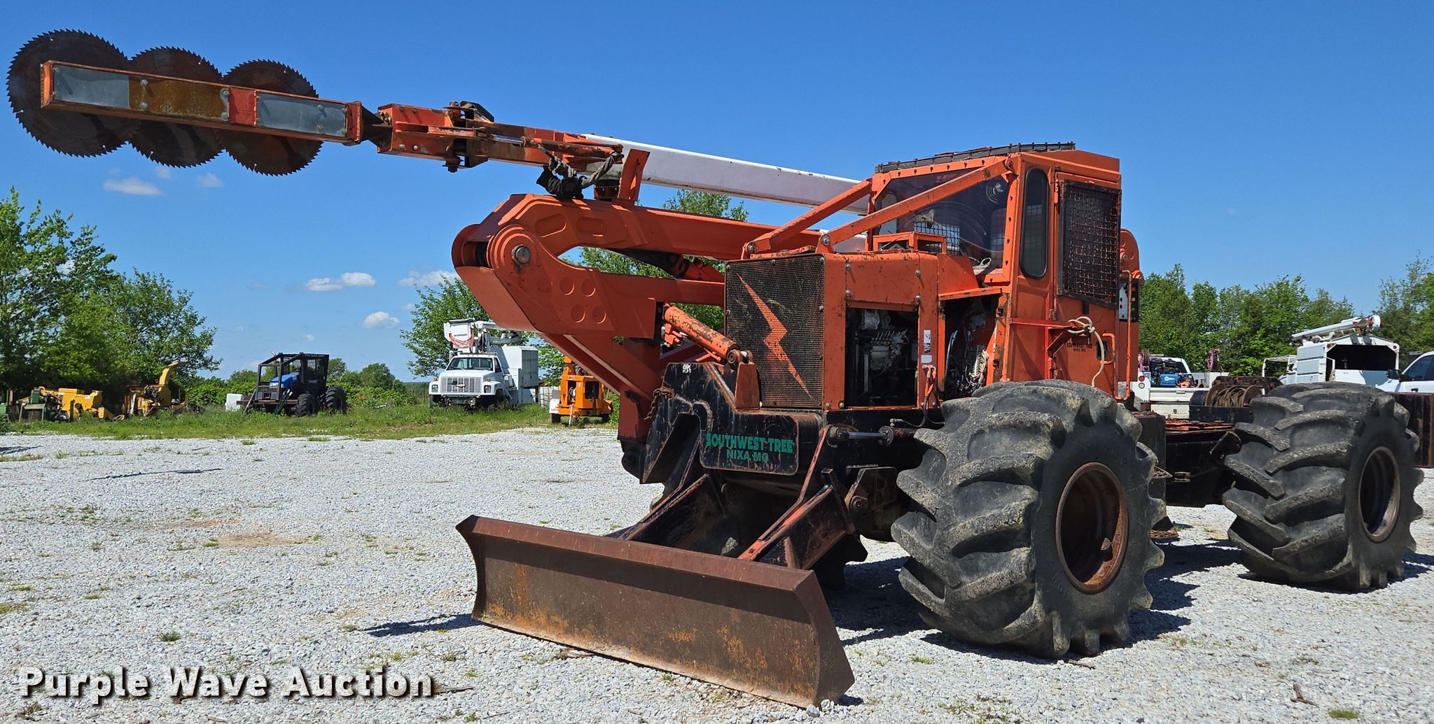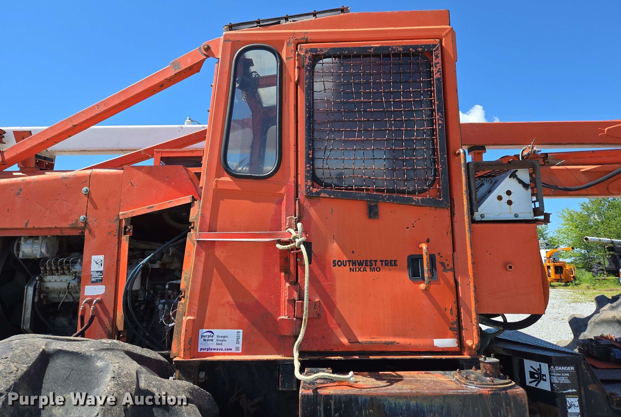 Timberland C45 tree trimmer. Hours: Unknown. Engine Cylinders: 6, Fuel type: Diesel. Transmission Powershift, 4F - 4R. Chassis Four wheel drive, Differential lock. Operators station Enclosed cab, AC, Heat. Features Trim saw Blade diameter: 24", Boom Maximum reach length: 75', Boom controls: Joystick, Blade Width: 112", Winch, Counterweights: 12. Tires Size: 67x34.00-26. Notes Non-operational hour meter, Hydraulic spool body to convert to a five blade system, Hood side panels included, Differentials are permanently locked , Non-operational AC. Southwest Tree LLC. Clever, MO 65631