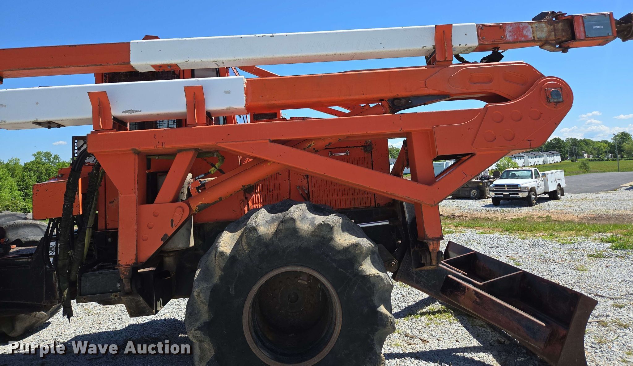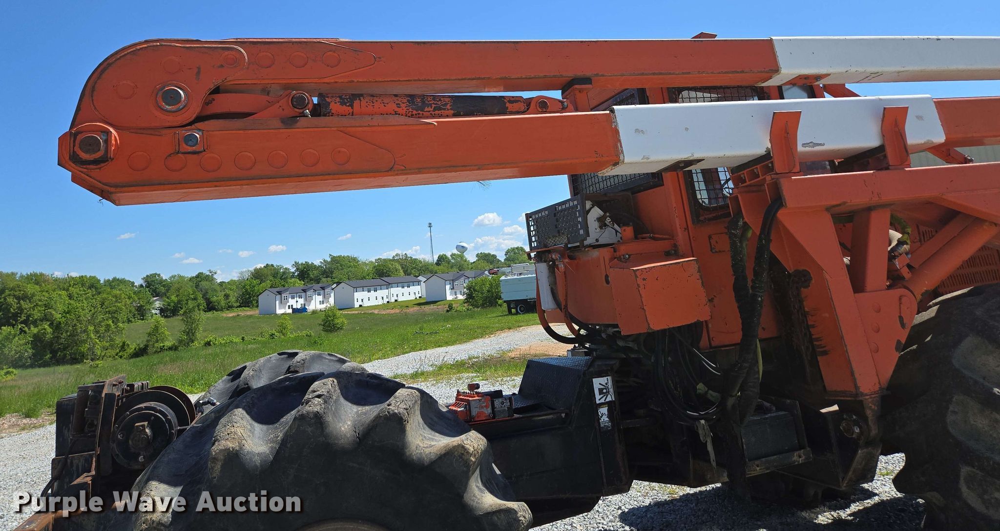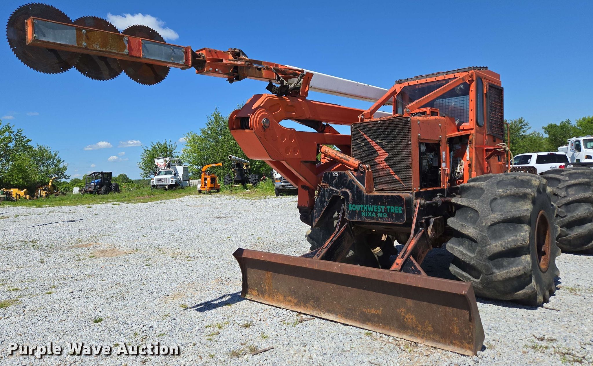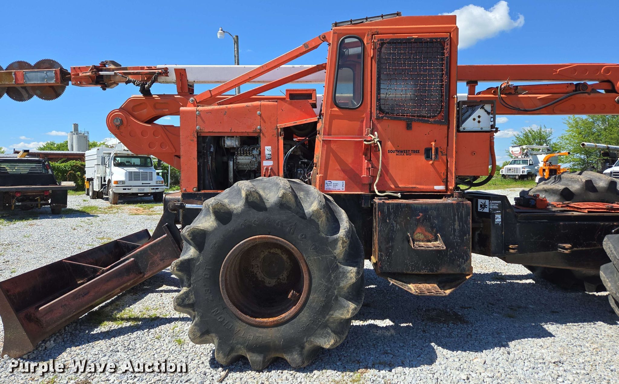 Timberland C45 tree trimmer. Hours: Unknown. Engine Cylinders: 6, Fuel type: Diesel. Transmission Powershift, 4F - 4R. Chassis Four wheel drive, Differential lock. Operators station Enclosed cab, AC, Heat. Features Trim saw Blade diameter: 24", Boom Maximum reach length: 75', Boom controls: Joystick, Blade Width: 112", Winch, Counterweights: 12. Tires Size: 67x34.00-26. Notes Non-operational hour meter, Hydraulic spool body to convert to a five blade system, Hood side panels included, Differentials are permanently locked , Non-operational AC. Southwest Tree LLC. Clever, MO 65631
