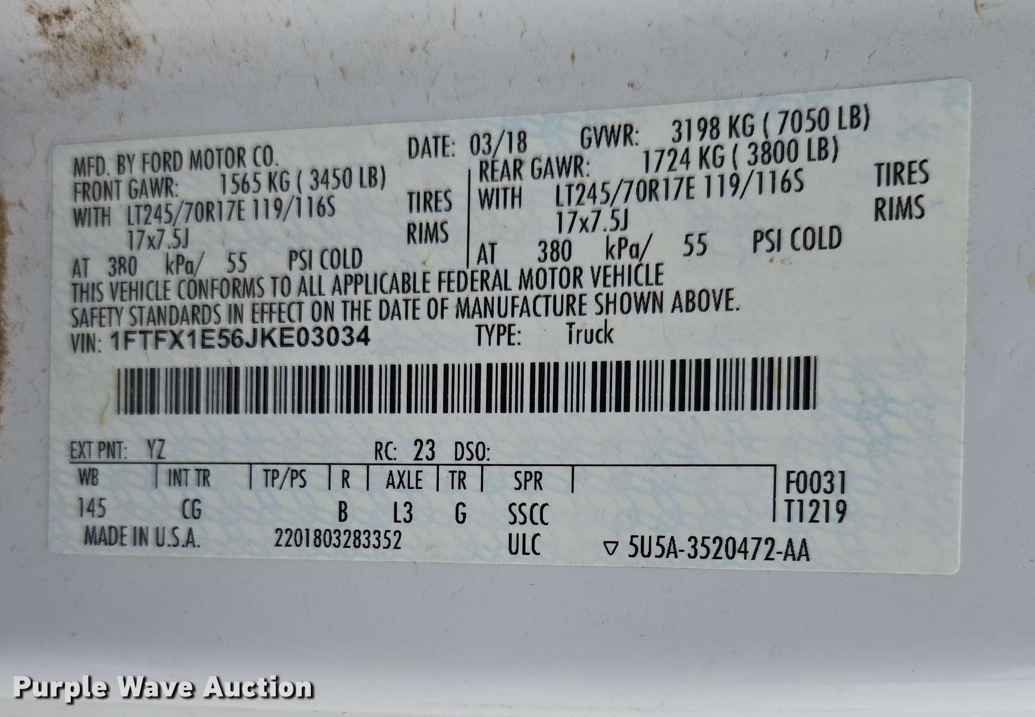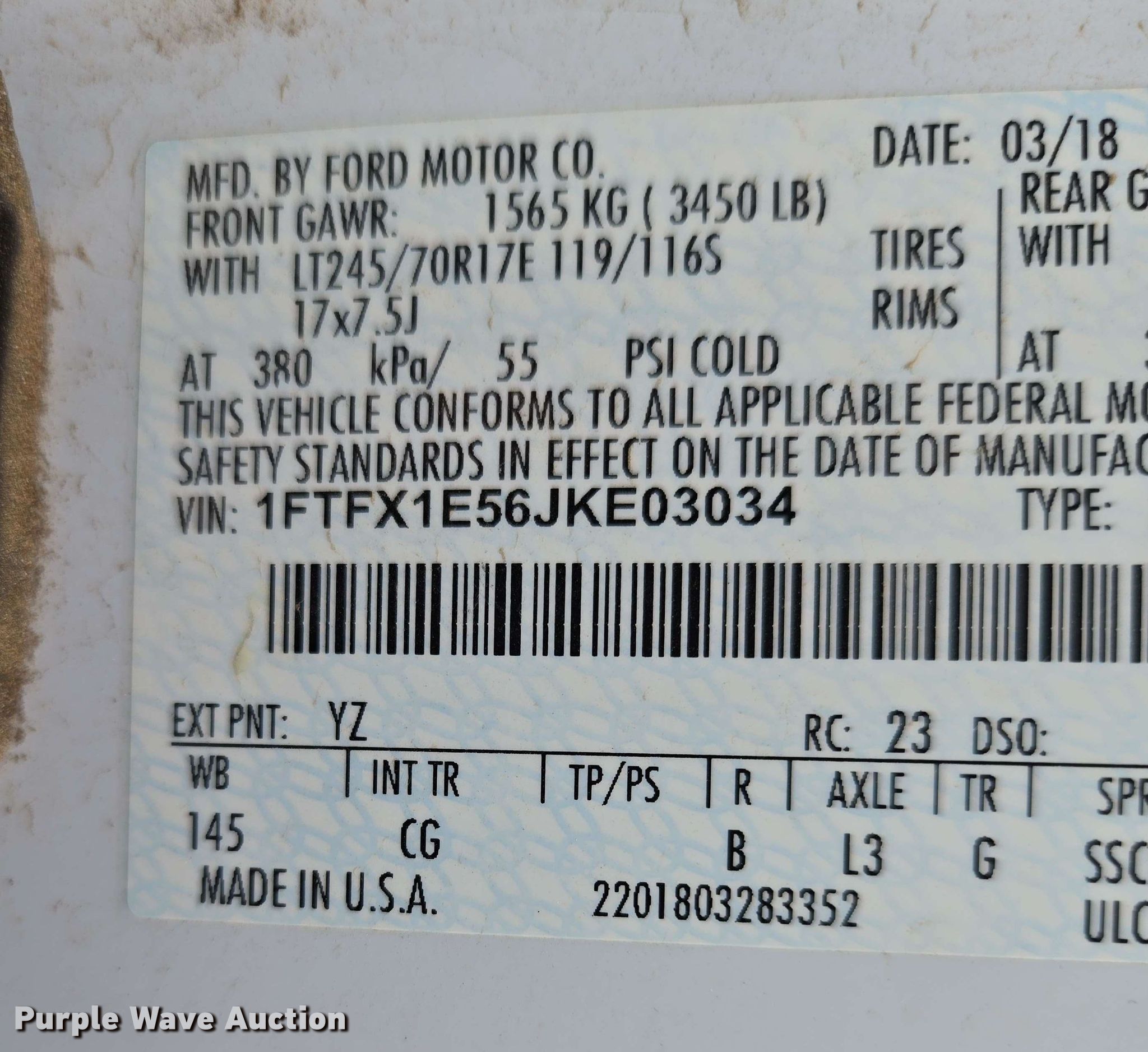 - VIN: 1FTFX1E56JKE03034