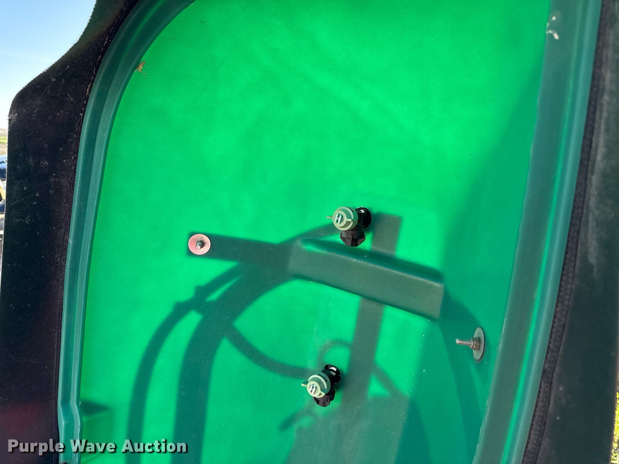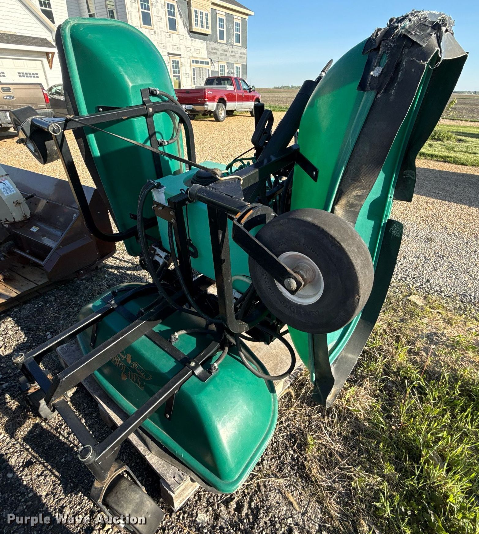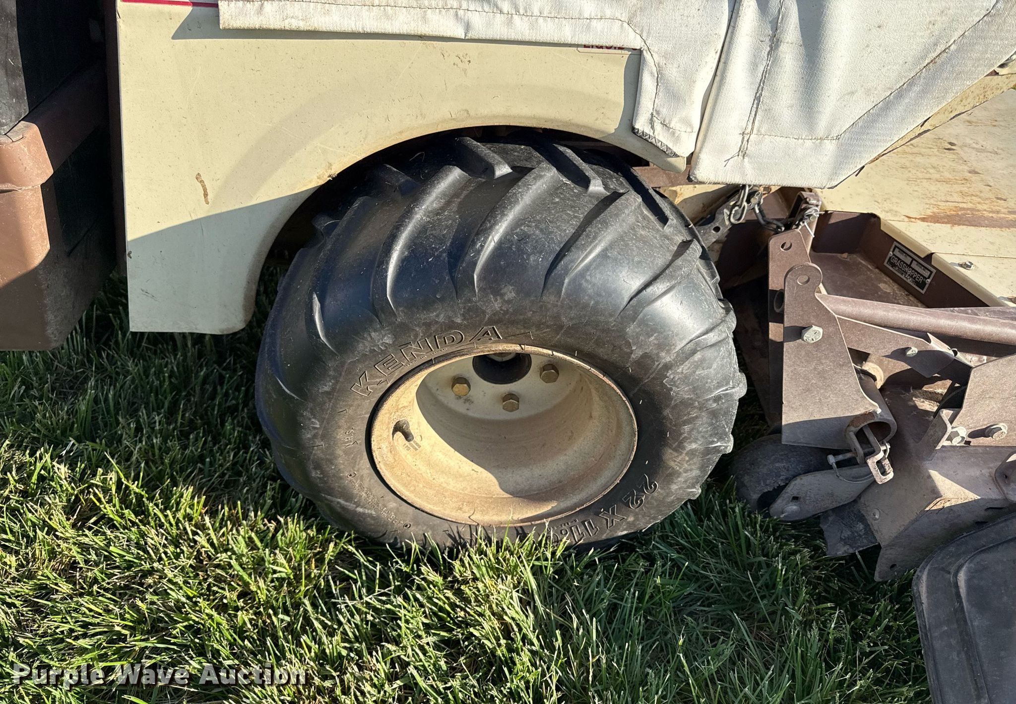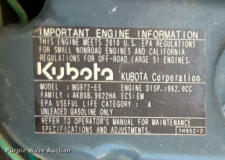 Grasshopper 932G2 ZTR lawn mower. Hours: 873 on meter, Cutting width: 61", Serial: 6066959. Engine Kubota WG972-ES, Displacement:.962L, Cylinders: 3, Fuel type: Gas. Transmission Hydrostatic. Operators station Enclosed cab, Heat. Features Snow blower Width: 51", Grass hopper 501, Sprayer Width: 160", Nozzles: 9 Spacing: Approx. 15", Nozzle bodies: Single, Hydraulic front deck lift, Flip up front deck. Tires Front: 22x11.00-10, Rear: 13x6.50-6. Winchester, KS 66097