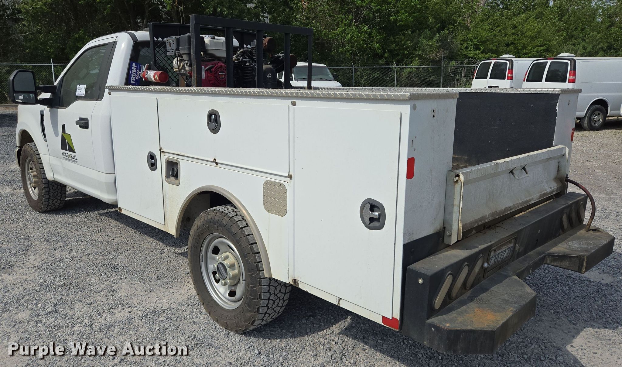 2021 Ford F350 Super Duty utility bed pickup truck. Miles: 108,789 on odometer, VIN: 1FDBF3E69MED46901. Engine Displacement: 6.2L V8 OHV, Cylinders: 8, Fuel type: Gas. Transmission Automatic. Chassis Axles: Single, Suspension: Spring, GVWR: 10,000 lbs, Wheelbase: 147". Interior AC, Heat, Cruise control, Auxiliary controls, Brake controller. Features Bed Dakota Bodies CBG 11078VVSSG2, 9' 2" L x 78" W, Air compressor Puma TUK-13030HGE, Honda GX390.. Tires Size: LT275/65R18. Notes Dash warning indicator: TPMS, Windshield chipped or cracked. Louisiana title. Title distribution may be delayed up to 30 days from verification of funds. Hugg & Hall. Broussard, LA 70518