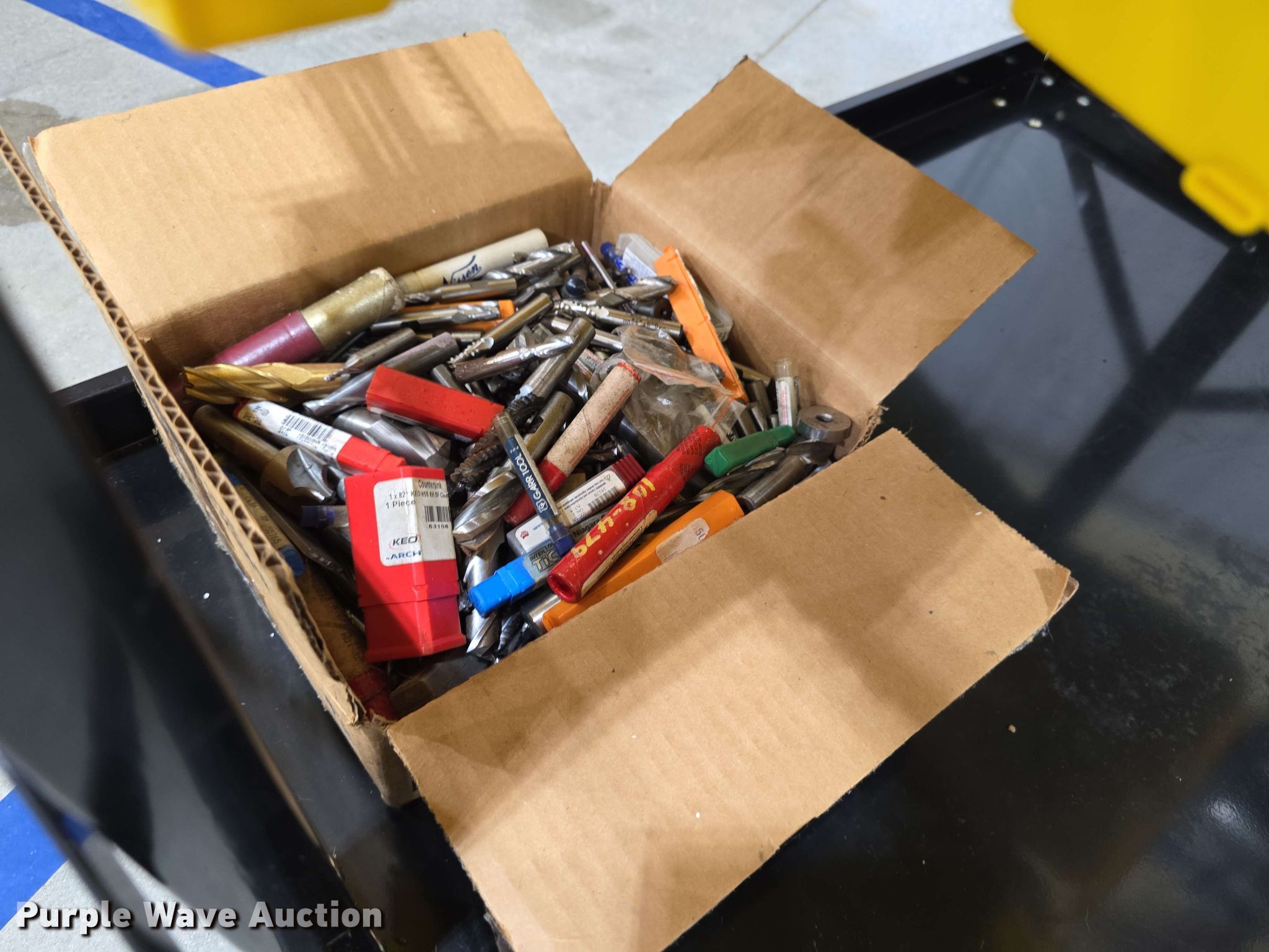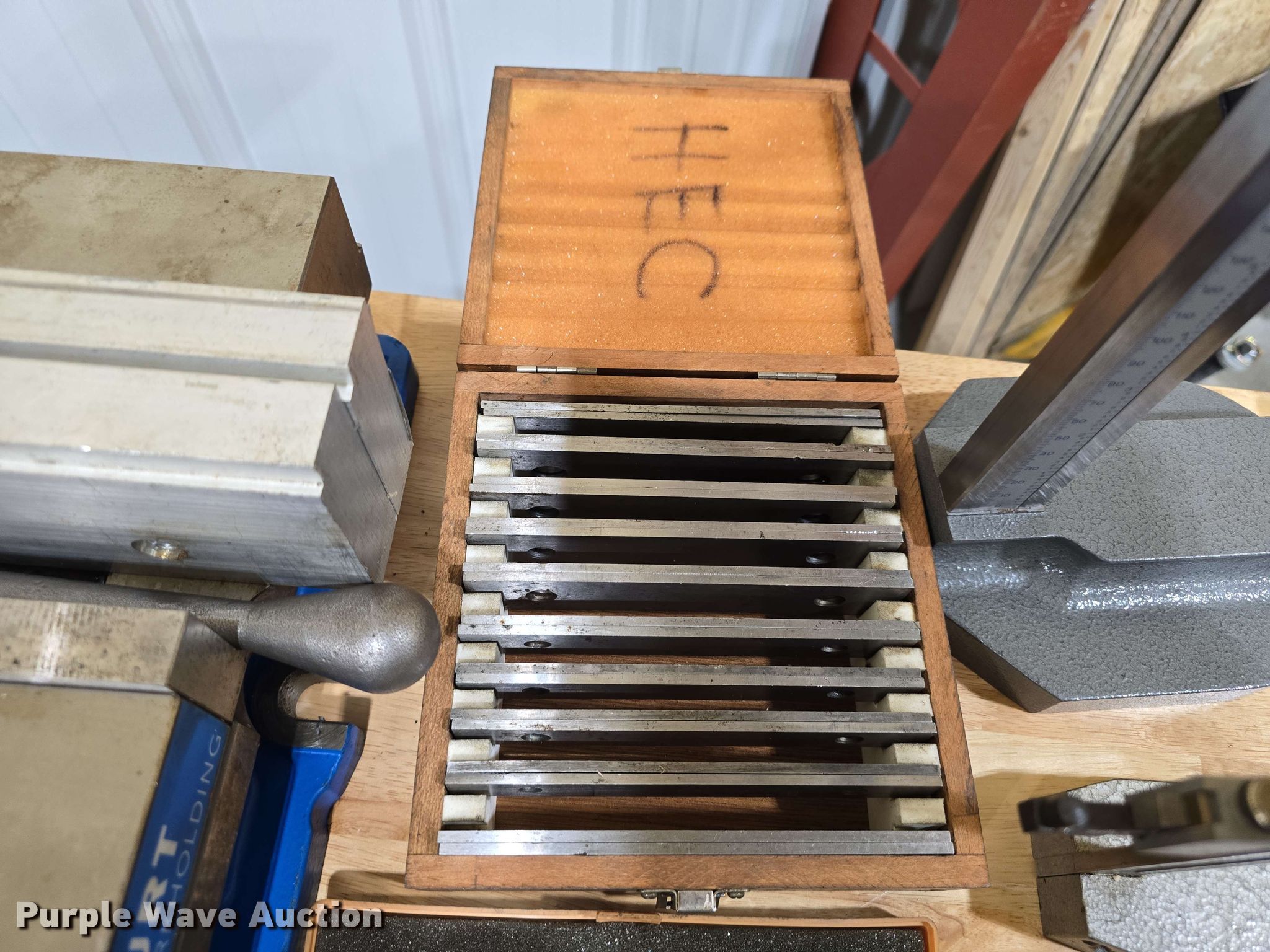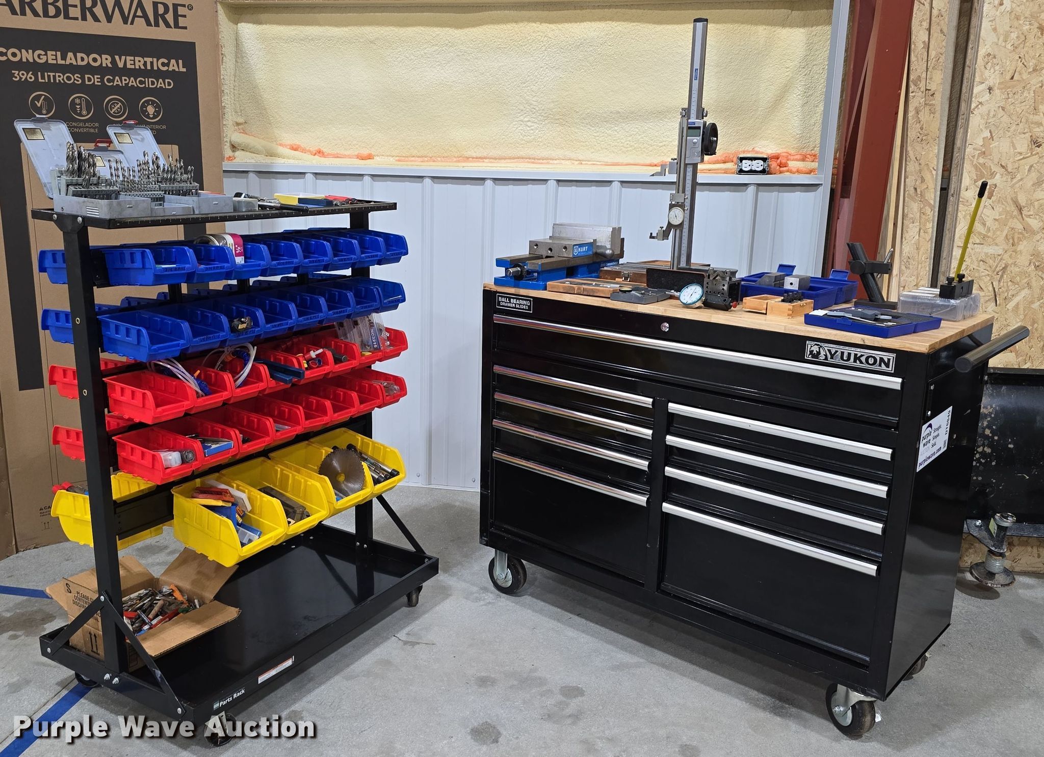Boring tools. (5) guage sets, Depth guage, Precision vise, (2) height guages, Micrometer, Kurt vise Width: 6", Yukon toolbox 49" x 18.5" x 37", Rolling parts rack 36" L x 21" W x 46" H, Drill bits, Tap bits and more. Falls City, NE 68355