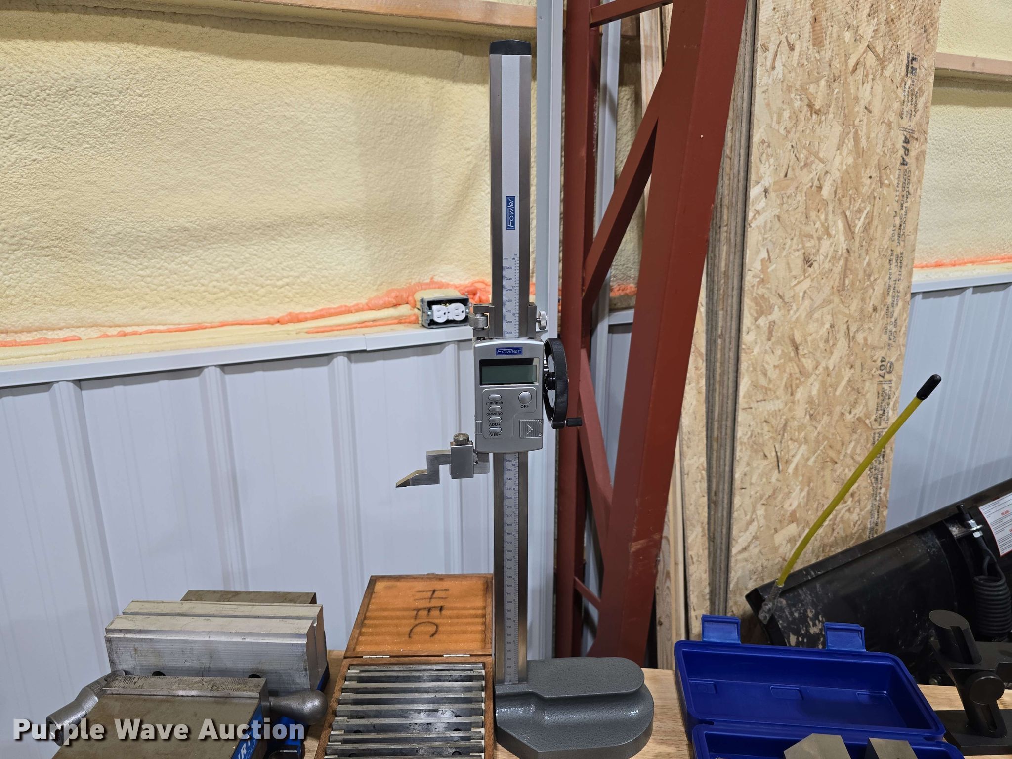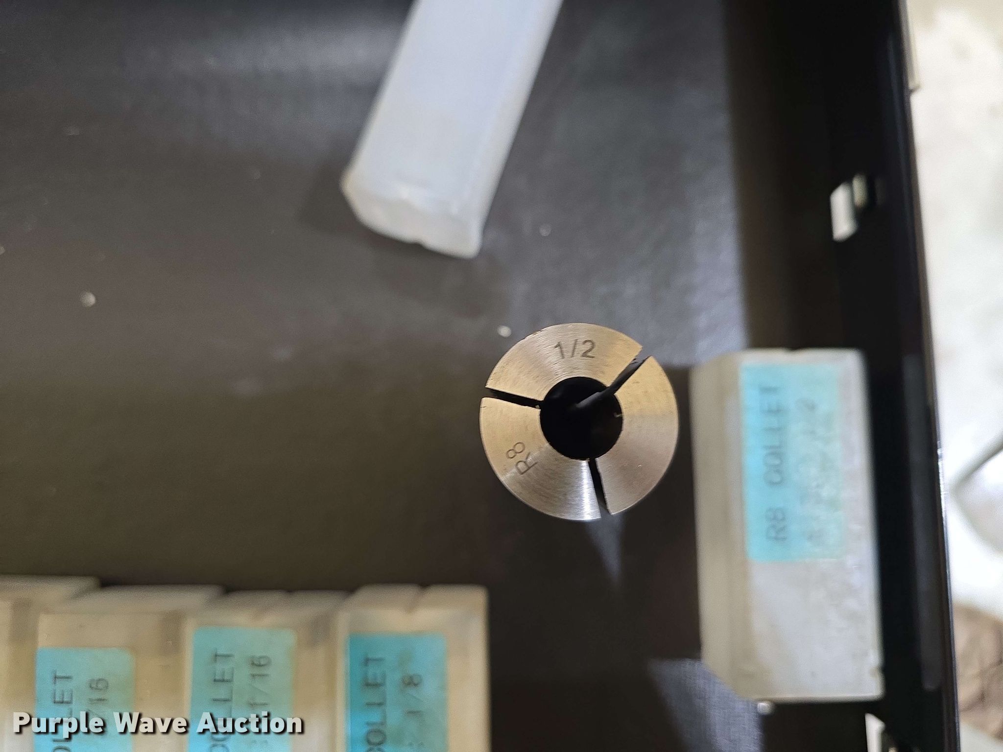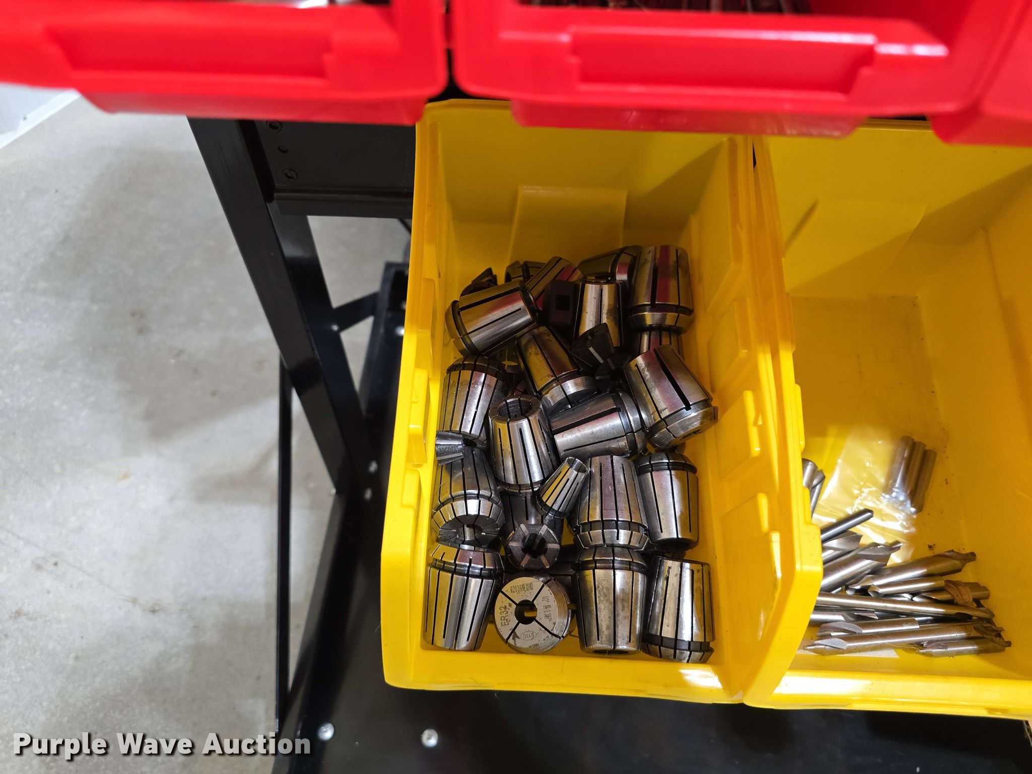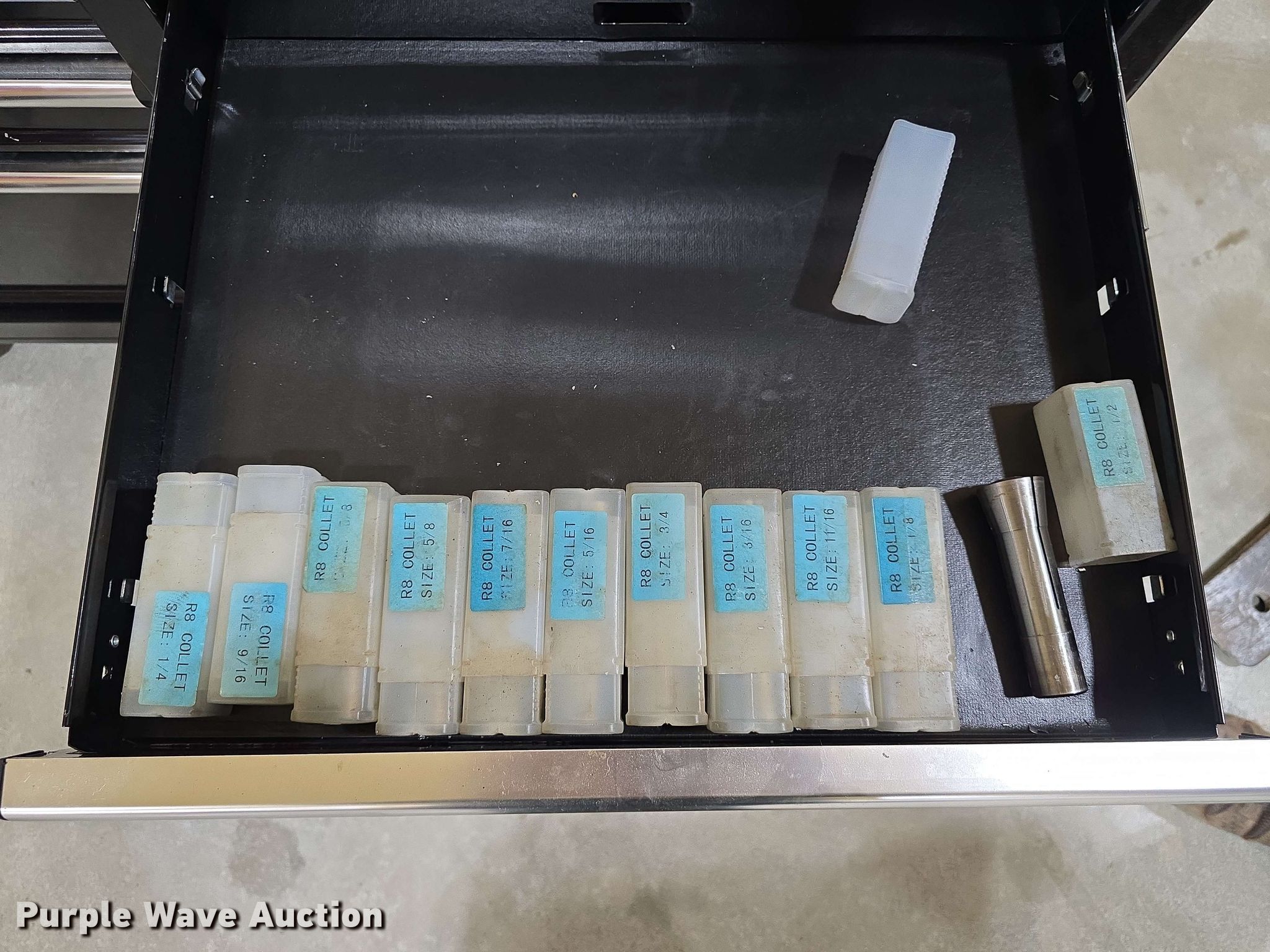 Boring tools. (5) guage sets, Depth guage, Precision vise, (2) height guages, Micrometer, Kurt vise Width: 6", Yukon toolbox 49" x 18.5" x 37", Rolling parts rack 36" L x 21" W x 46" H, Drill bits, Tap bits and more. Falls City, NE 68355