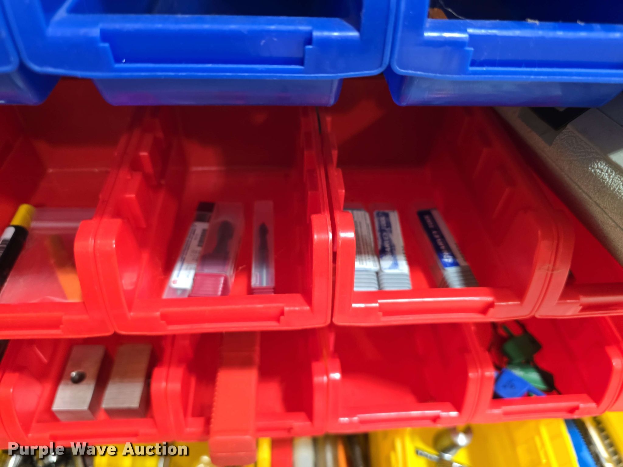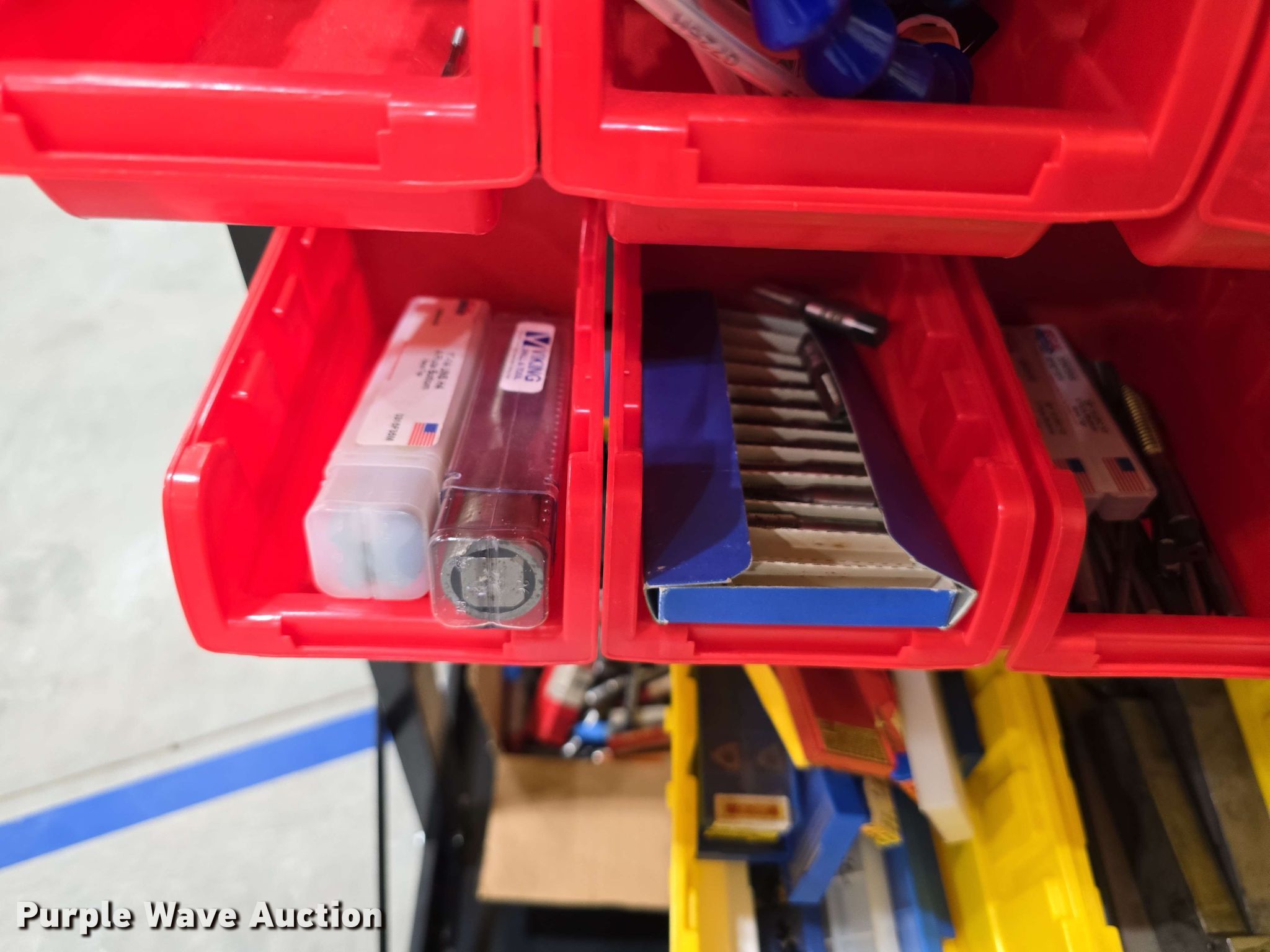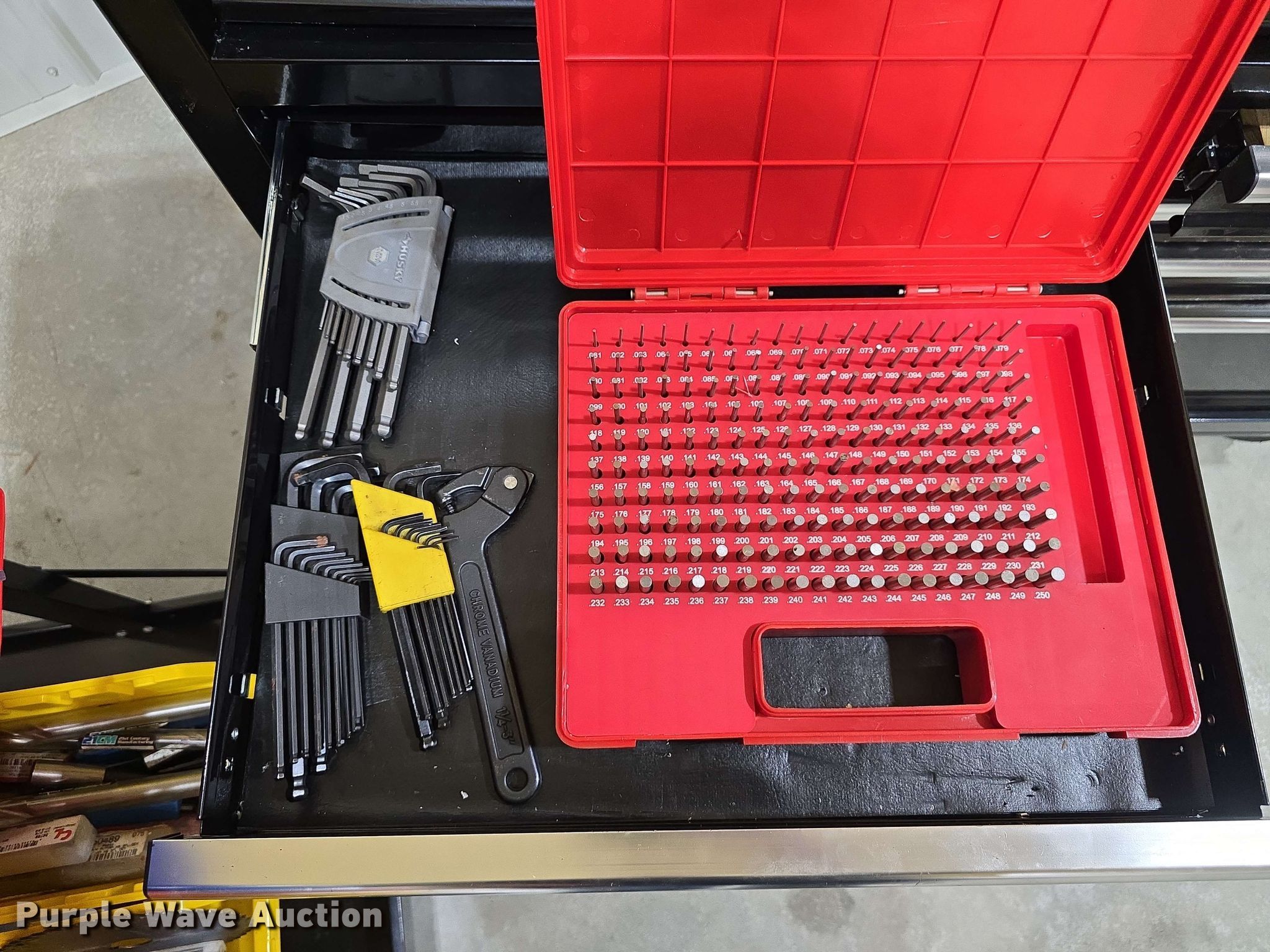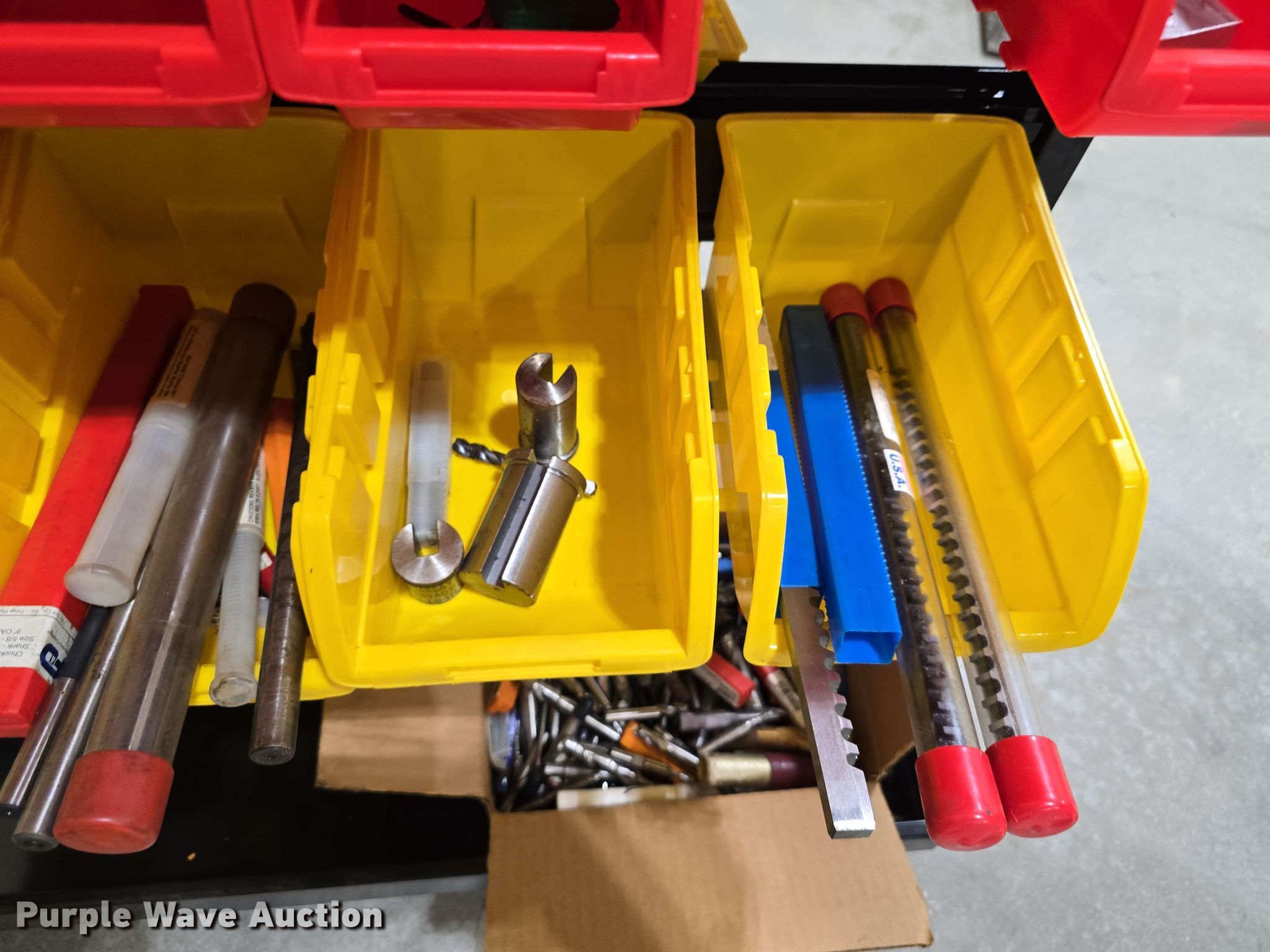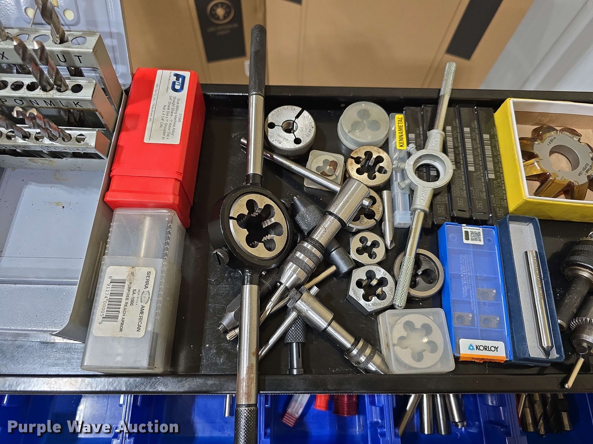 Purple Wave is selling a used Tools in Nebraska. This item is a Boring tools with the following: (5) guage sets, Depth guage, Precision vise, (2) height guages, Micrometer, Kurt vise, Width: 6", Yukon toolbox, 49" x 18.5" x 37", Rolling parts rack, 36" L x 21" W x 46" H, Drill bits, Tap bits and more