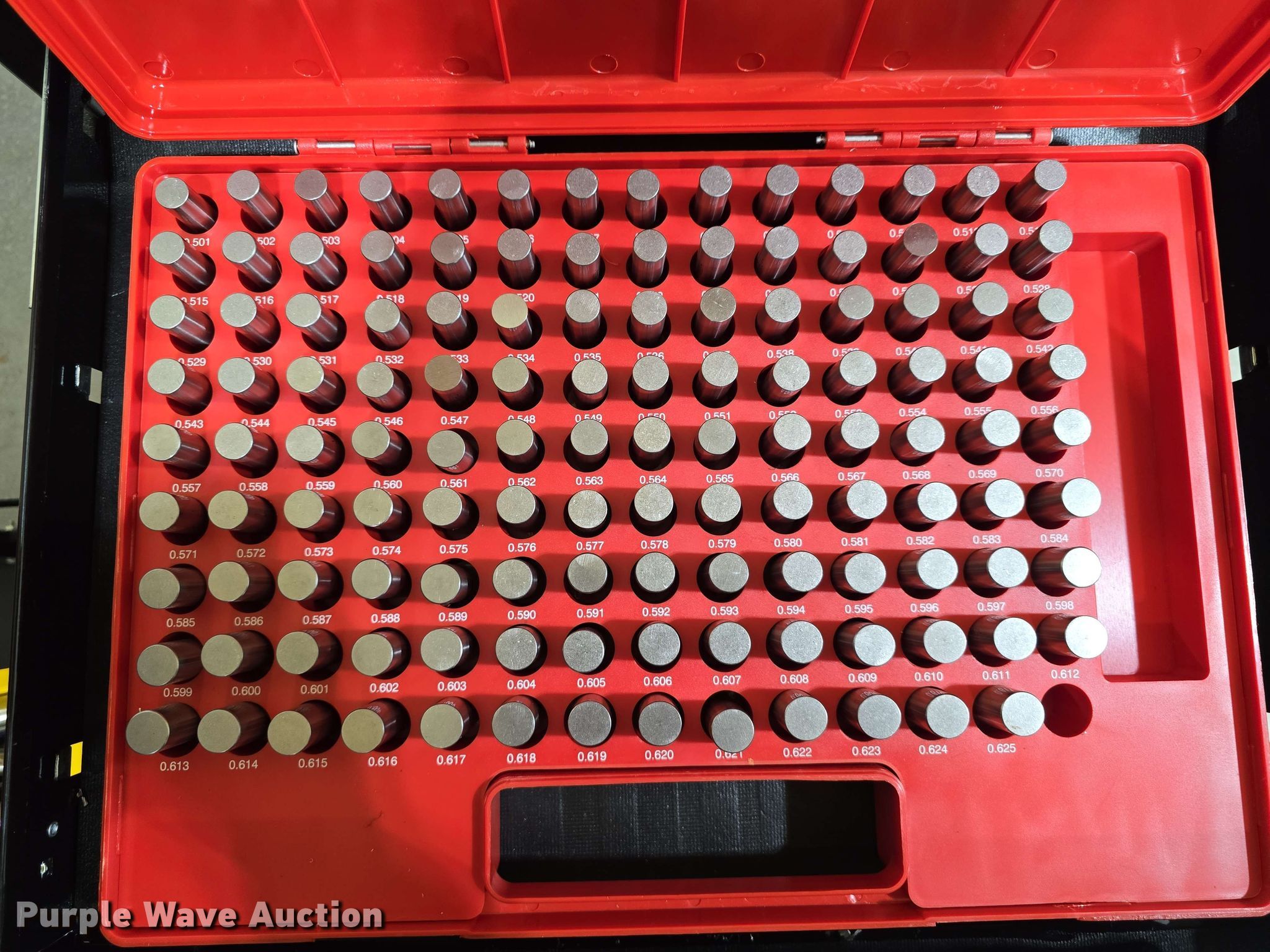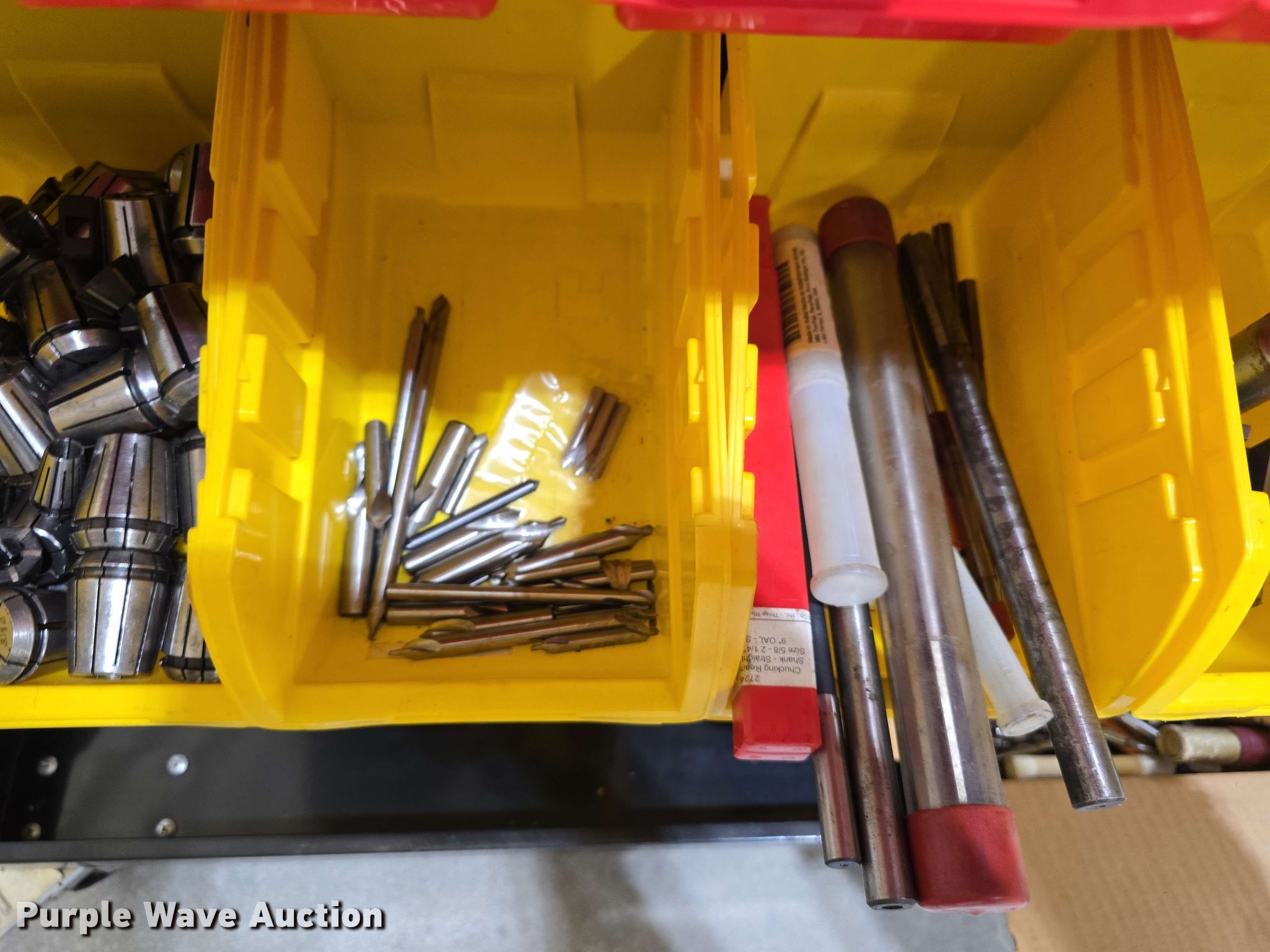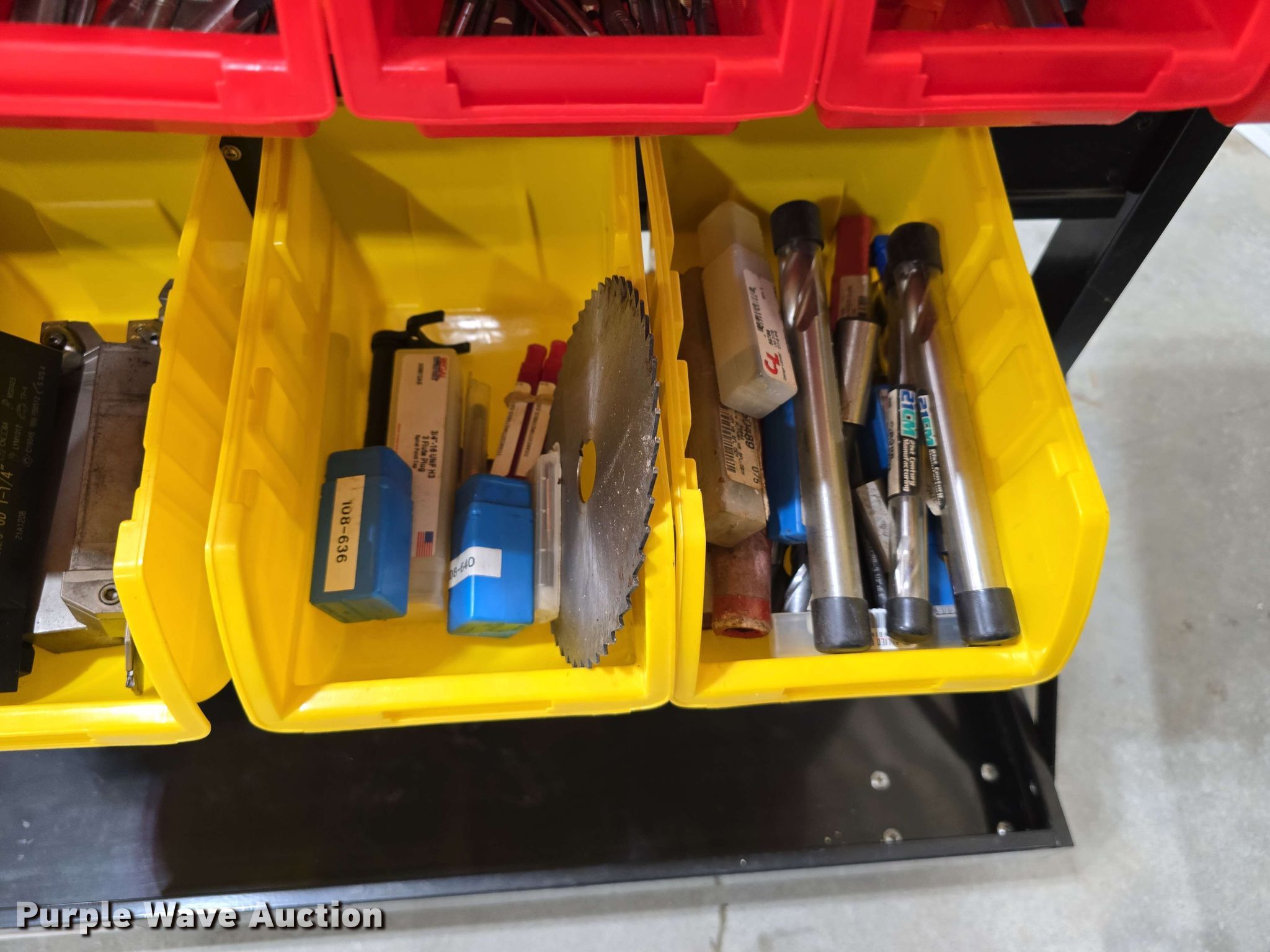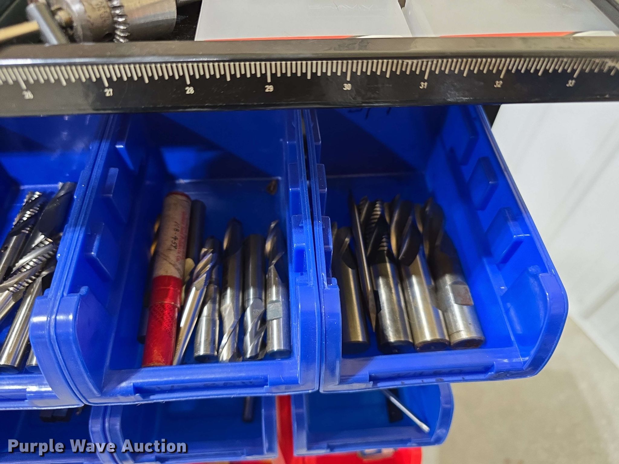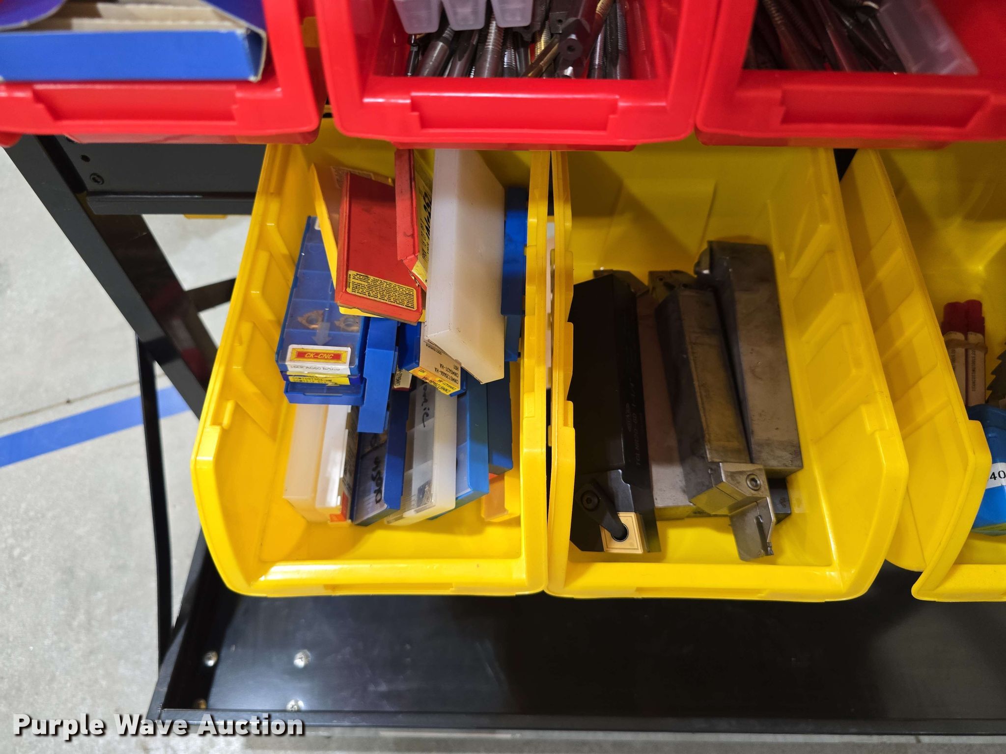Purple Wave is selling a used Tools in Nebraska. This item is a Boring tools with the following: (5) guage sets, Depth guage, Precision vise, (2) height guages, Micrometer, Kurt vise, Width: 6", Yukon toolbox, 49" x 18.5" x 37", Rolling parts rack, 36" L x 21" W x 46" H, Drill bits, Tap bits and more