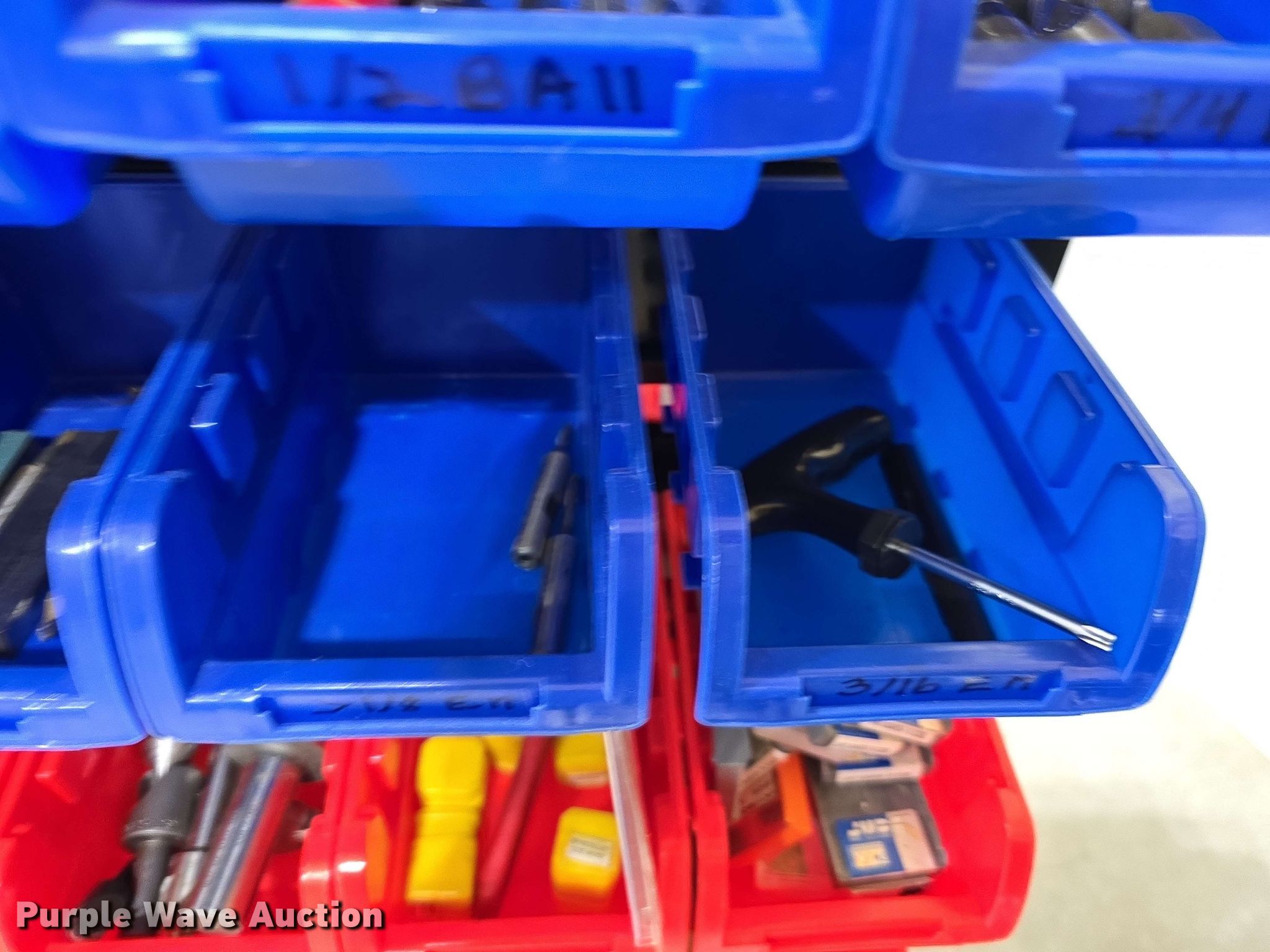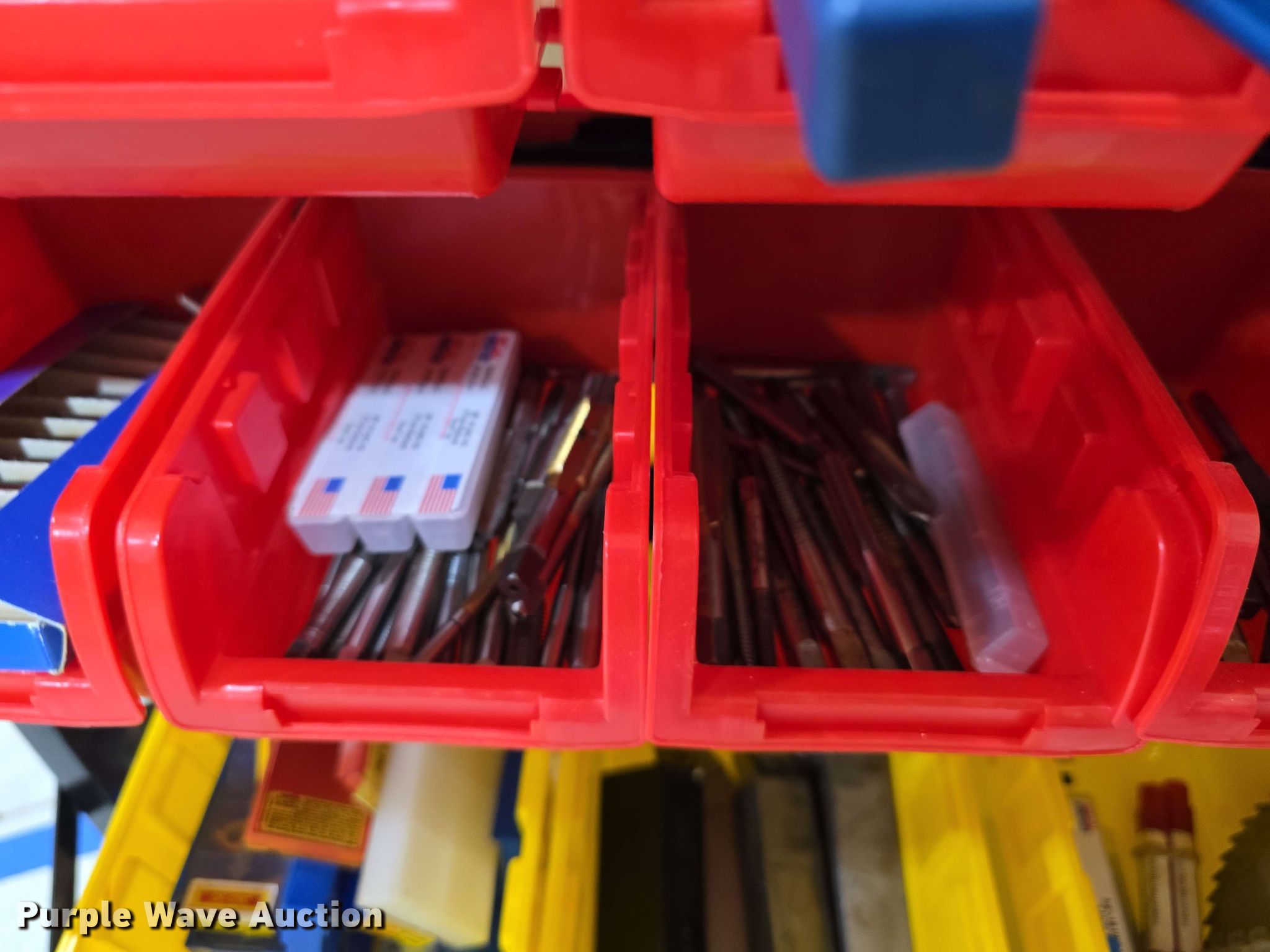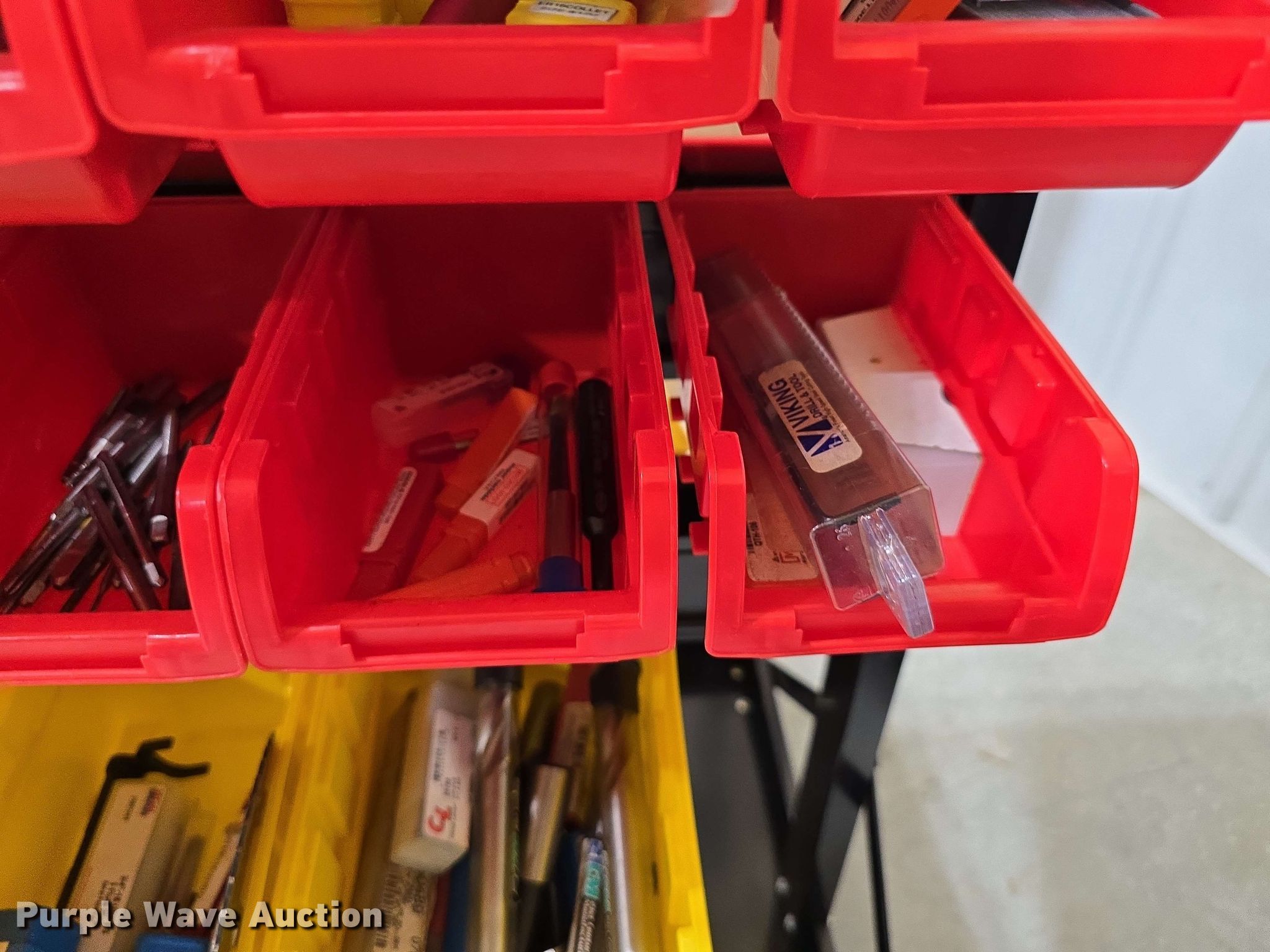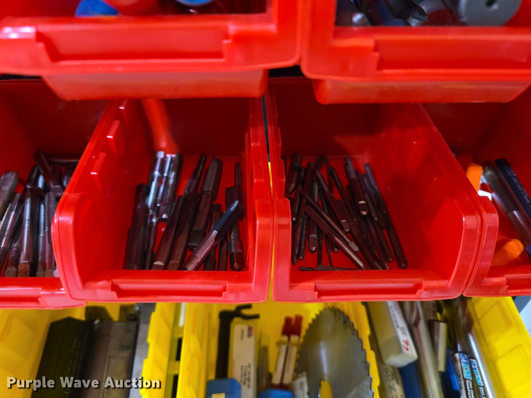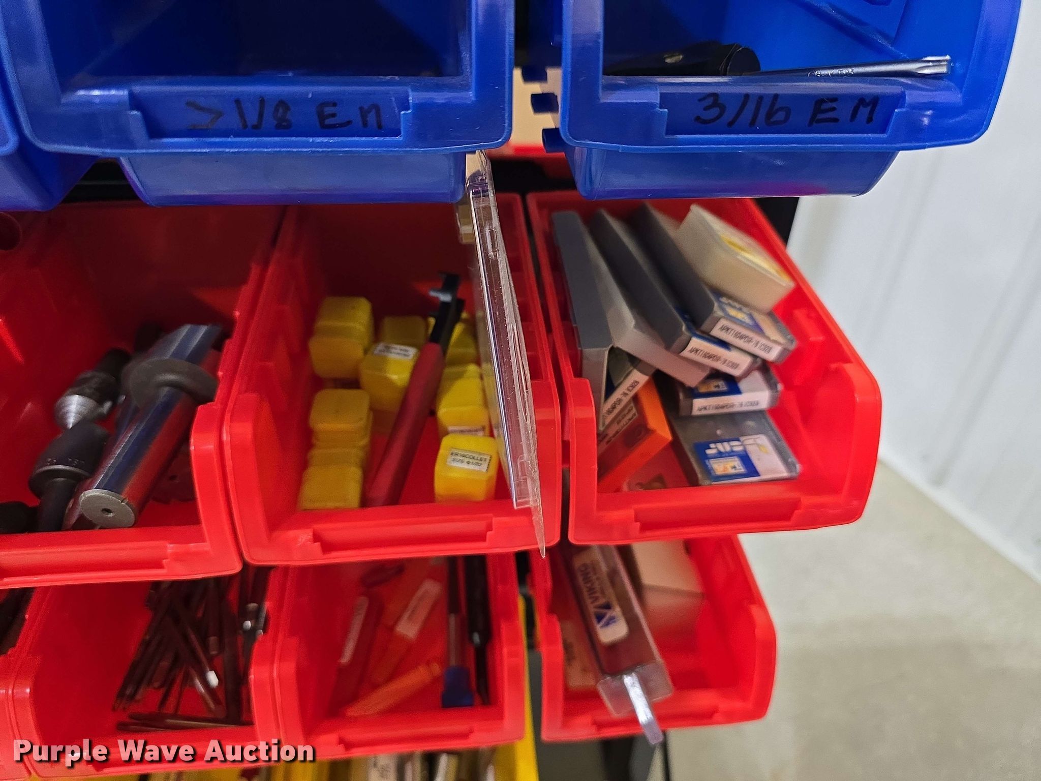 Purple Wave is selling a used Tools in Nebraska. This item is a Boring tools with the following: (5) guage sets, Depth guage, Precision vise, (2) height guages, Micrometer, Kurt vise, Width: 6", Yukon toolbox, 49" x 18.5" x 37", Rolling parts rack, 36" L x 21" W x 46" H, Drill bits, Tap bits and more