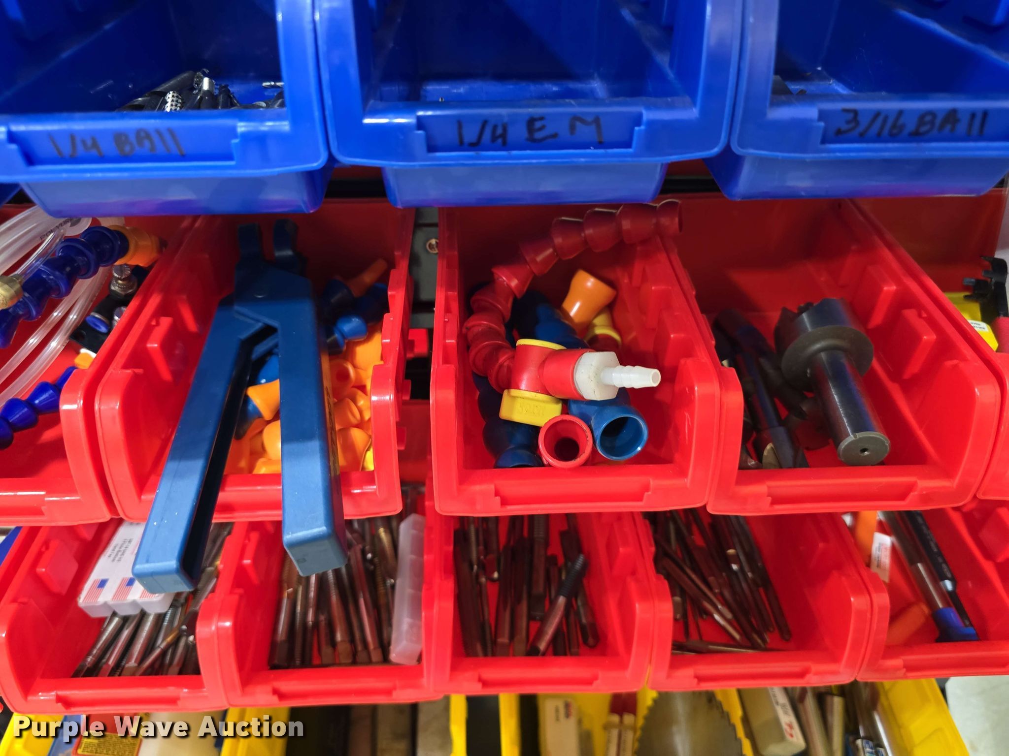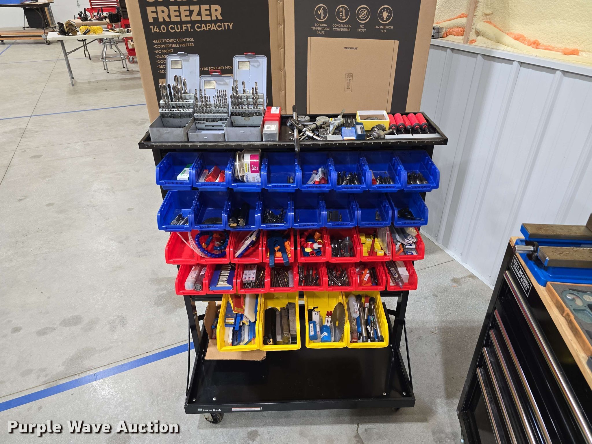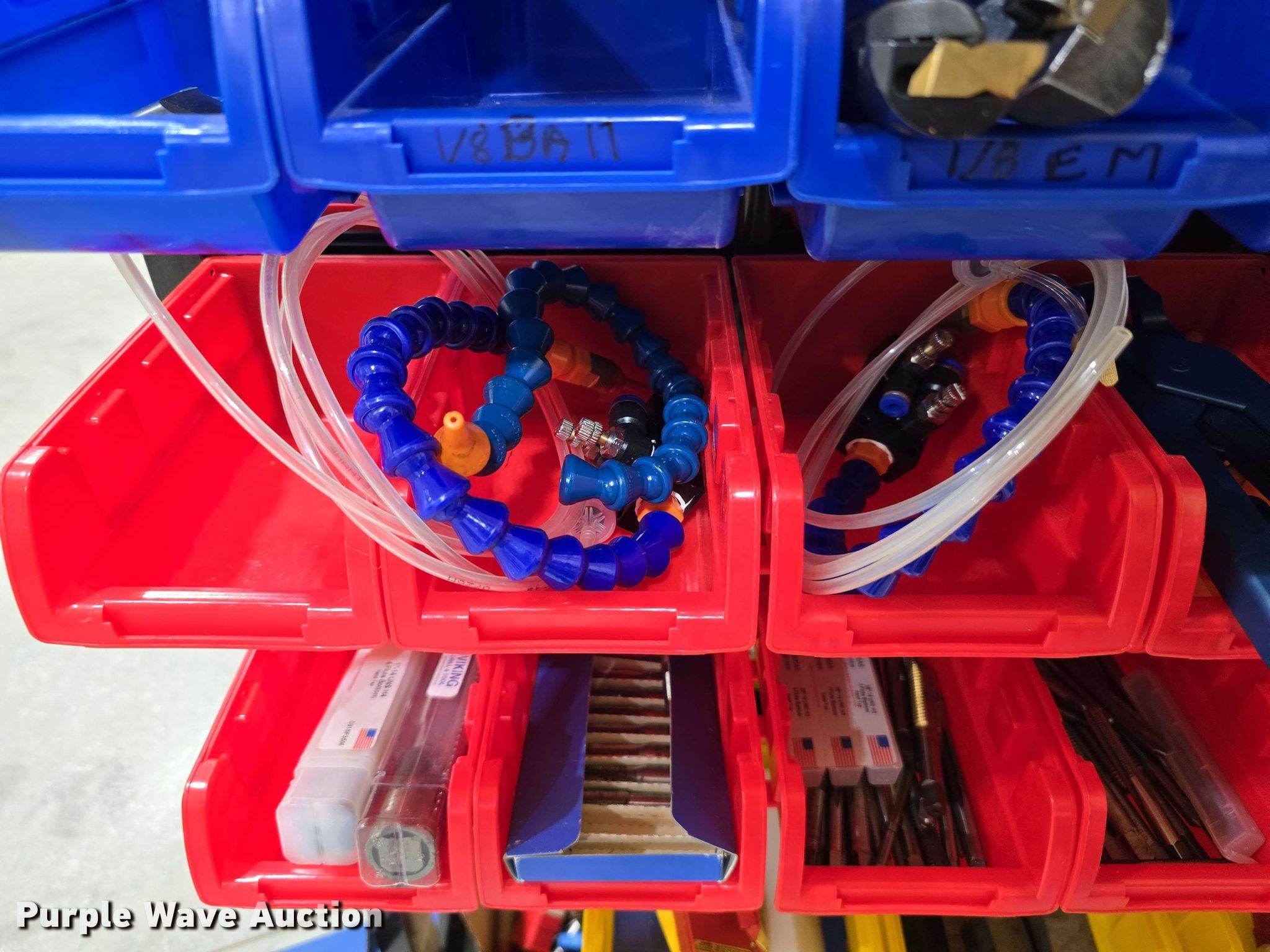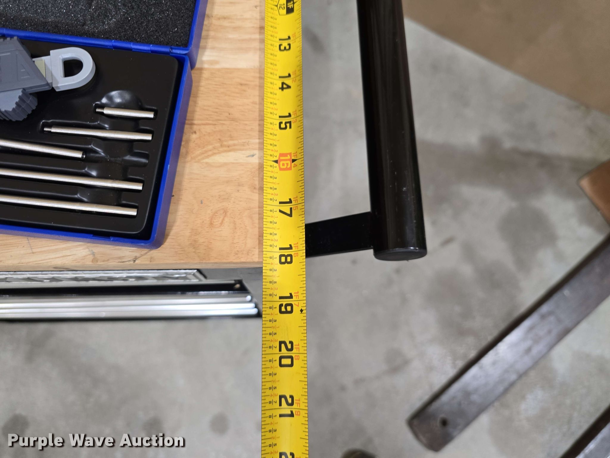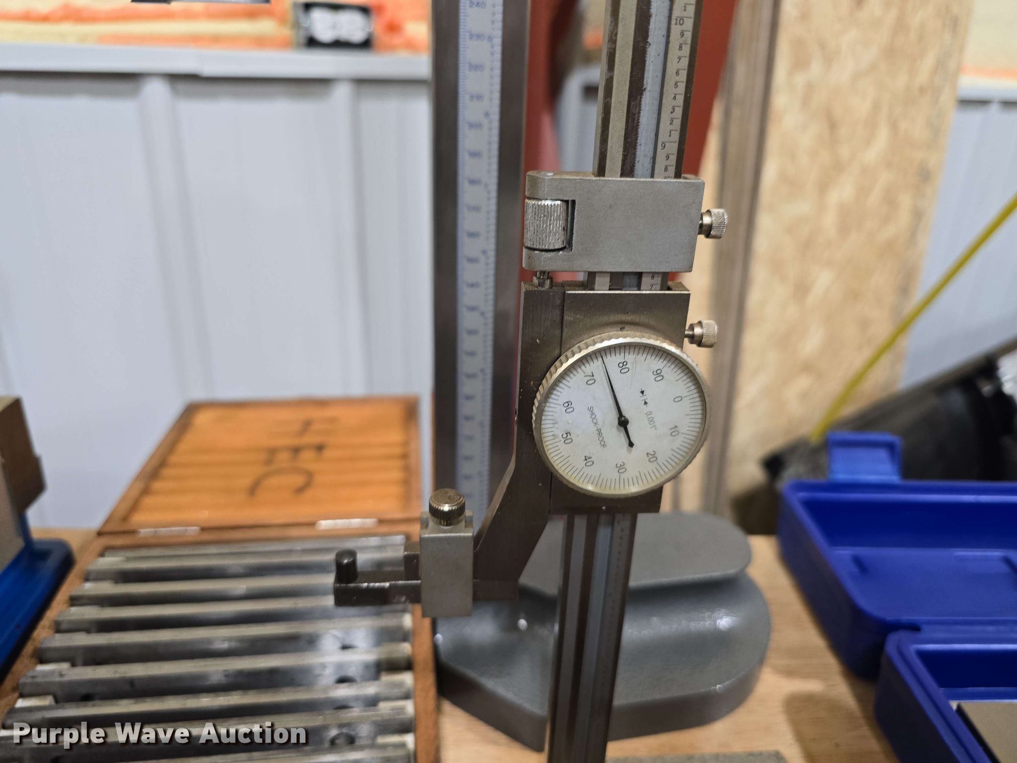 Purple Wave is selling a used Tools in Nebraska. This item is a Boring tools with the following: (5) guage sets, Depth guage, Precision vise, (2) height guages, Micrometer, Kurt vise, Width: 6", Yukon toolbox, 49" x 18.5" x 37", Rolling parts rack, 36" L x 21" W x 46" H, Drill bits, Tap bits and more